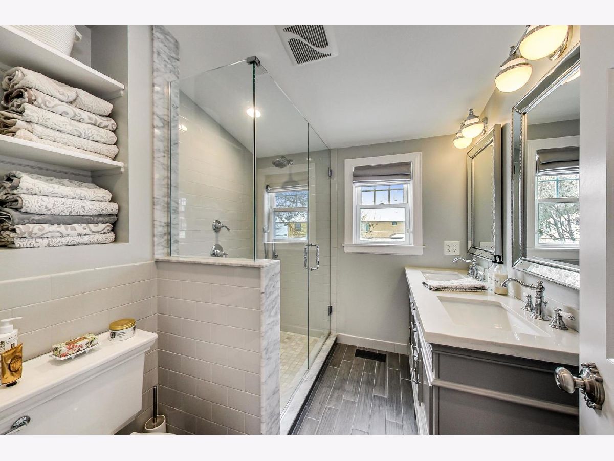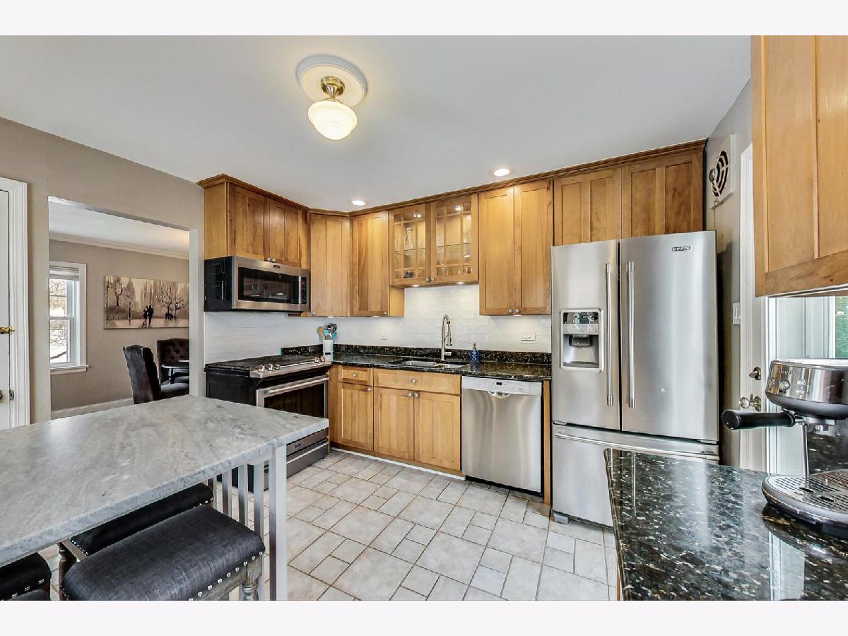 So many cottage feels in this open floorplan Chicago brick Cape Cod with 2.5 car garage renovated and styled to fit right in. Center entry to living room and dining room, coat & linen closets, hardwoods, updated eat in stainless steel kitchen appliances 5yrs old with custom stone table/peninsula, and 1st floor bedroom with uncommon double door closet. Custom stair to 2nd floor thats been shed dormered to expand floor space, new lux bath, generous primary bedroom with unheard of walk in closet. Sweet finished basement with family room area, office nook, laundry, and raw storage. Gigantic rear deck that is cozy yet spacious. This is THE gathering place for the owners neighborhood friends. The brick patio in the back is extremely useful for young kids playing (e.g. sandbox, water toys) and riding toys while easily transformed to an additional hang out space as they grow. The grounds: 1st the front yard-In April a yellow butterfly magnolia will bloom and offer a beautiful focal point from the dining room. In early May you will see hot pink flowers engulf the bush in our front yard, something the owners get a LOT of compliments about. There are quince bushes on the southside of the house which boast, bright red flowers through July. Addionally, the pink roses in front will showcase around 70-80 roses in July. And lastly adding to the curb appeal are the flower boxes. Not to be outdone the backyard-three large arborvitaes frame the deck, providing privacy all year round. There are two trees in the backyard: an ash tree has been professionally and successfully treated, providing years of shade to the deck and purple foliage in the fall observable from the upstairs bedroom window. Under the ash tree there's several shade-loving ground cover and extra large hostas; the mix of green and 'blue' is well-planned. There are strategically placed bushes along the fence line to balance color and bloom time; you will see a mix of white and purple leaves in the Spring/Fall and pink/hot pink flowers in the Spring. Finally, purple irises will consume the back corner of the yard. More roses will also appear. The fully fenced rear yard also acts to keep munching bunnies out to preserve the beauty of the rear yard. All walking distance to Jackson Elementary, Eldridge Park, Salt Creek Greenway Trail, and about a mile to the Spring Rd Business District and IL Prairie Path! Lets not forget great staging ground for Elmhurst's annual St. Pats Parade! HVAC 8yrs, water heater 2yrs, dormer roof 6yrs.