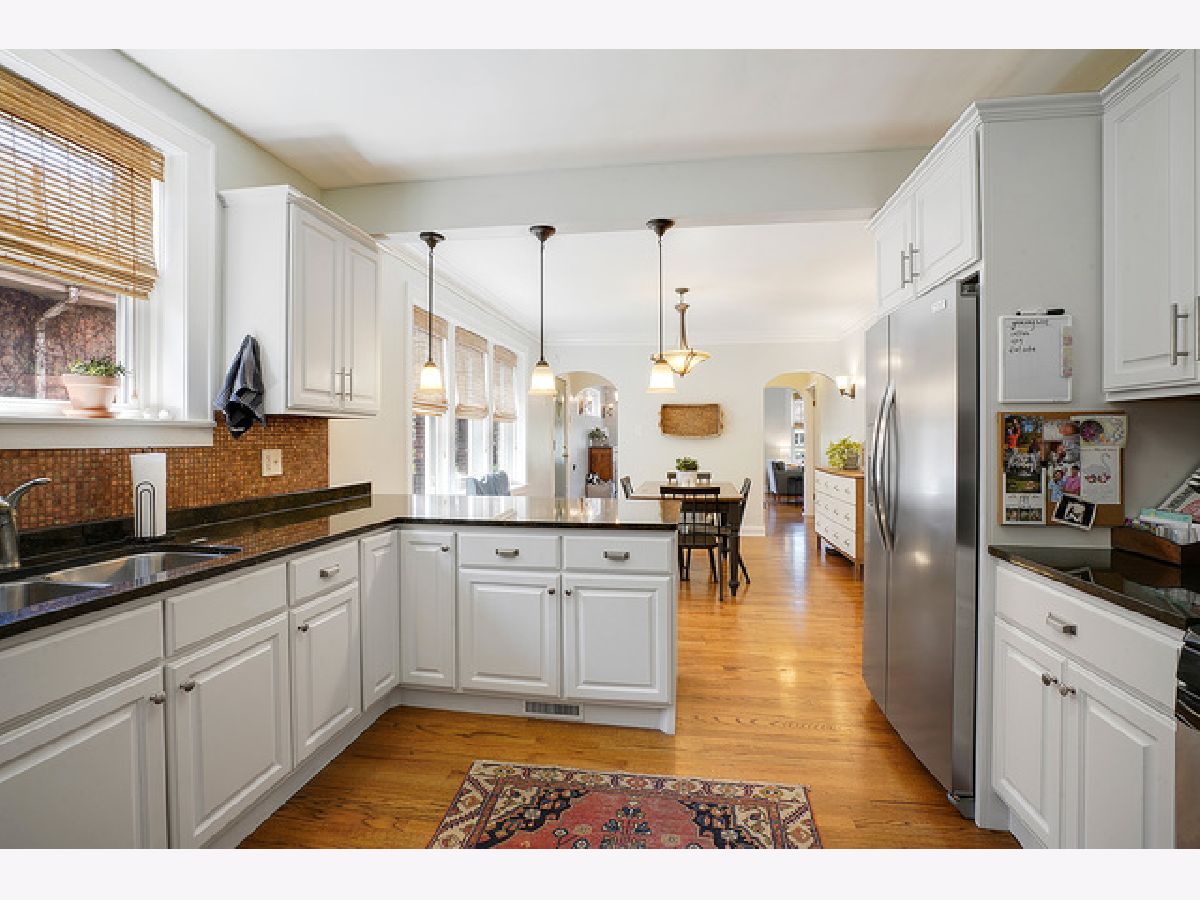 Two story Beverly GEM awaits it's new owners! Filled with elegant finishes, you'll fall in love with this sun-filled bungalow, arched doorways, fresh neutral paint, gorgeous light fixtures, updated kitchen that boasts granite counters, stainless steel appliances, a breakfast bar highlighted by pendant lighting and gleaming hardwood floors that flow throughout the home. The main level offers 2 generously sized bedrooms and a full bathroom. Upstairs has 4 bedrooms, a full bathroom and TONS of storage space. Bring your creative designs to the huge basement that awaits your finishing touches. Great fenced back yard with detached garage! Some recent updates include: concrete front porch, tuckpointed chimney, garage gutters, new washer/dryer, new upstairs furnace and A/C, new stainless kitchen refrigerator, window treatments.