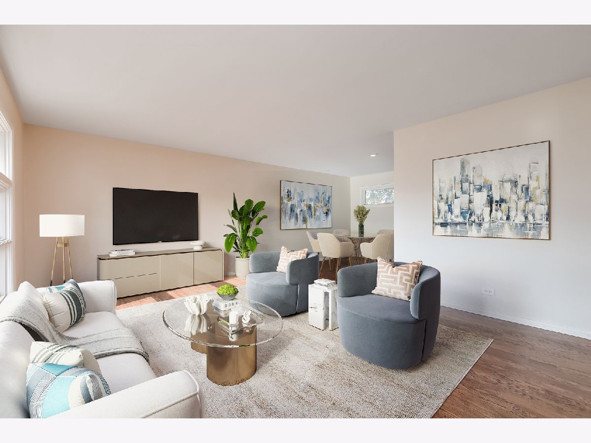 Discover your dream home in this stunning split-level residence located in the highly sought-after Morton Grove area! Offering over 2,100 square feet of thoughtfully designed living space, this property features 5 spacious bedrooms and 3.5 bathrooms, perfect for growing families. As you step inside, you'll be greeted by a sunlit living room filled with natural light, highlighting the newly installed hardwood floors that flow seamlessly into the dining area. The beautifully remodeled kitchen is a chef's delight, boasting sleek white cabinetry, upgraded stainless steel appliances, and ample space for a kitchen table, making it the ideal spot for casual dining. A convenient powder room off the foyer ensures comfort for your guests. Upstairs, you'll find 4 generously sized bedrooms, including a master suite with a private bath, all featuring fresh new carpeting for a cozy touch. The lower level invites you into a warm family room, perfect for gatherings and an additional bedroom and full bath provides flexibility and convenience for guests or family members. Finished crawl space for all of your storage needs. Additional highlights include an attached one-car garage and recent renovations such as new siding, updated flooring, and a refreshed kitchen. With all the trees removed, you'll enjoy a clear view of your property, enhancing the sense of space and openness. This is the perfect home for those seeking comfort, style, and an ideal location-don't miss the chance to make it yours! Schedule your showing today!