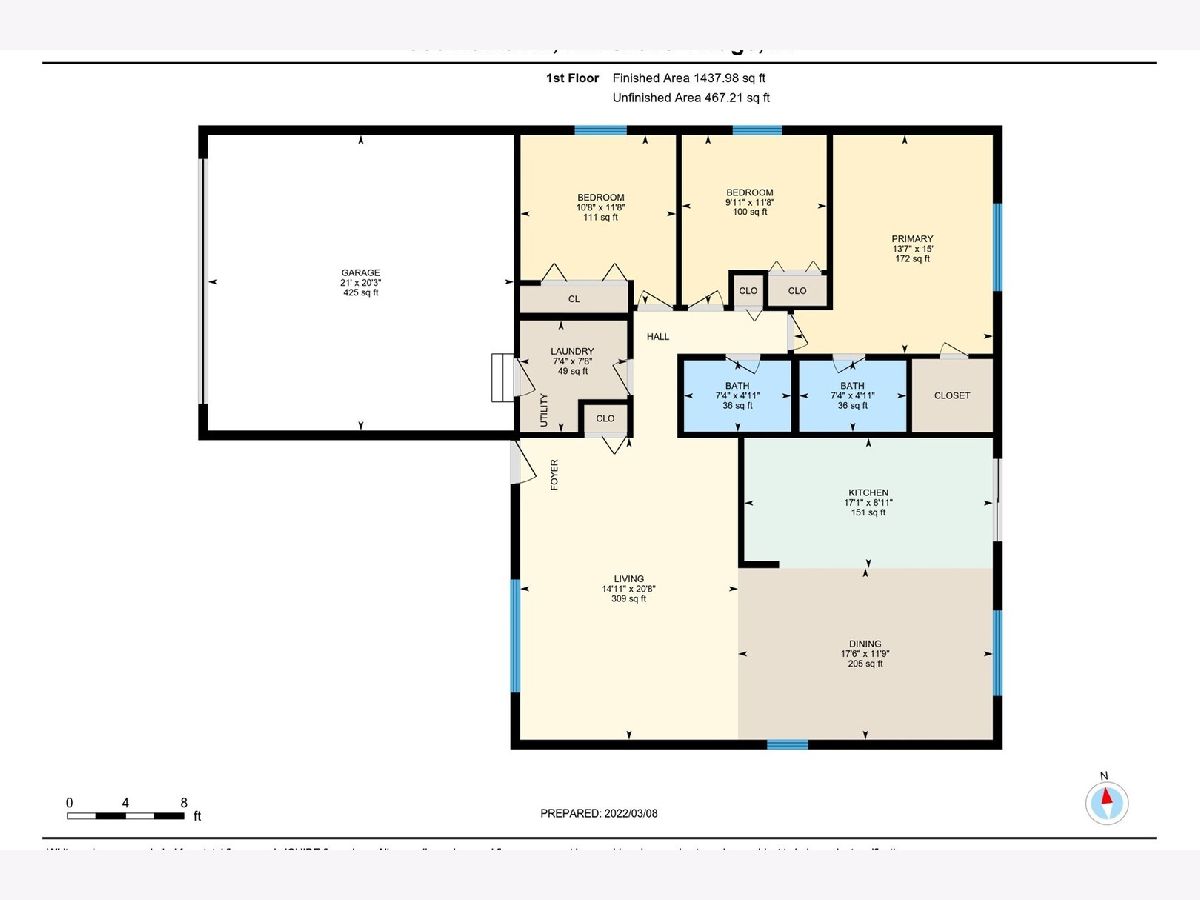 "Floorplan is on the virtual tour!" PICTURE PERFECT RANCH IN TURN KEY CONDITION!! 3 BEDROOM, 2 BATH AND 2 CAR GARAGE. LIVING ROOM AND DINING ROOM WITH VAULTED CEILINGS, CAN LIGHTING OVERLOOKING COMPLETELY REMODELED UPSCALE KITCHEN. QUARTZ COUNTERS, NEW CABINETS, CHIC GLASS BACK SPLASH, NEW FLOORS AND ENHANCED WITH CAN LIGHTING! BRAND NEW CARPETING IN 3 BEDROOMS. FURNACE, A/C, HOT WATER HEATER, 1 YEAR OLD. ROOF AND WINDOWS REPLACED. WONDERFUL NEIGHBORHOOD CLOSE TO ALL! SHOPPING, SCHOOLS, RESTAURANTS AND TOLLWAY ACCESS. TONS ON STORAGE IN ATTIC AND 4 FOOT CRAWL SPACE. MULTIPLE OFFERS HIGHEST AND BEST BY NOON SAURDAY !(3/12/2022).