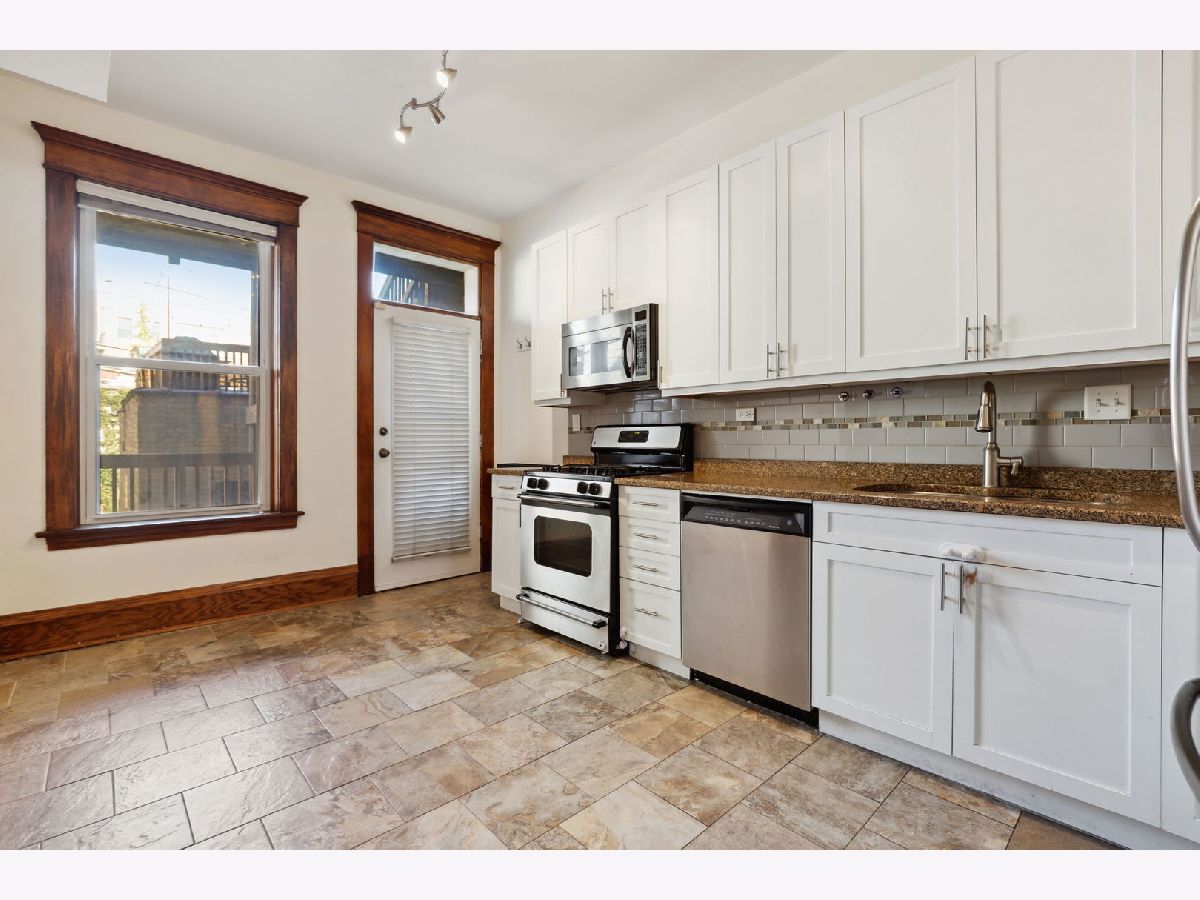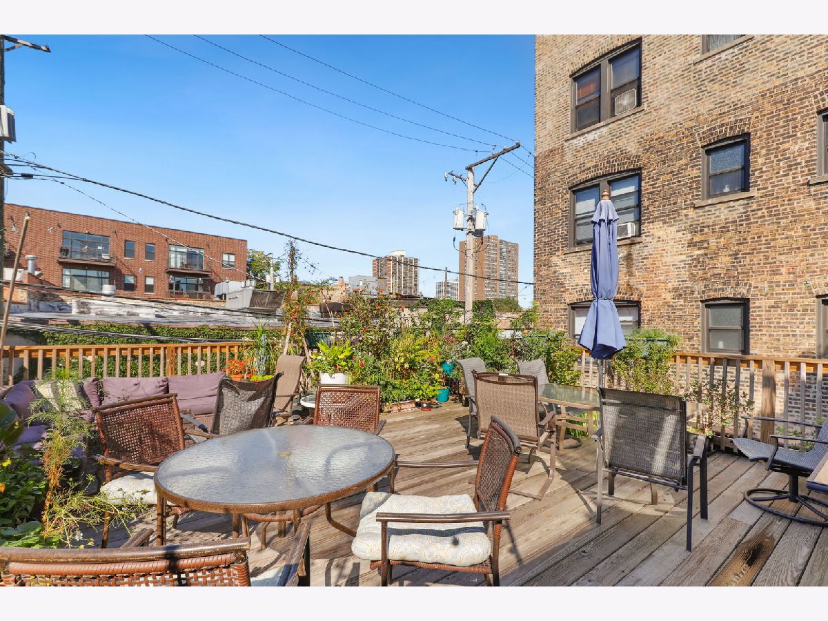 The home you have been waiting for. Bright and spacious condo on a beautiful tree-lined street in highly desirable Buena Park neighborhood. High first floor unit features a beautiful living room with bay windows, woodburning fireplace, original woodwork and hardwood floors throughout. Updated eat-in kitchen with white cabinets, backsplash, granite countertop and stainless steel appliances with large room off kitchen with French doors perfect for den/family, office or third bedroom, Generous sized bedrooms, three full bathrooms, in-unit laundry, additional storage and private deck plus a large common roof deck. Tandem parking space included in the price. Great location - steps to lakefront, Wrigleyville, Uptown, Lakeview, Sheridan redline and buses, Lake Shore Drive, restaurants, shops, parks and more!
