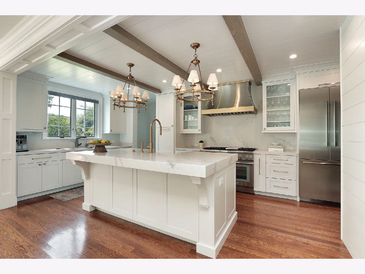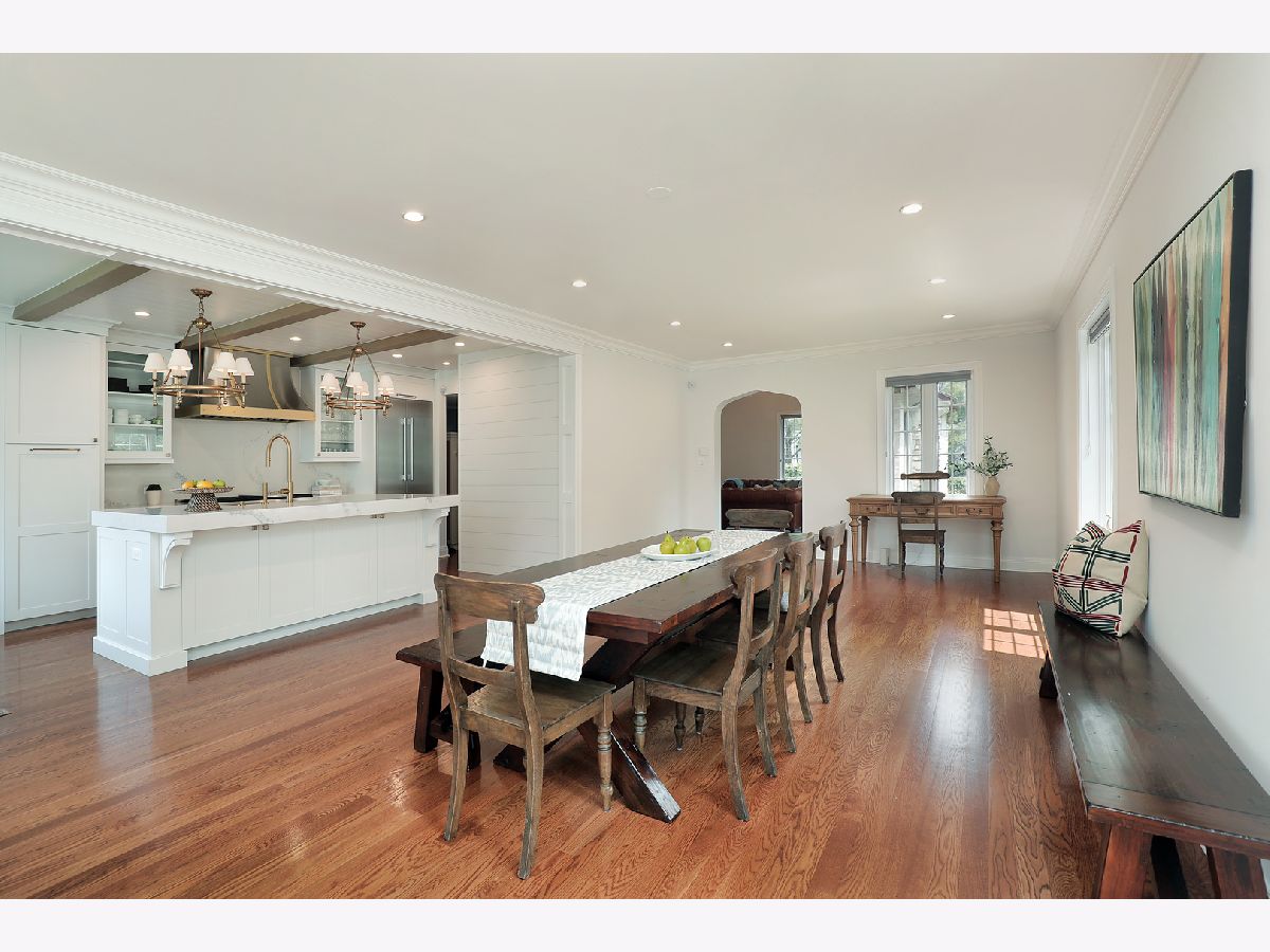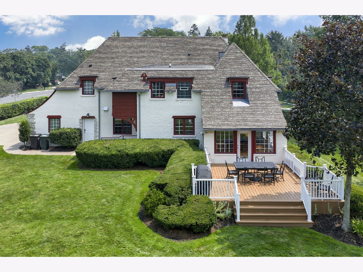 Welcome to this exquisitely maintained and thoughtfully updated Country-inspired estate, originally built in 1929 and offering 4,400 square feet of timeless elegance and modern convenience. Situated on a beautifully landscaped double lot with a large drive, this 5-bedroom, 4.5-bath home masterfully blends architectural character with modern finishes. From the moment you arrive, the storybook charm of the turreted entryway, arched front door, and white brick exterior with stone accents makes a lasting impression. The charming foyer with double height ceilings and gorgeous wrought-iron banister welcomes you to this wonderful home and leads to the massive great room with beamed ceiling, stately wood burning fireplace and 3 crystal chandeliers. The open-plan gourmet kitchen is the heart of the home, featuring a large center island, custom cabinetry, premium appliances, and stunning brass-accented lighting fixtures to match the range hood. The adjoining dining room is perfect for both casual meals and elegant entertaining, and there is room for a 2nd seating area in this light-filled space that overlooks the rear grounds and custom built deck, perfect for al fresco meals. Natural light floods the spacious living spaces, highlighting the clean architectural lines, soft neutral palette, and high-quality finishes throughout. Also on the first floor is a spacious main floor bedroom with gorgeous ensuite bath. So convenient! Ascend to the second floor where you can overlook the great room as you move through arched doorways that lead to 3 spacious bedrooms, 2 full baths and a full laundry room. The primary suite is a true sanctuary with large walk-in closet and a spacious bath with double sinks, soaking tub, and separate shower. The beautifully finished lower level offers plentiful space with a huge recreation room, oversized bedroom, and lovely full bath. With its blend of 1920s craftsmanship and modern elegance, this home offers the best of all worlds. Whether you're hosting dinner parties, relaxing with family, or working from home, this unique residence offers exceptional style and function in every detail. Don't miss this opportunity to own a historic gem updated for contemporary living.