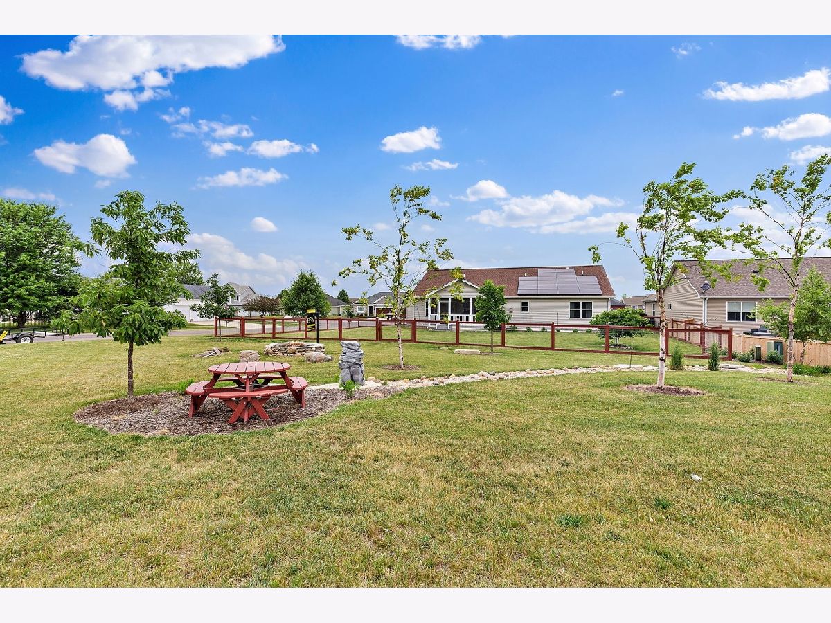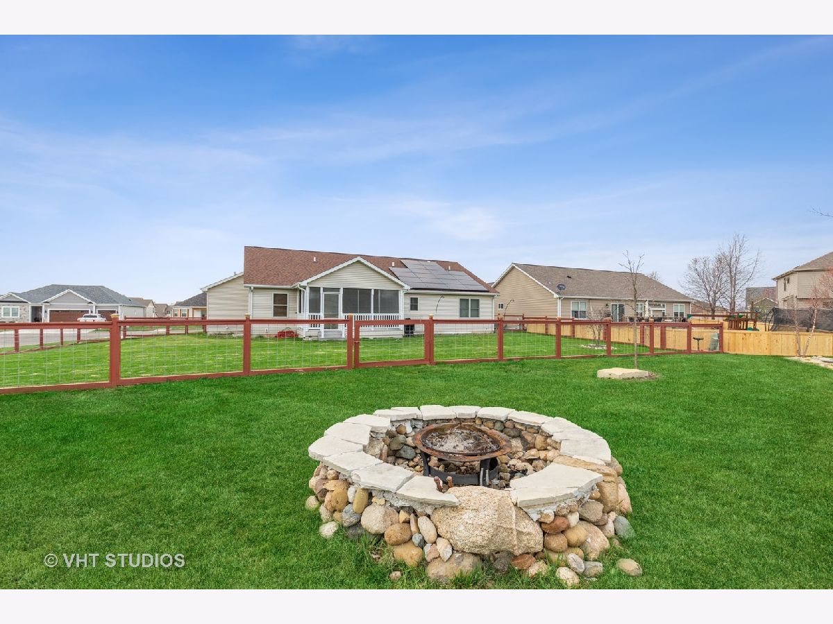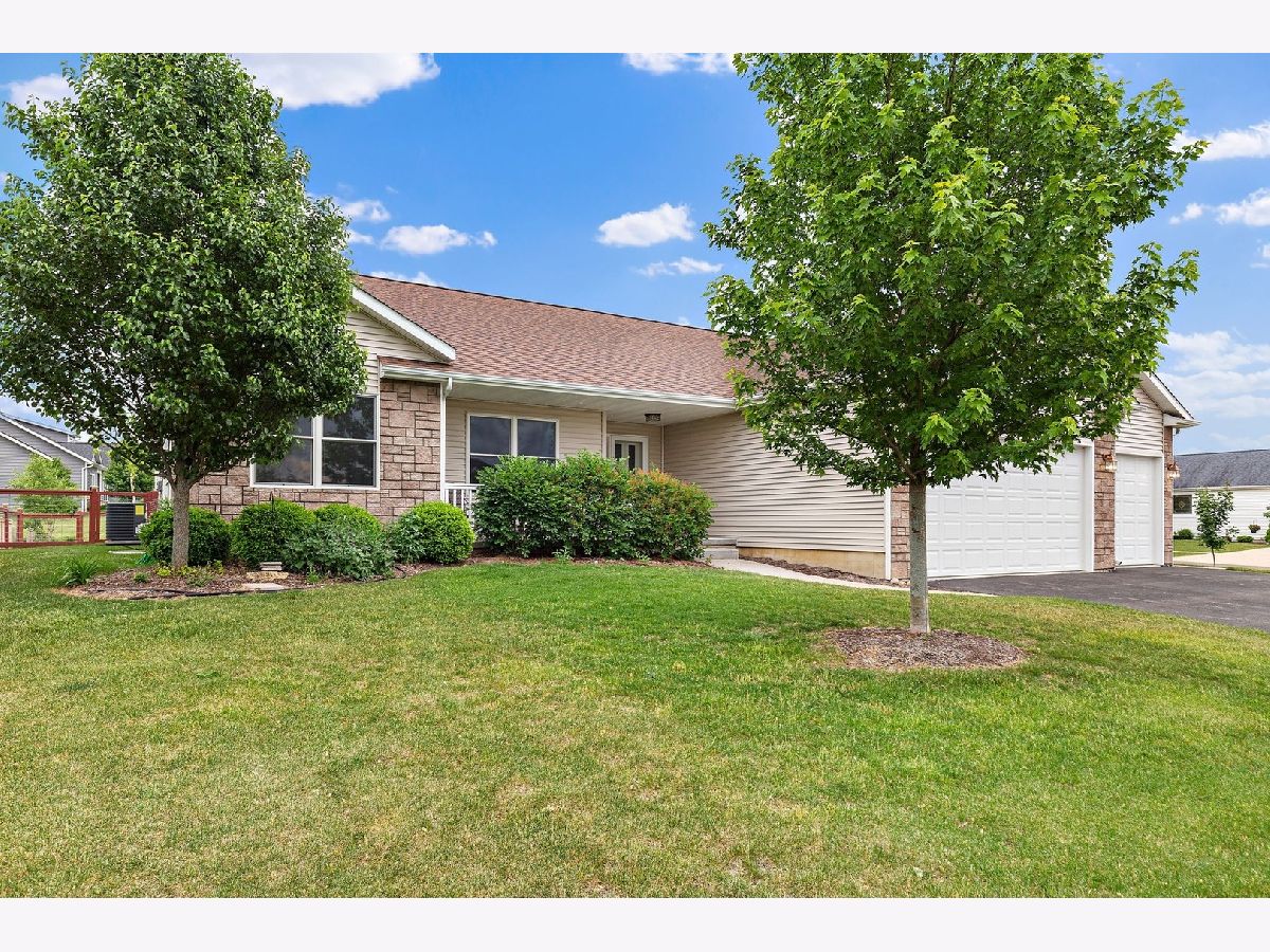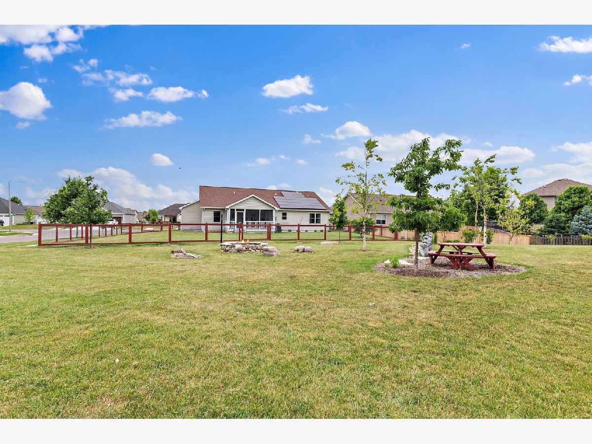 So much to offer! Amazing home on corner double lot. Extra lot is buildable but also is tastefully landscaped for the next homeowner to enjoy. Enhanced with beautiful trees and dry riverbed plus brick firepit for evening fires. The remainder of the yard is fenced for the security of pets. Home is GREEN with rented solar panels and energy efficient mechanicals. Electricity bills are minimal. Light, bright and open concept home with vaulted ceilings, 3 bedrooms and 2 1/2 baths. 3 car heated garage with openers on all doors and service door to the yard. Enter this home thru the front door to the amazing foyer that boasts maple flooring which runs thru the kitchen/ dining area. Enjoy the 3 season room almost year round! Full insulated basement plumbed for third full bath, ready to be finished off, 2 egress windows for added security. Amazing storage space too! All 3 bedrooms are nice sized. Master boasts master bath with tall vanity and walk in shower and a massive walk in closet in the master bedroom. Unique one of kind backsplash and brickwork on the hearth of the gas fireplace. Every room has lighted ceiling fans that are switched on the wall for easy on and off. Home is situated on the edge of town but there is a park around the corner, schools are nearby. Easily converted to meet ADA requirements! Easy commute to visit adorable downtown Sycamore where you can enjoy quaint restaurants and shops. Easy 5 minute ride to the Sycamore/DeKalb shopping area where all the big box stores and even more one of a kind restaurants. Close to Northern Illinois University and I-88 for quick commuting. Extra lot Pin No. is 0628355025 and taxes for 2020 are $608.53. Total taxes for both lots is $7,508.17.