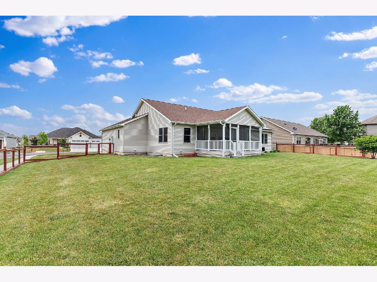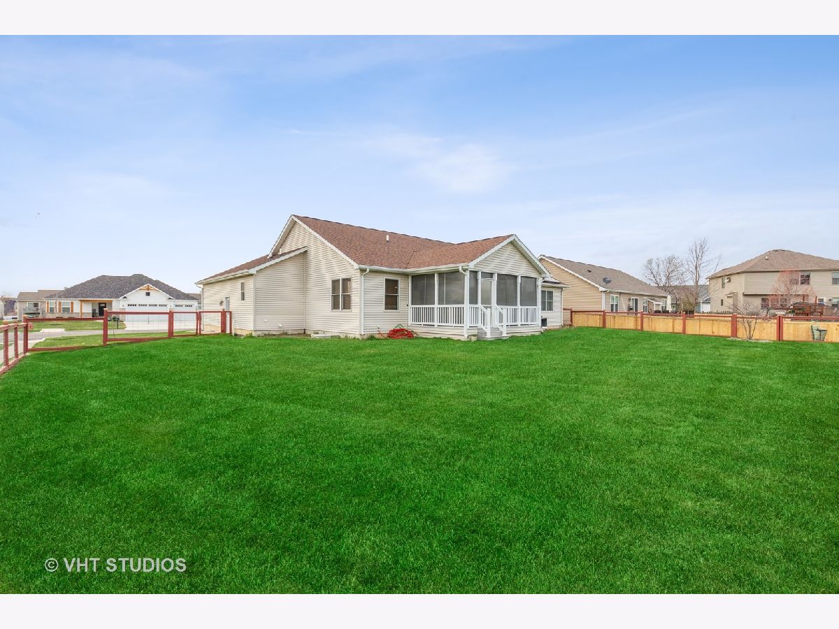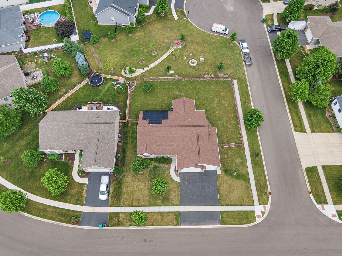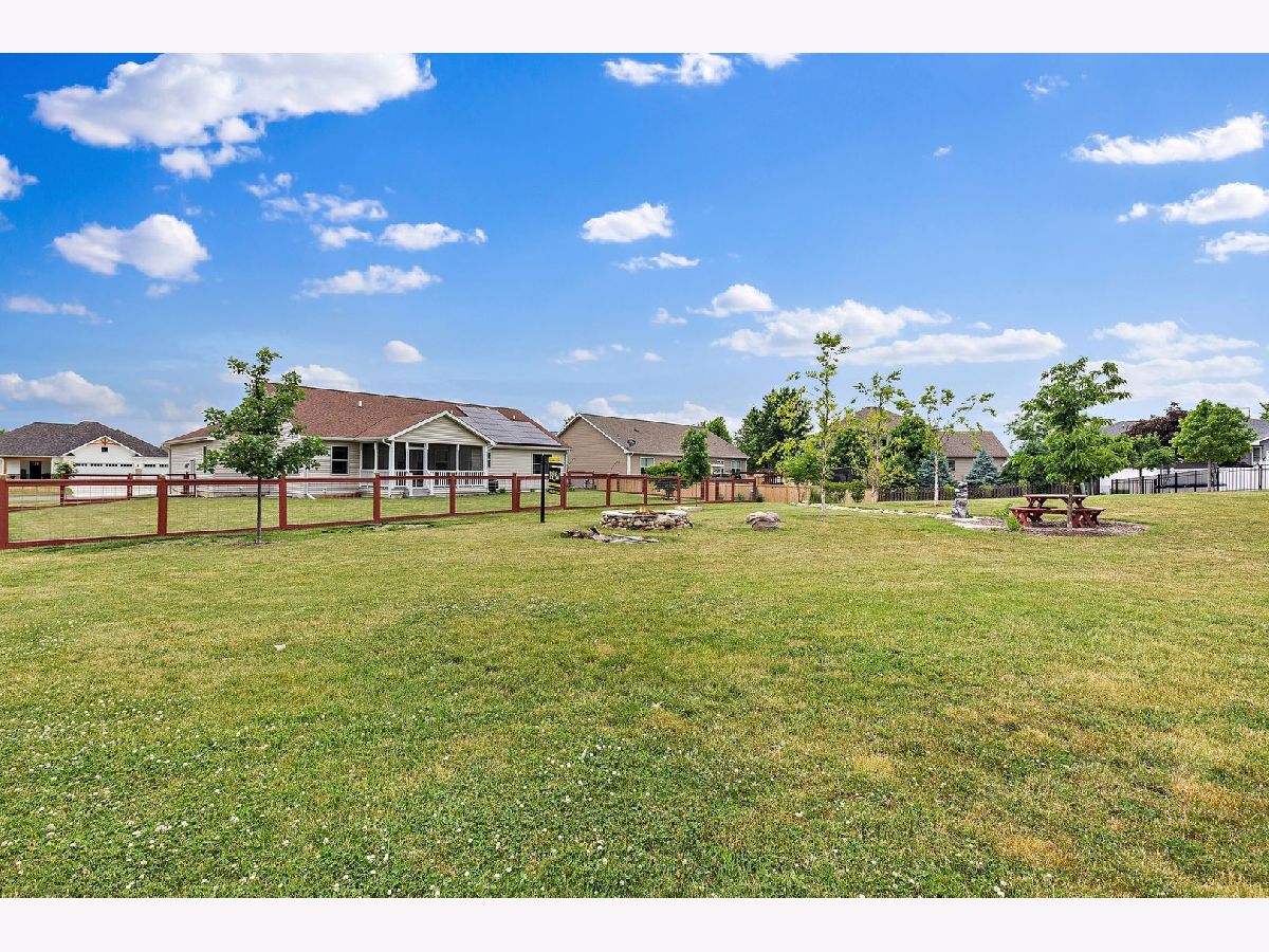 So much to offer! Amazing home on corner double lot. Extra lot is buildable but also is tastefully landscaped for the next homeowner to enjoy. Enhanced with beautiful trees and dry riverbed plus brick firepit for evening fires. The remainder of the yard is fenced for the security of pets. Home is GREEN with rented solar panels and energy efficient mechanicals. Electricity bills are minimal. Light, bright and open concept home with vaulted ceilings, 3 bedrooms and 2 1/2 baths. 3 car heated garage with openers on all doors and service door to the yard. Enter this home thru the front door to the amazing foyer that boasts maple flooring which runs thru the kitchen/ dining area. Enjoy the 3 season room almost year round! Full insulated basement plumbed for third full bath, ready to be finished off, 2 egress windows for added security. Amazing storage space too! All 3 bedrooms are nice sized. Master boasts master bath with tall vanity and walk in shower and a massive walk in closet in the master bedroom. Unique one of kind backsplash and brickwork on the hearth of the gas fireplace. Every room has lighted ceiling fans that are switched on the wall for easy on and off. Home is situated on the edge of town but there is a park around the corner, schools are nearby. Easily converted to meet ADA requirements! Easy commute to visit adorable downtown Sycamore where you can enjoy quaint restaurants and shops. Easy 5 minute ride to the Sycamore/DeKalb shopping area where all the big box stores and even more one of a kind restaurants. Close to Northern Illinois University and I-88 for quick commuting. Extra lot Pin No. is 0628355025 and taxes for 2020 are $608.53. Total taxes for both lots is $7,508.17.