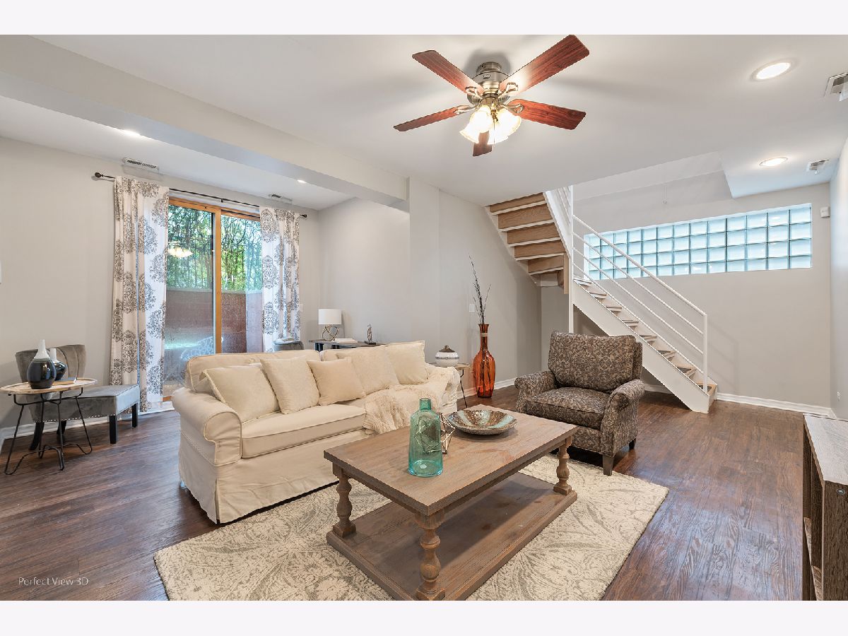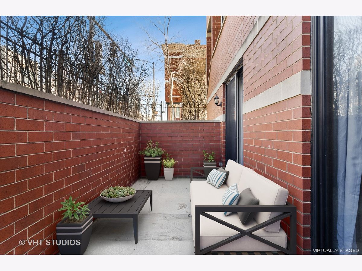 New staging and new photos! Contemporary brick construction in East Village/West Town. Huge duplex w/large patio and garage parking. The width and windows of this home create a wonderful space. Enter from your private front porch and sun pours into the living room and kitchen from expansive windows. Spacious open living room has wood burning fireplace and a designated spot for a dining table. Shaker cabinets and stainless steel appliances equip the very functional kitchen. There are many large storage drawers plus a long peninsula that can accommodate several bar stools. Amply sized master bedroom has walk-in closet and bath with classic stone and subway tile. Another huge living space/family room anchors the lower level. Also two more bedrooms and another full bath make this unit suitable for many lifestyles. Family room can easily fit a home office in addition to a traditional family room set up. True separate laundry room with side by side w/d and additional storage. Nearly 200 sq ft walk-out patio off family room. One garage parking space included. Walk to both Division & Chicago Avenue shopping & restaurants, multiple parks & public trans/blue line. Best price for 3-bed, 2-bath on the market! Don't miss it!
