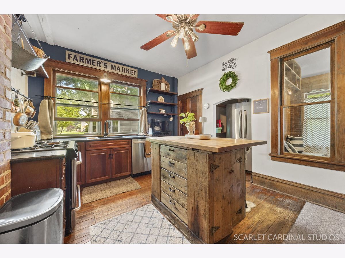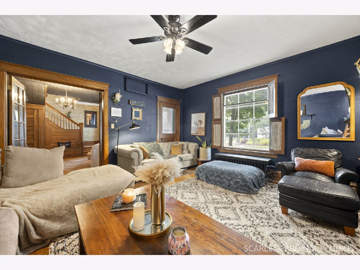 This classic 1930s home offers timeless curb appeal with modern updates and unbeatable location perks. Nestled on a spacious corner lot, this 4-bedroom, 1-bath home invites you to enjoy small-town living at its finest-where you can sip coffee on the front porch and watch the parades go by. Step inside to find a cozy kitchen and character-filled living spaces full of warmth and original charm. All four bedrooms are located on the second floor along with the full bathroom. The basement is partially finished, offering additional flex space for storage, hobbies, or a home office. Enjoy summer evenings in the shaded backyard or gather on the large patio for entertaining. A detached two-car garage adds convenience. Front yard is fenced. Just steps to coffee shops, dining, parks, the riverfront, and everything downtown Oswego has to offer-this is walkable living with vintage flair. Home does not have central A/C. Roof 2020. Boiler is about 7 years old. Don't miss your chance to own a piece of Oswego history in an unbeatable location.