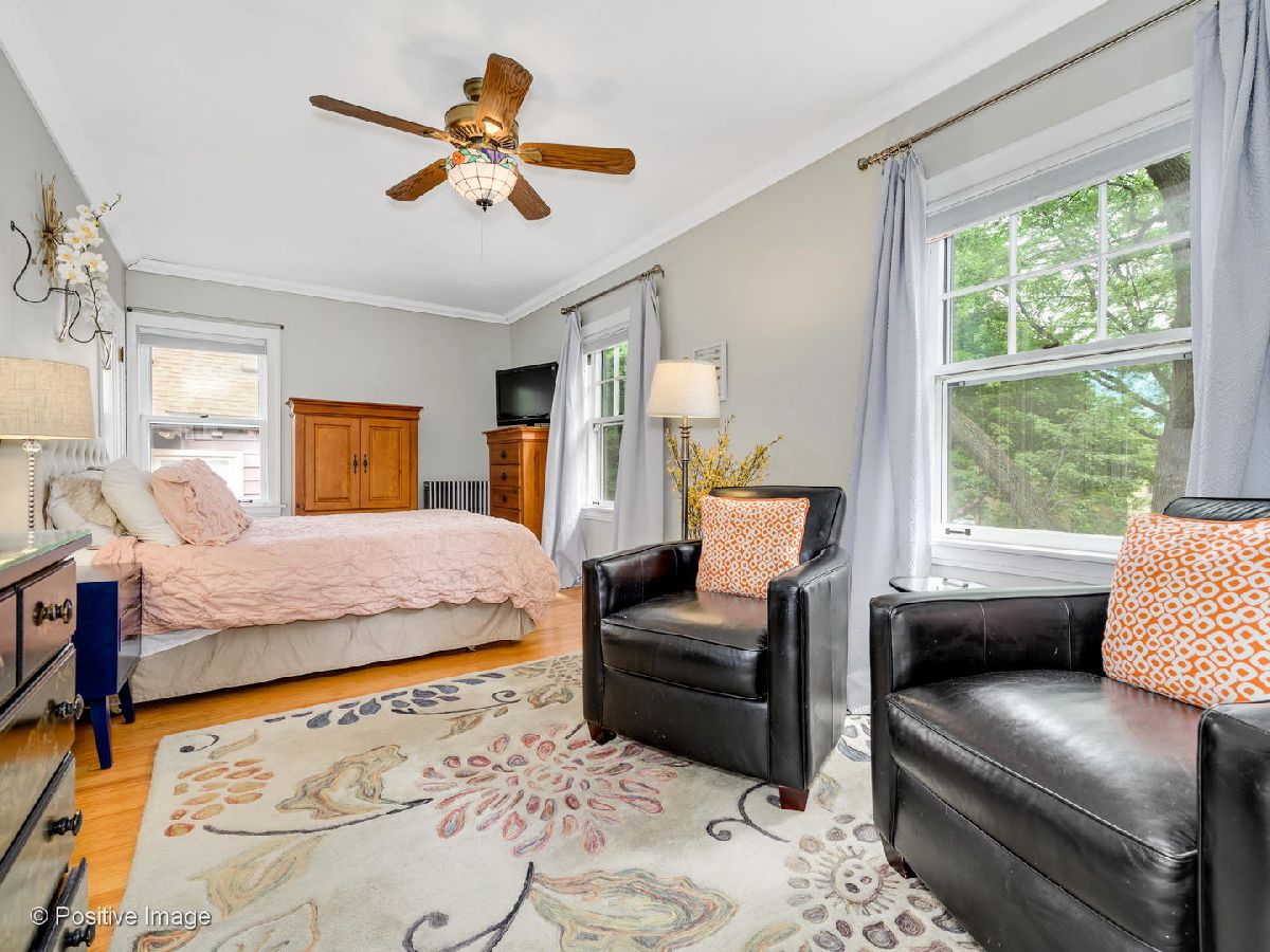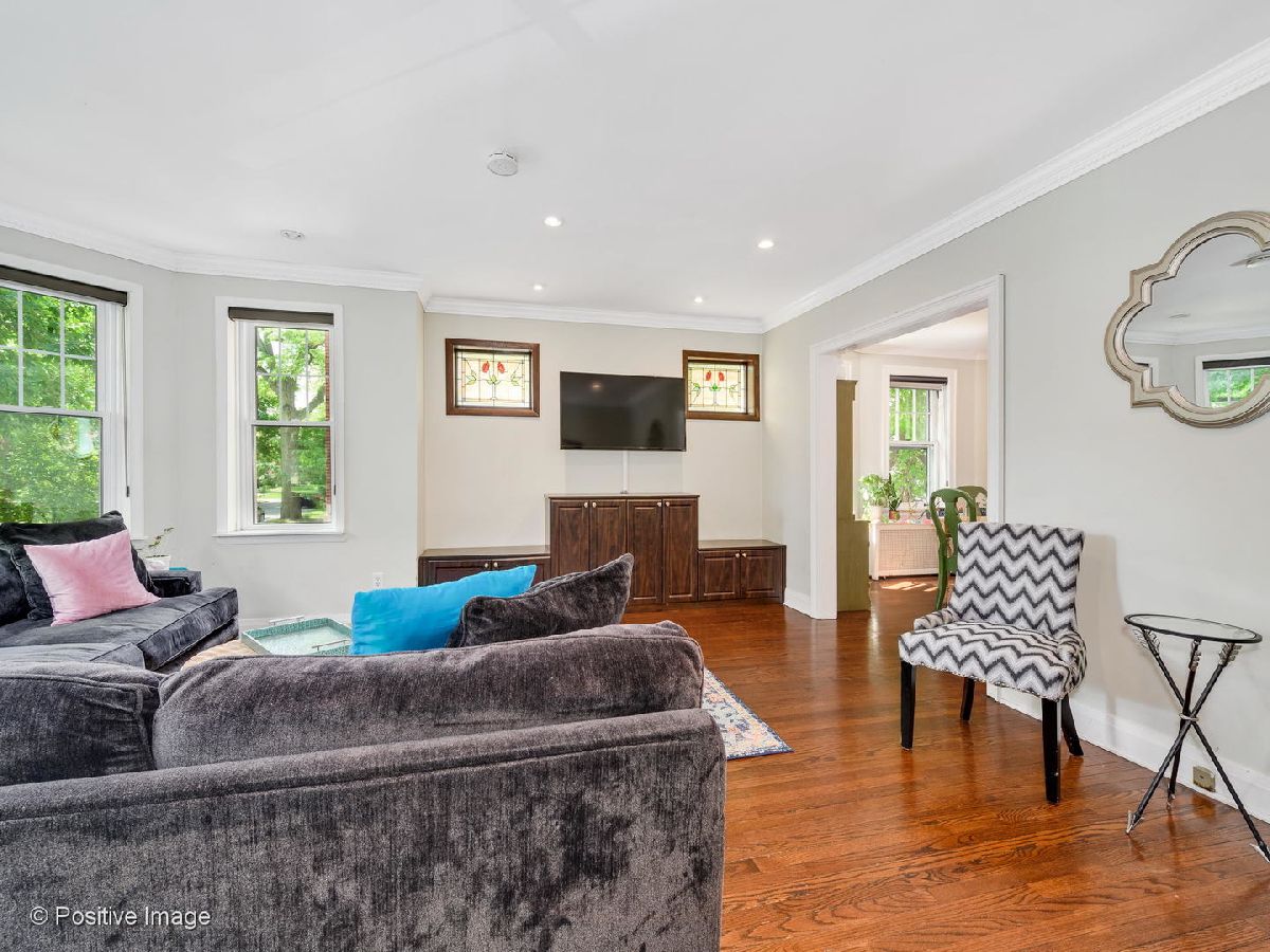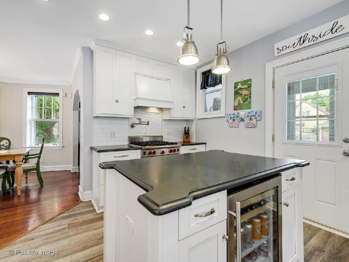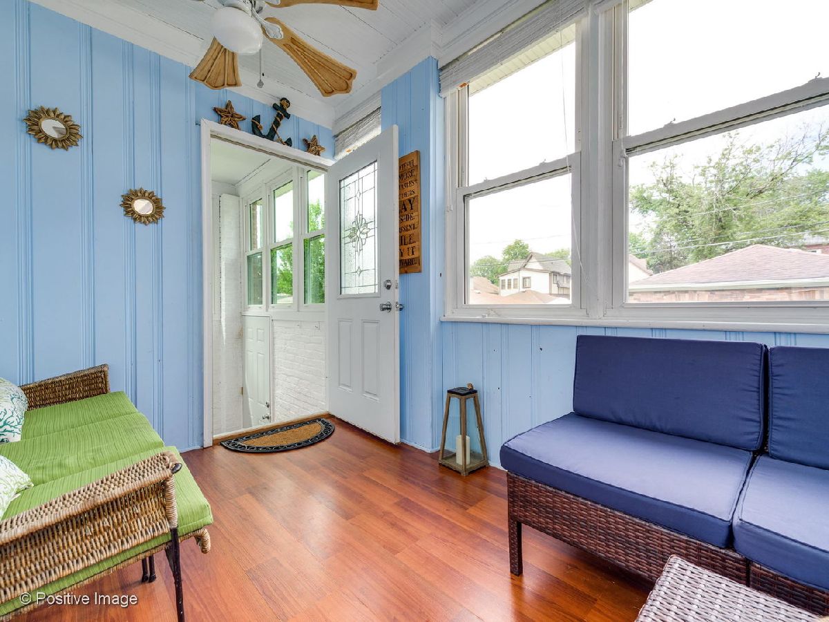 This Beverly beauty features hardwood floors, crown molding, lovely built in cabinets and ample storage space throughout. Kitchen finished with subway tile backsplash, honed soapstone countertops, white shaker style cabinets, Wolf stove, Jen Air fridge, Bosch dishwasher, and an island with a built in wine cooler. Spacious primary bedroom and two additional large bedrooms on second floor with cedar closets. Full bath equipped with Kohler jacuzzi tub and white subway tile. New bay and storm windows, large capacity washer/dryer and ventless gas fireplace in basement with waterproof Luxury Vinyl Plank flooring. Other features include whole house fan, three season room off Kitchen, insulated attic and upgraded 200 amp electrical service. Expansive backyard with beautiful landscaping, stamped concrete patio and two car garage. Blocks away from Metra, Ridge Park, Dan Ryan Woods, Beverly Shopping District and more!