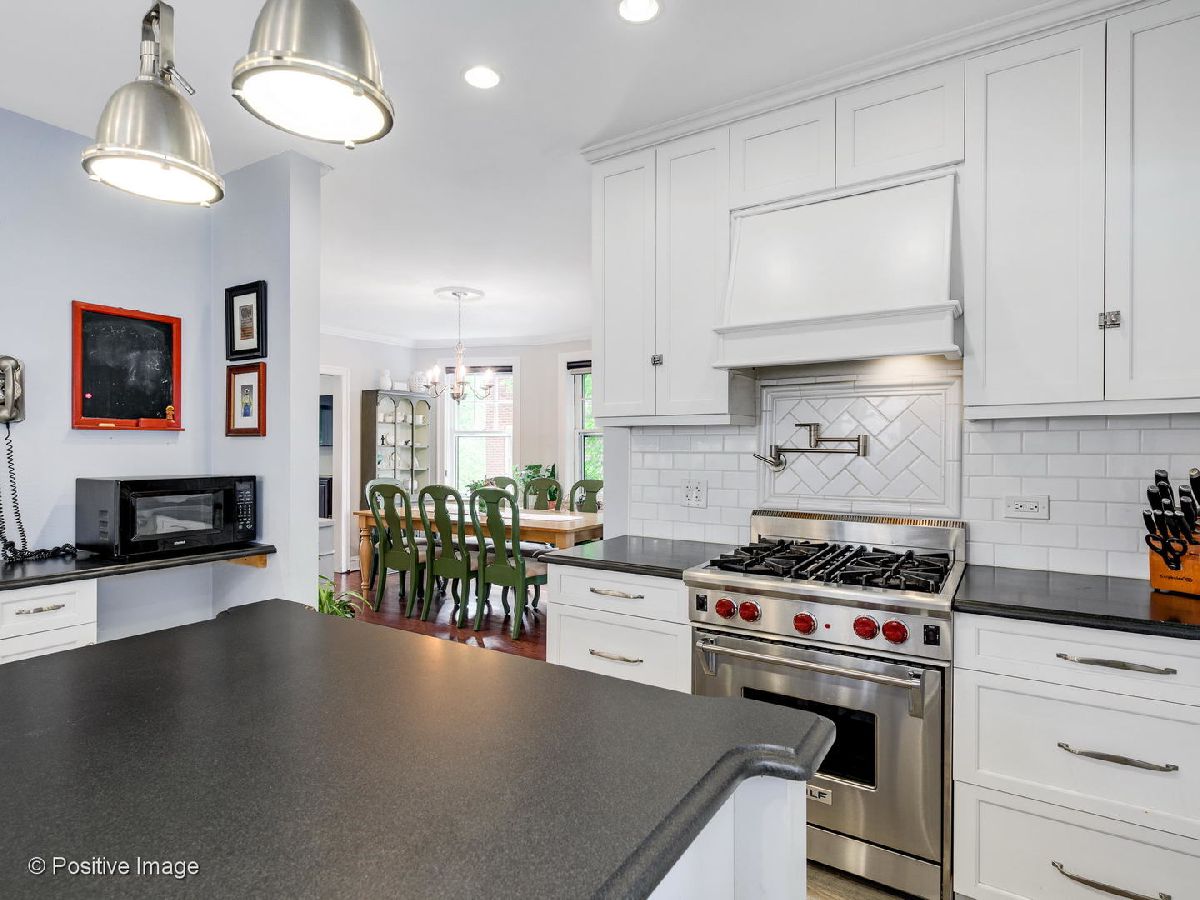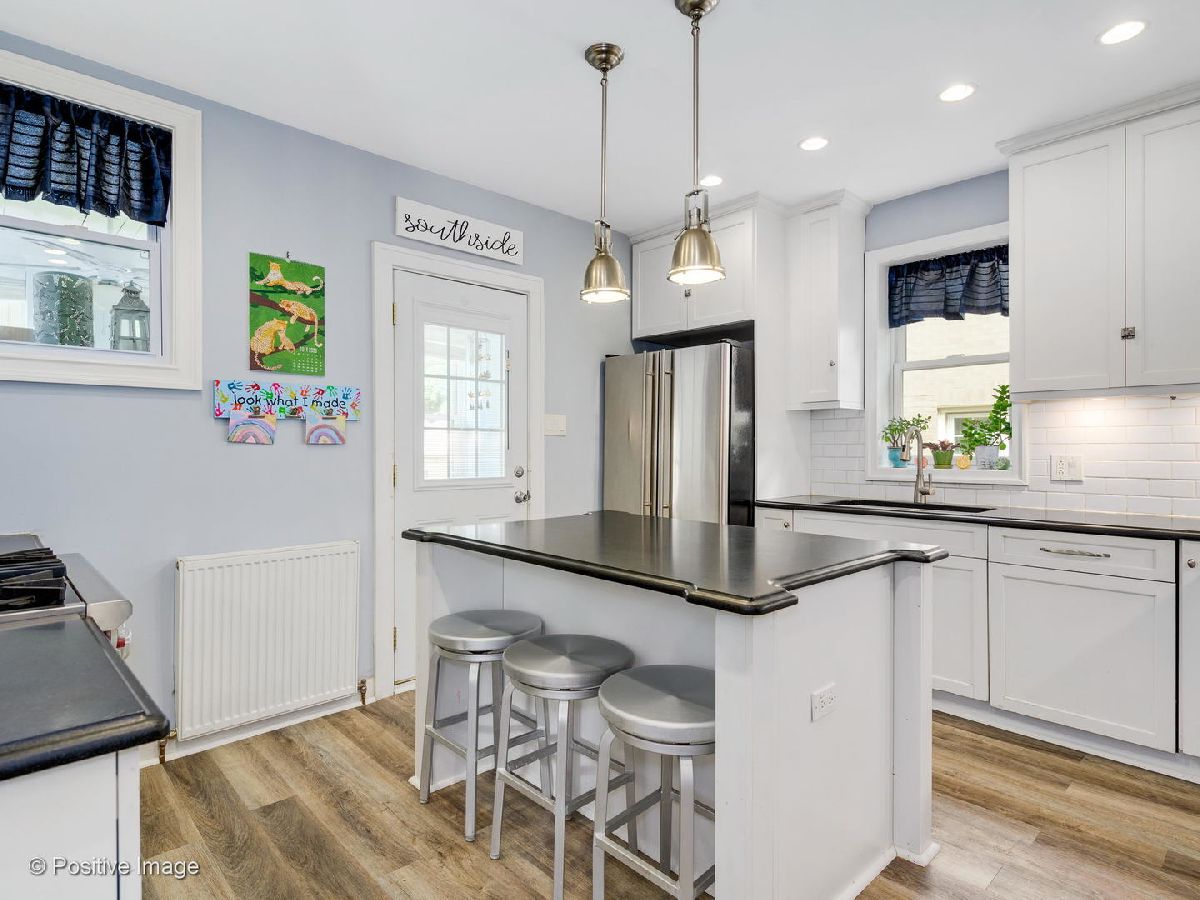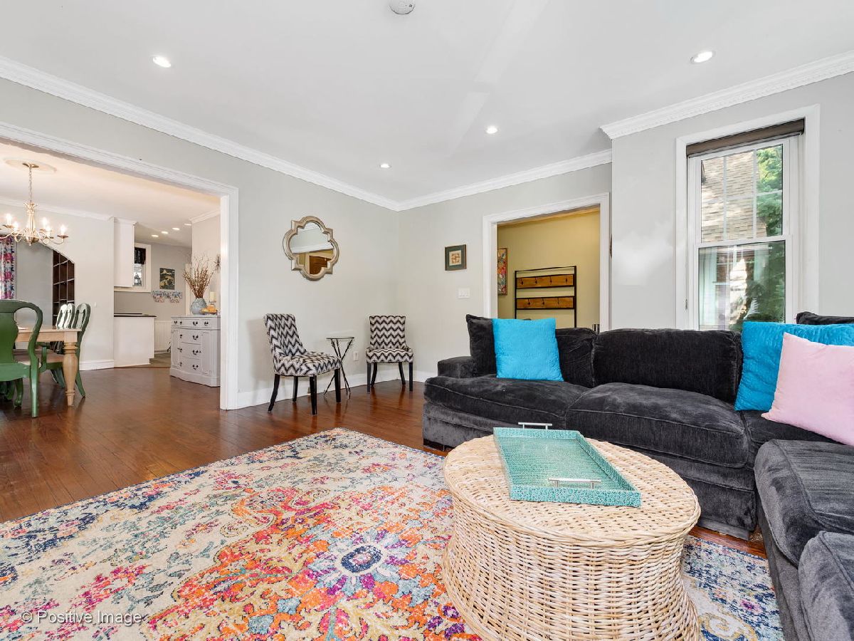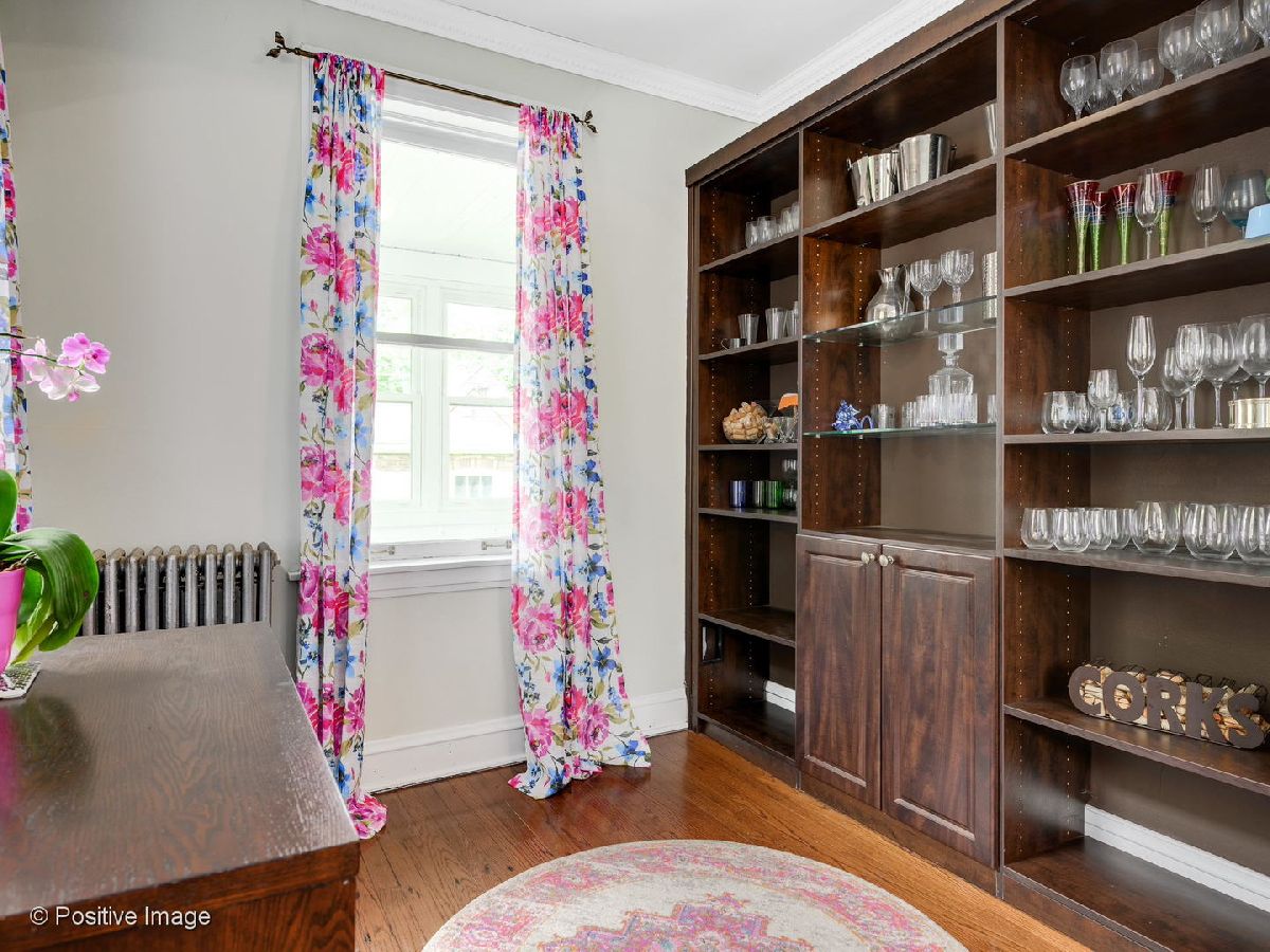 This Beverly beauty features hardwood floors, crown molding, lovely built in cabinets and ample storage space throughout. Kitchen finished with subway tile backsplash, honed soapstone countertops, white shaker style cabinets, Wolf stove, Jen Air fridge, Bosch dishwasher, and an island with a built in wine cooler. Spacious primary bedroom and two additional large bedrooms on second floor with cedar closets. Full bath equipped with Kohler jacuzzi tub and white subway tile. New bay and storm windows, large capacity washer/dryer and ventless gas fireplace in basement with waterproof Luxury Vinyl Plank flooring. Other features include whole house fan, three season room off Kitchen, insulated attic and upgraded 200 amp electrical service. Expansive backyard with beautiful landscaping, stamped concrete patio and two car garage. Blocks away from Metra, Ridge Park, Dan Ryan Woods, Beverly Shopping District and more!