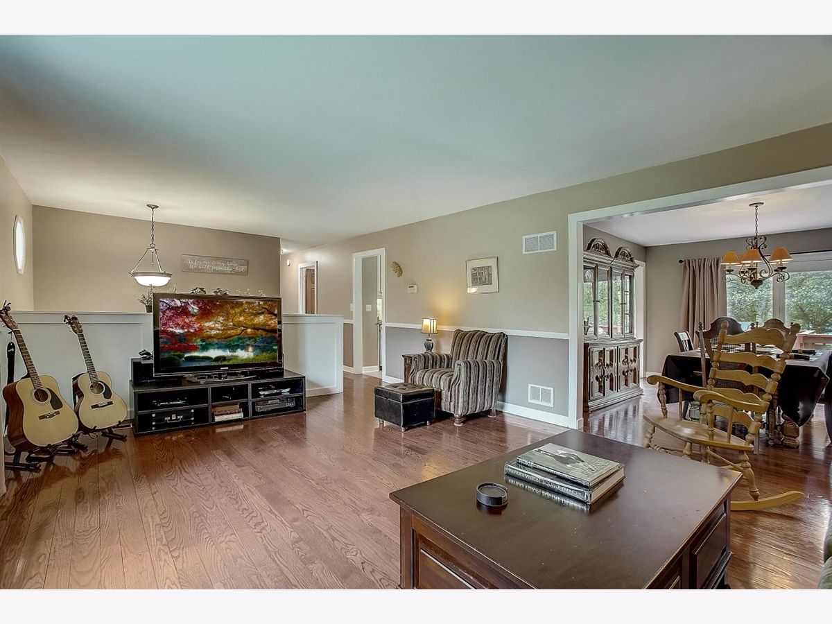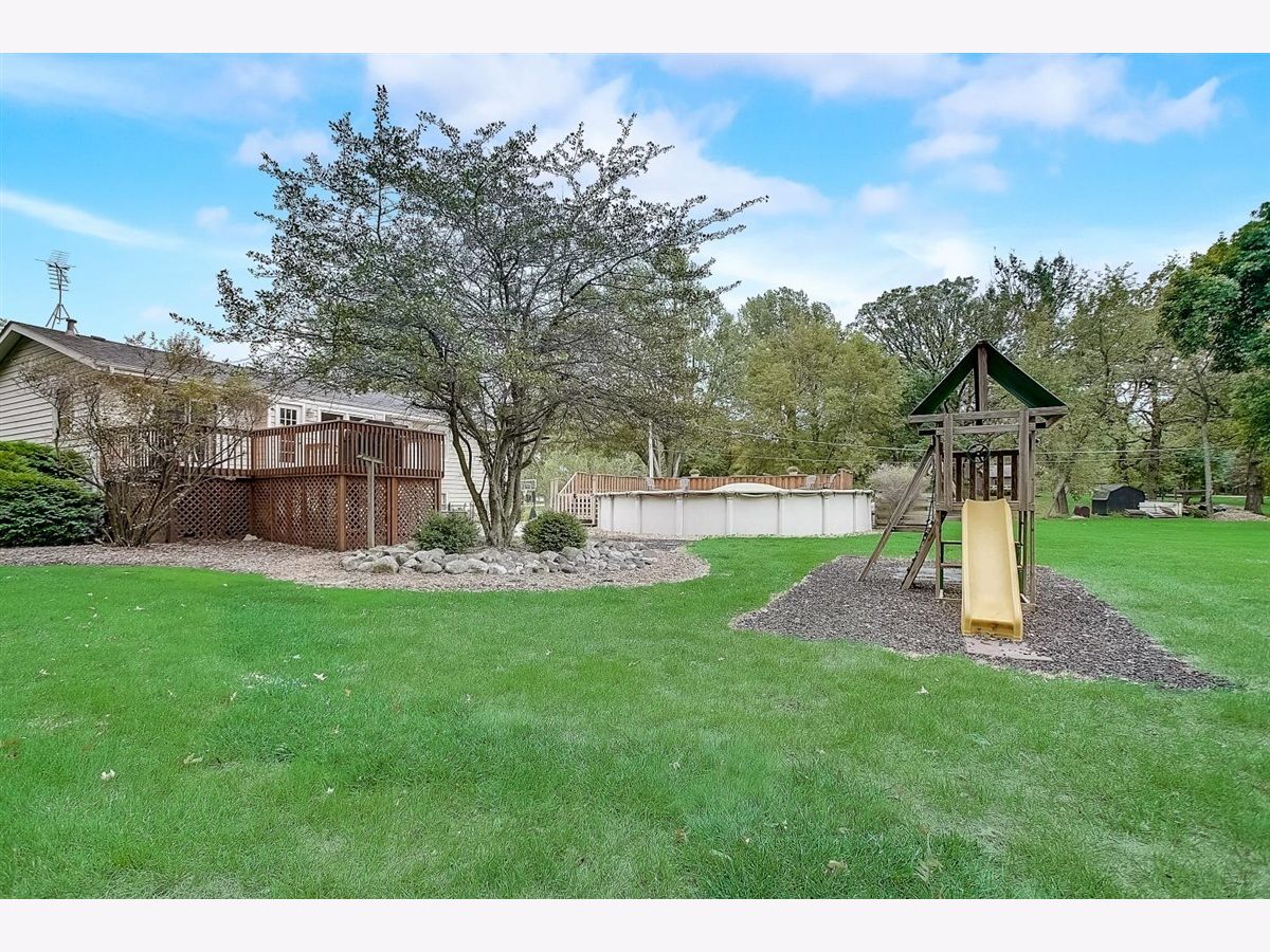Country charm in the Huntley School District! Rare opportunity to own a very well-maintained and updated raised ranch in the Knoll Top subdivision - a quiet estate lot neighborhood, minutes from downtown Huntley. Main floor has 3 bedrooms and 2 remodeled bathrooms, along with hardwood floors, fresh paint, and custom features throughout. The remodeled kitchen is highlighted by quartz countertops, custom cabinetry, and a large island. The lower level, with a family room, 4th bedroom, and half bath/laundry room, has also been freshly painted and has brand new carpeting. The oversized 2 car garage offers lots of storage and workspace. This beautiful home sits on over an acre of professionally landscaped property, featuring an amazing backyard living area with two large decks connected by a huge brick paver patio. There is also a heated swimming pool, a large frame built shed/workshop with electricity, and a covered patio with additional storage. Truly the best of both worlds - serene country setting with low taxes, yet close to everything, serviced by Comcast Xfinity high speed internet and cable, and in the highly rated Huntley School District.