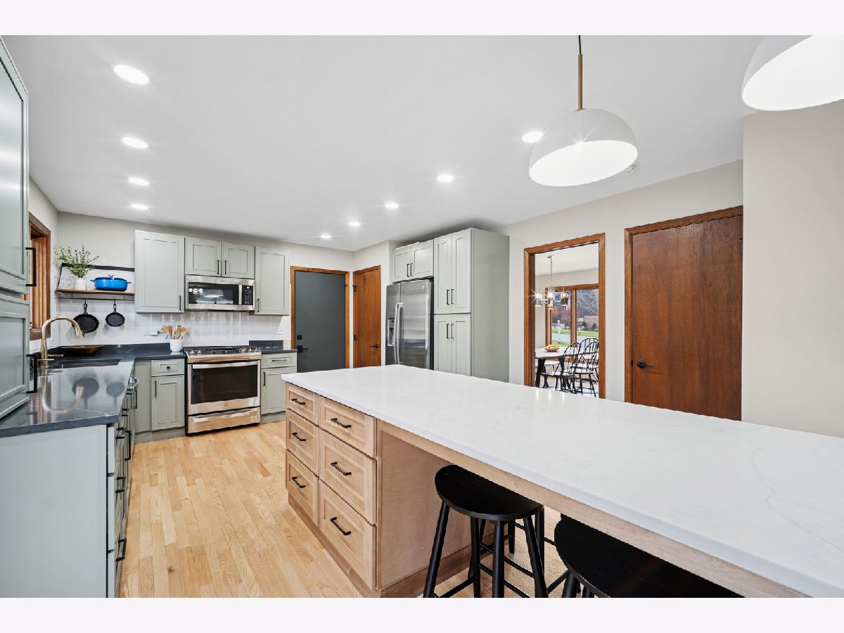 Welcome to 9620 Fox Shores, Algonquin - where river access, space to breathe, and a fully rehabbed interior come together like a master plan. This 4-bedroom, 2.1-bath home sits just a few steps from a dead-end cul-de-sac with a private community boat launch and dock, making spontaneous Fox River days dangerously easy. Toss in picnic tables, grills, and a laid-back river community vibe, and suddenly weekends are booked. Inside, the seller went all-in with a full interior rehab in 2024, and it shows. The entry welcomes you with new ceramic tile, while fresh paint throughout gives the entire home a clean, modern feel. The kitchen is an absolute showpiece-completely remodeled with new shaker cabinets in a two-tone design, decorator shelving, and a gigantic center island with breakfast bar seating that can handle everything from weekday chaos to full-on entertaining mode. The layout flows beautifully into the living spaces, including a family room with a cozy gas-log fireplace-perfect for chilly winter nights when boating season is on pause but comfort is not. Even better? Two separate patio spaces give you outdoor options galore: one off the kitchen slider for grilling and gatherings, and another off the family room slider for relaxing, entertaining, or quietly congratulating yourself on this purchase. All bathrooms have been updated with new flooring, vanities, and fixtures, so there's no "we'll fix it later" energy here. The Primary suite has space to spare & grace to match, with TWO walk-in closets and a private bath with dual sink vanity. Want more? How about a private balcony overlooking the Fox River? A picturesque space for morning coffee or evening cocktails watching the sun set. Outside, the home sits on a huge .57-acre lot with mature trees and landscaping-room to spread out, entertain, or simply enjoy the peace. And because this property is in an unincorporated area, you'll enjoy lower real estate taxes, which we all agree is the least flashy but most lovable feature. Why Algonquin? Riverfront charm, a vibrant downtown, great dining, nearby trails, shopping, and quick access to everything without losing that neighborhood feel. Add Fox River access and you're not just buying a house-you're upgrading your lifestyle. If you've been waiting for a move-in-ready home with real space, real updates, and real river access, this one delivers. Just don't wait too long... homes this close to the water don't sit quietly for long. Especially when no flood insurance is required!!!