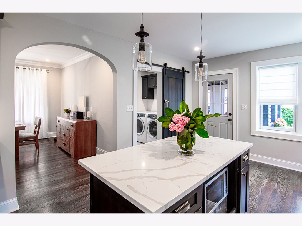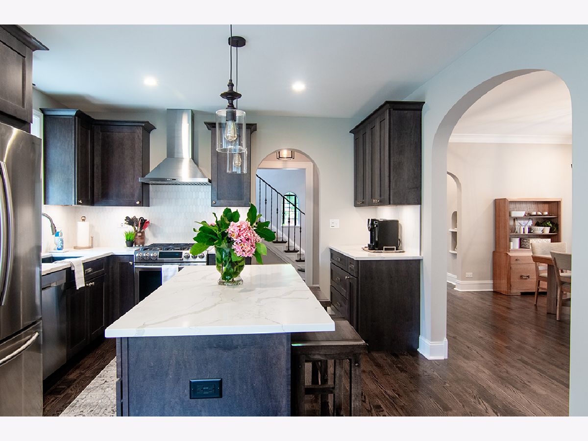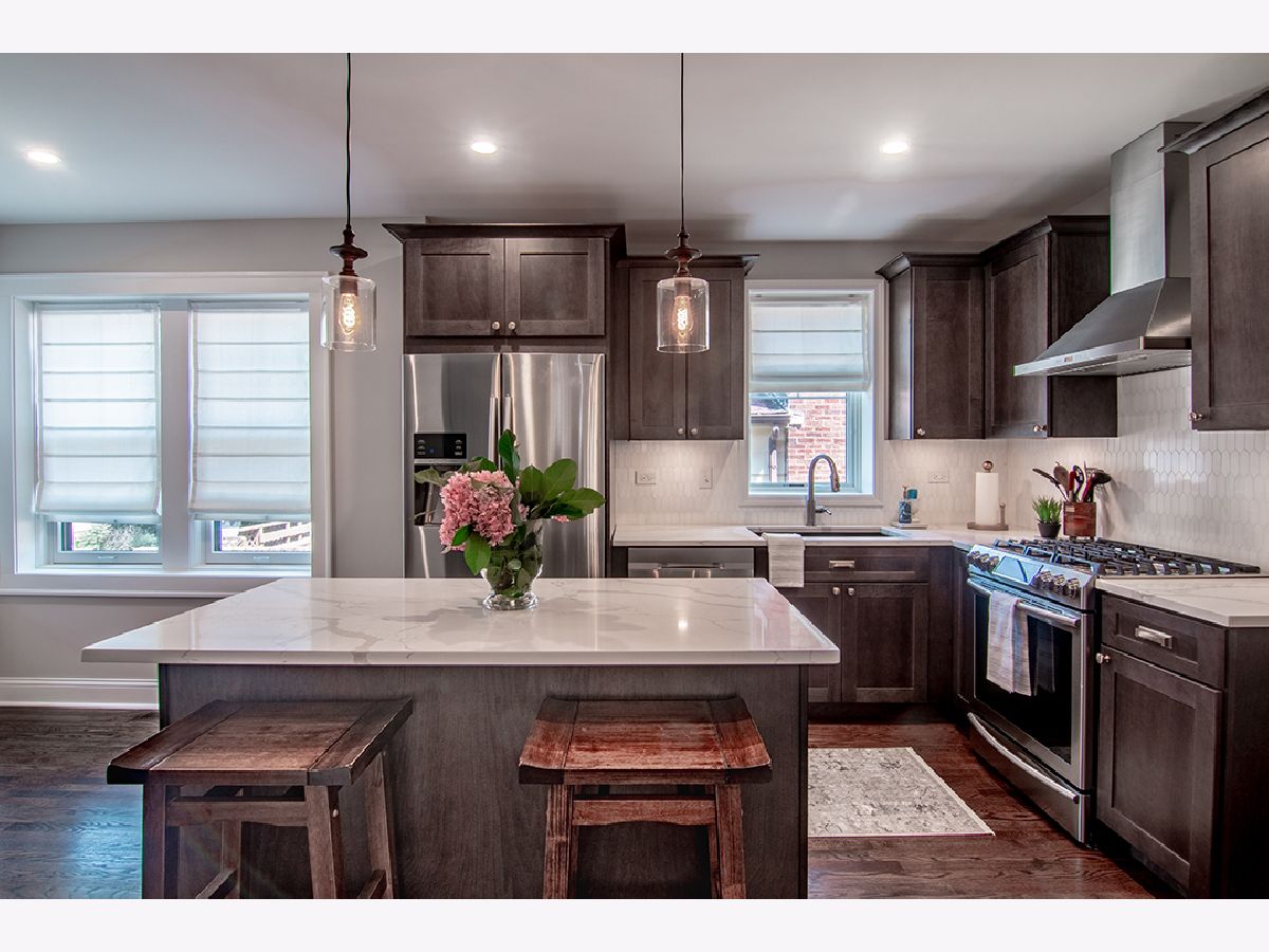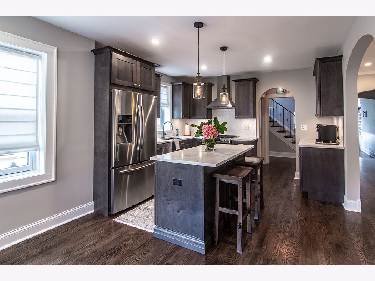 Historically significant Beverly English Tudor meets modern design. As you enter this home, you will be greeted with beautiful flowing hardwood floors. This home has been remodeled from top to bottom, maintaining some of the key attractions, including arched entryways from room to room, cathedral ceiling in the main living room, original wood molding and trim, etched stain glass windows all enhanced by modern upgrades. Some of these features include remodeled kitchen and bathrooms, including new Maple cabinets with soft close doors and drawers, Calcatta marble backsplash, quartz countertops, and new Samsung kitchen appliances. This large three-bedroom, four-bath home features a fully finished walk-out basement, including a bathroom, recessed lighting, wet bar, along with plenty of storage. The large rooms surely will impress, a formal dining room, a screened and heated three-season room overlooking a spacious fully fenced back yard. This home has a large side drive from the main road to a detached single car garage for added convenience. The fantastic curb appeal of this home includes beautiful architecture with recently tuckpointed brick masonry and stone accents giving it that historic appeal and look. Other important updates include new Pella windows throughout, newer roof, and two newer furnaces along with two air conditioners, main level laundry, walk-in pantry closet, master suite bathroom with walk-in closet including his and her organizers. The other two bedrooms also include walk-in closets. The attention to detail should not go unnoticed from the Herringbone pattern design on the tiles in the laundry and bathrooms, wainscoting, and all around historic millwork. A Move-in-ready home with nothing to do but enjoy history and exceptional craftsmanship in this unique one-of-a-kind historic Chicago property.