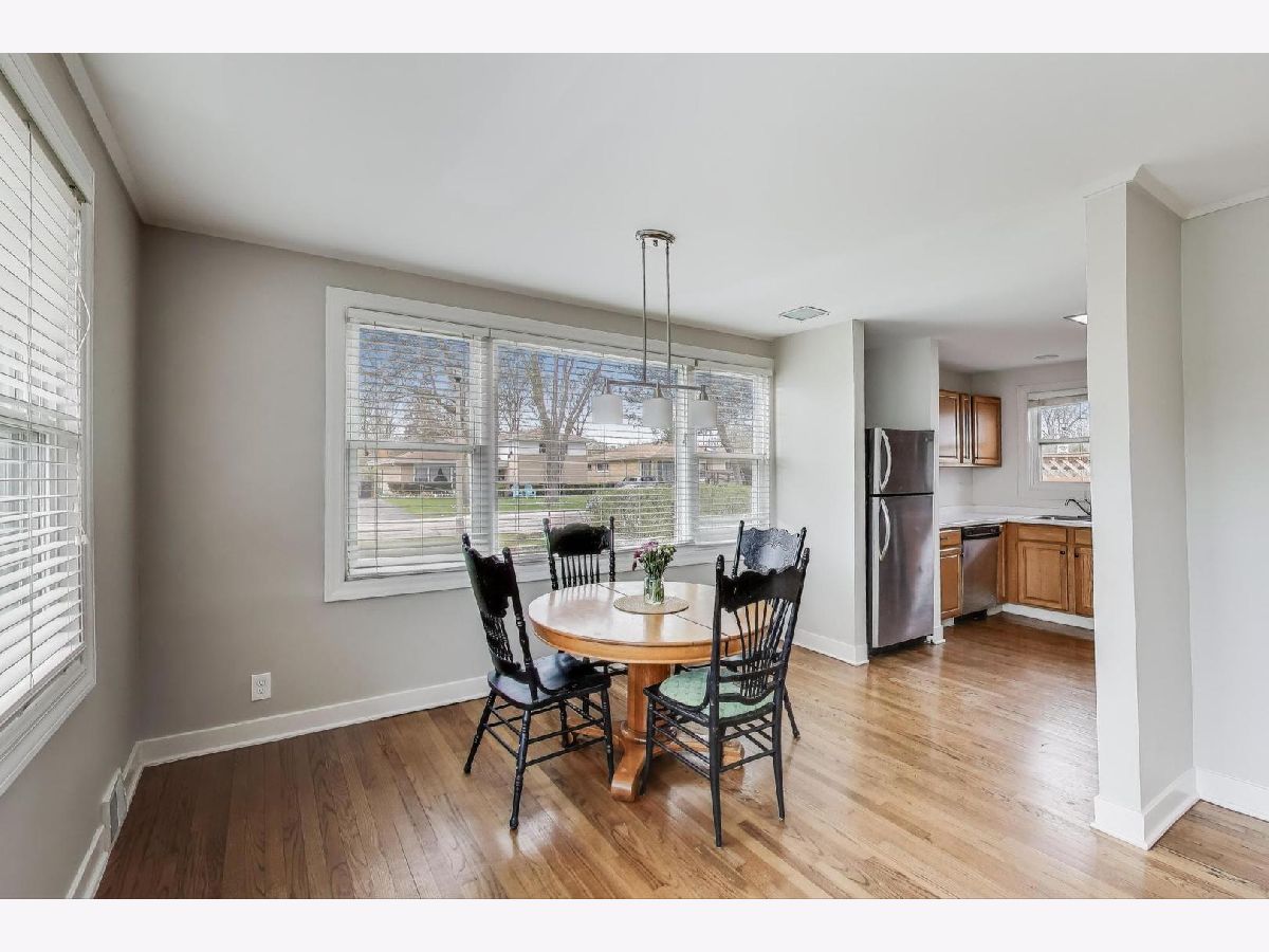 Updated & lovingly maintained Sun Drenched 3 bed 1 bath home boasting thoughtful updates and a gorgeous entertaining yard. Newly refinished (2019) Hardwood Flrs throughout. Updated Bathroom & newer furnace. Large Kitchen with newer SS appliances and custom shelving by back door in kitchen (2019) New roof (2022). Full Size Side By Side Washer/Dryer. Open and spacious bright living room / dining room combo with beautiful wood burning fireplace., Attached carport with newer wooden support & privacy wall (2019). Newer windows throughout. Pull Down Staircase to newly insulated Attic (2020) with Extra Storage. Highly sought after rarely available Devonshire neighborhood with exceptional Highland Elementary, Old Orchard JH & Niles North HS schools. Gorgeous newer 17X8 Patio (2020) with pergola for entertaining opens to a beautiful yard with native plants and native & fruit trees, dry creek bed, vegetable garden with fence and gate (2023) and extended downspouts for drainage (2020). Huge Lot W/Storage Shed and plenty of space for playing, entertaining and enjoying the outdoors. Move in ready and awaiting your personal touches this updated home is a true gem! On the PLN as we await new drain tile, membrane and sills to be installed. Showings allowed. Listing will be live once work is done. Text Val with questions or to show.