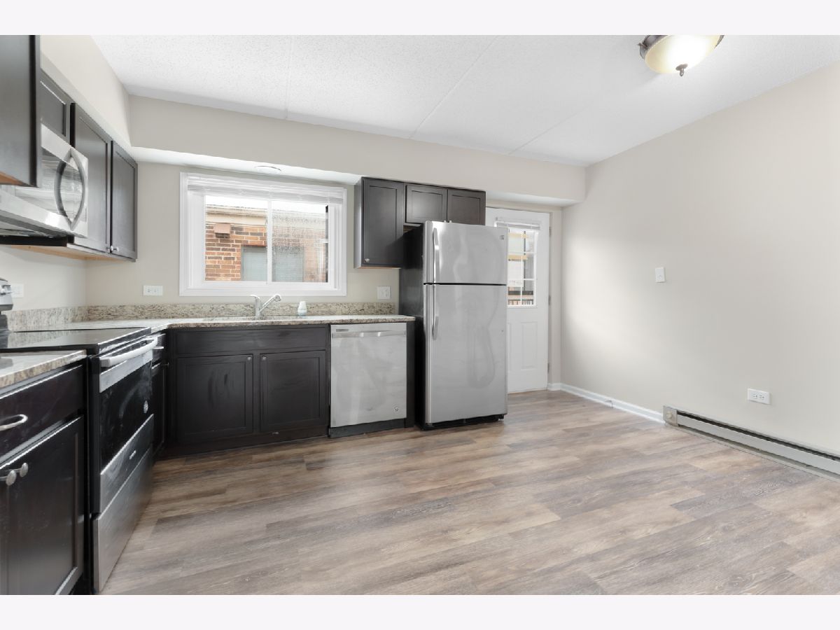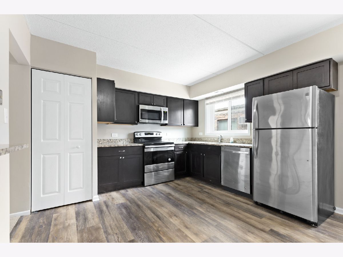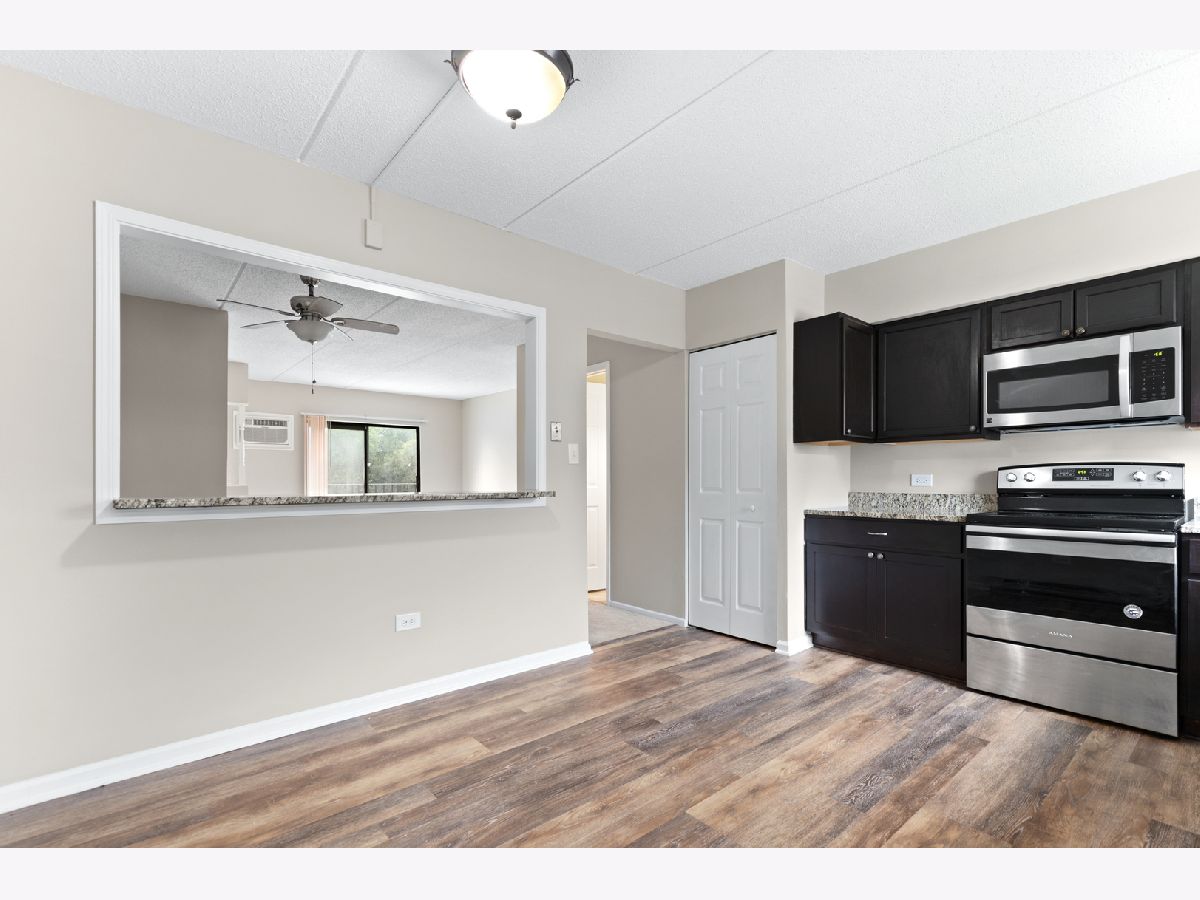 Gorgeous condo in Kings Point Subdivision. This unit offers 2 bedrooms, 1.1 baths and 922 sq ft of living space. Completely refreshed and move in ready. Gleaming wood laminate flooring. Newer carpet and paint throughout. Espresso cabinetry, granite counter tops and stainless steel appliances in the kitchen. Updated hall full bath with newer tub surround. White doors and trim throughout. Private balcony. This great location is within walking distance to Centennial Park and just minutes to I-355/I-290 Expressways. Property is sold AS-IS. Taxes prorated 100%. Seller does not provide a survey.