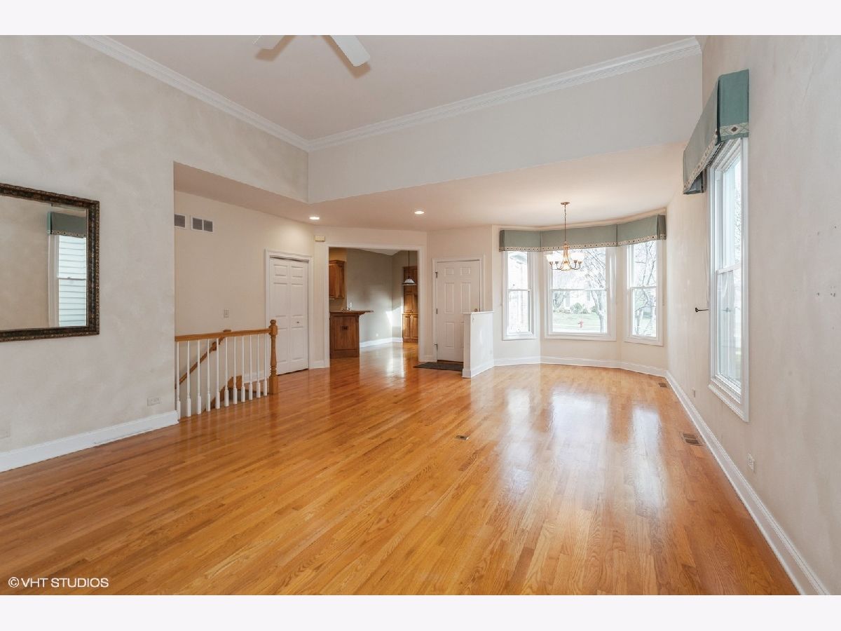 Hard to find large first floor primary bedroom ranch duplex on a quiet street, just minutes from Randall Road dining, shopping and Metra. Well built home with open floorplan, hardwood floors, six panel doors, custom trim and many original upgrades. Primary bedroom is big! Features bay window, large closet. Bath has bath tub and separate shower Kitchen has loads of cabinets, double oven, vaulted ceiling and eat in area with built-in cabinet. Large, sunny walkout finished English basement has a spacious family room, a bedroom, br/den and a full bathroom. Ample storage area with space for everything you need. This versatile floorplan can work for everyone from first time home buyers, big families or empty nesters.