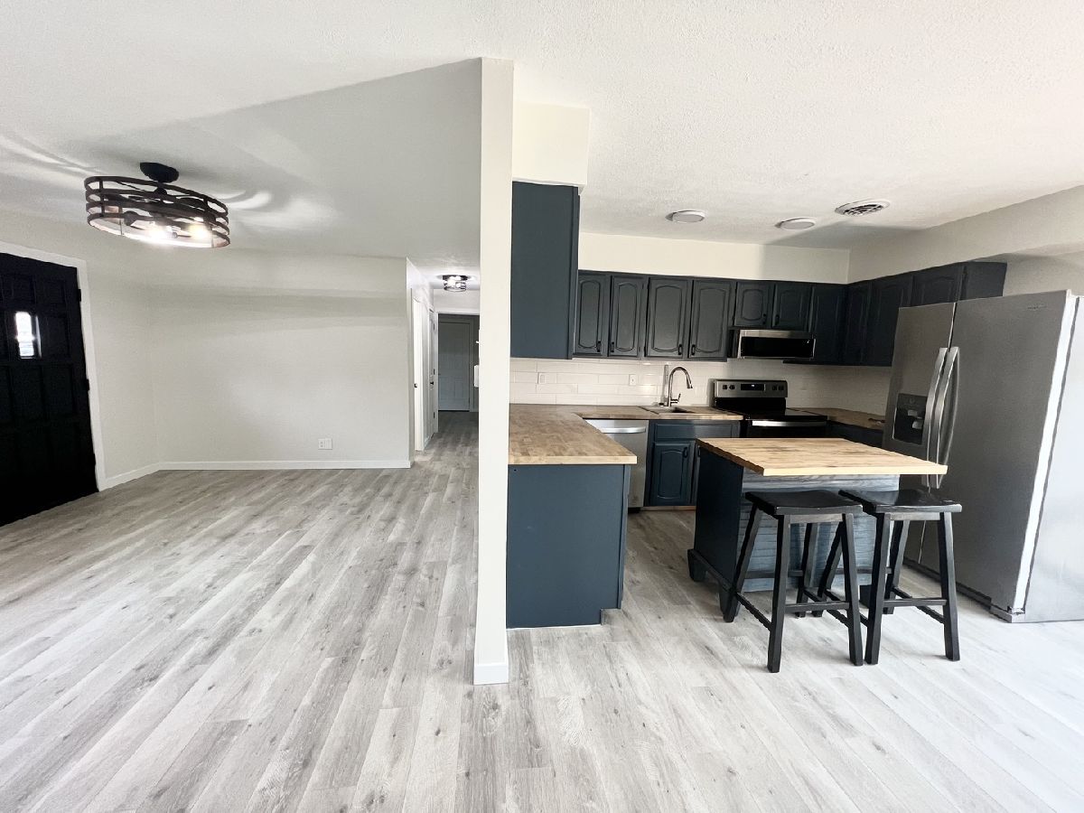 This charming 2-bedroom, 1 full-bath ranch on a corner lot is a haven of modern comfort and convenience, boasting an array of recent updates and desirable features. Step inside to discover a beautifully updated kitchen adorned with new Whirlpool appliances. The spacious living room invites relaxation with its cozy wood-burning fireplace, offering warmth and ambiance on chilly evenings. Enjoy the outdoors in the fenced-in backyard, complete with a patio ideal for entertaining. With an oversized 2-car attached garage featuring a new garage door and opener, parking and storage are a breeze. The allure continues indoors with an updated full bathroom, providing both style and functionality. A utility room adds convenience, ensuring easy access to laundry facilities and additional storage space. This home has undergone a recent transformation, featuring a new roof and a host of interior and exterior upgrades. Revel in the beauty of new laminate flooring, freshly painted walls adorned with new trim, new interior doors, updated electrical outlets, and the enhanced ambiance provided by all new light fixtures throughout. Don't miss your chance to make it yours!