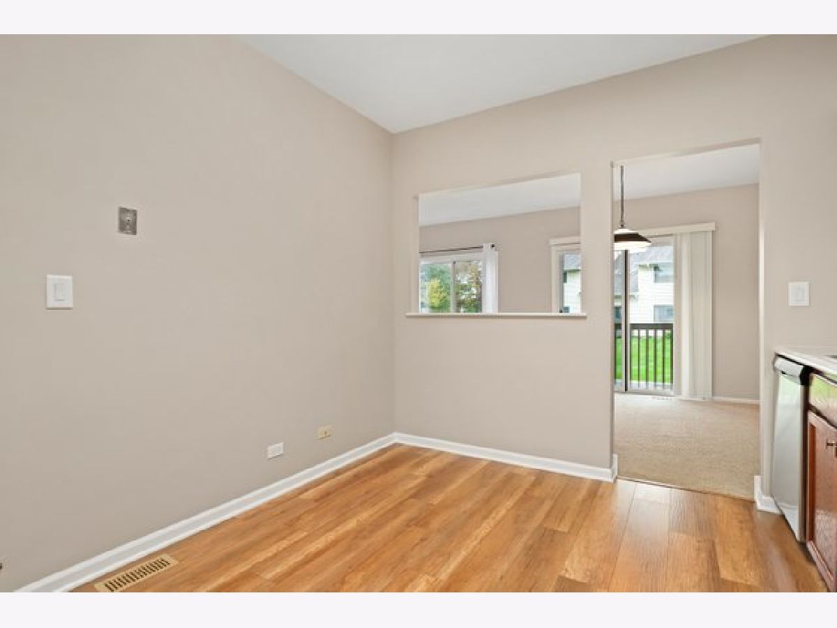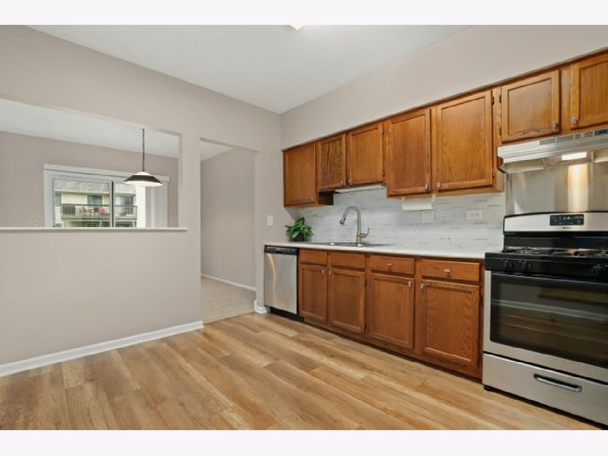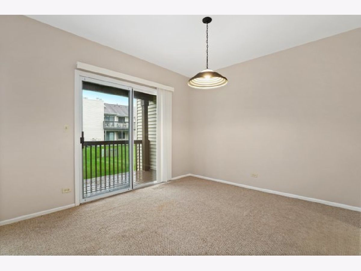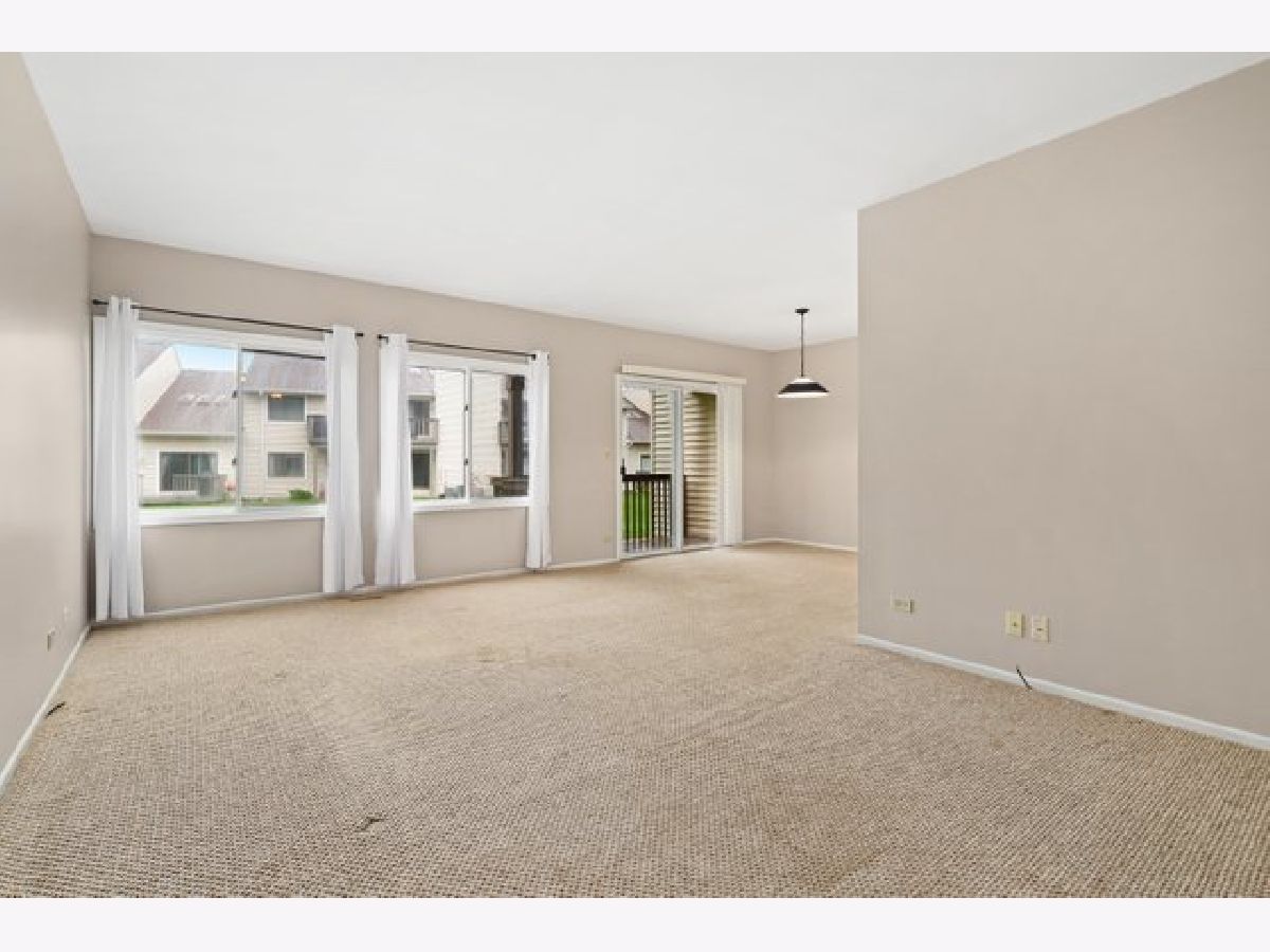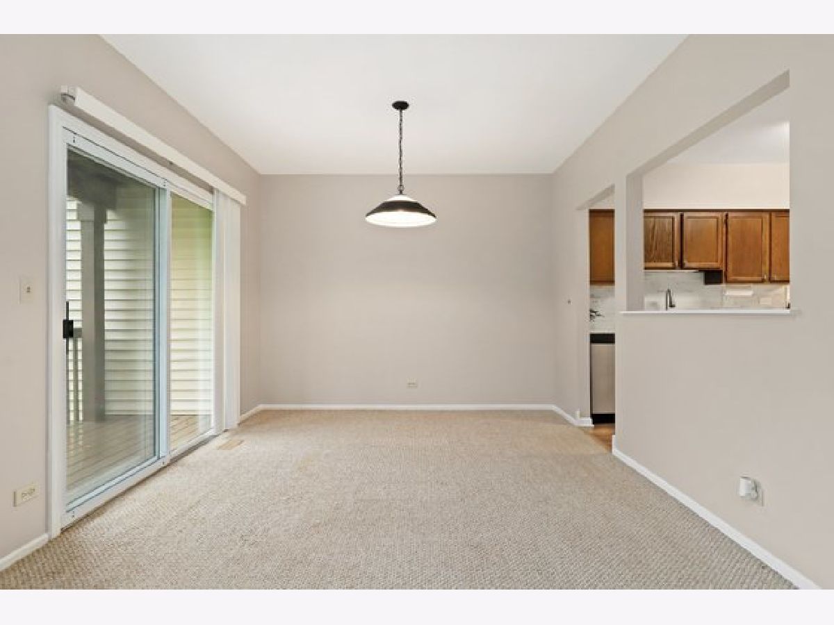 Don't miss this beautifully updated and move in ready 2 bed/1 bath 1st floor coach home in desirable Hidden Lake Village. This home features an updated eat-in kitchen with stainless steel appliances, NEW dishwasher, NEW refrigerator, NEW counters and backsplash. The sunny living room is open to the formal dining area(or office space) and has sliders opening onto a covered deck-perfect for enjoying the outdoors. The primary bedroom includes a spacious walk in closet. Bathroom was completely renovated in 2021. Laundry room with full size washer & dryer. 1 car garage with space for additional cars in the driveway. Association fee includes pool, water, scavenger, lawn maintenance and snow removal. Award winning D102 elementary/middle school and Adlai E. Stevenson High School.