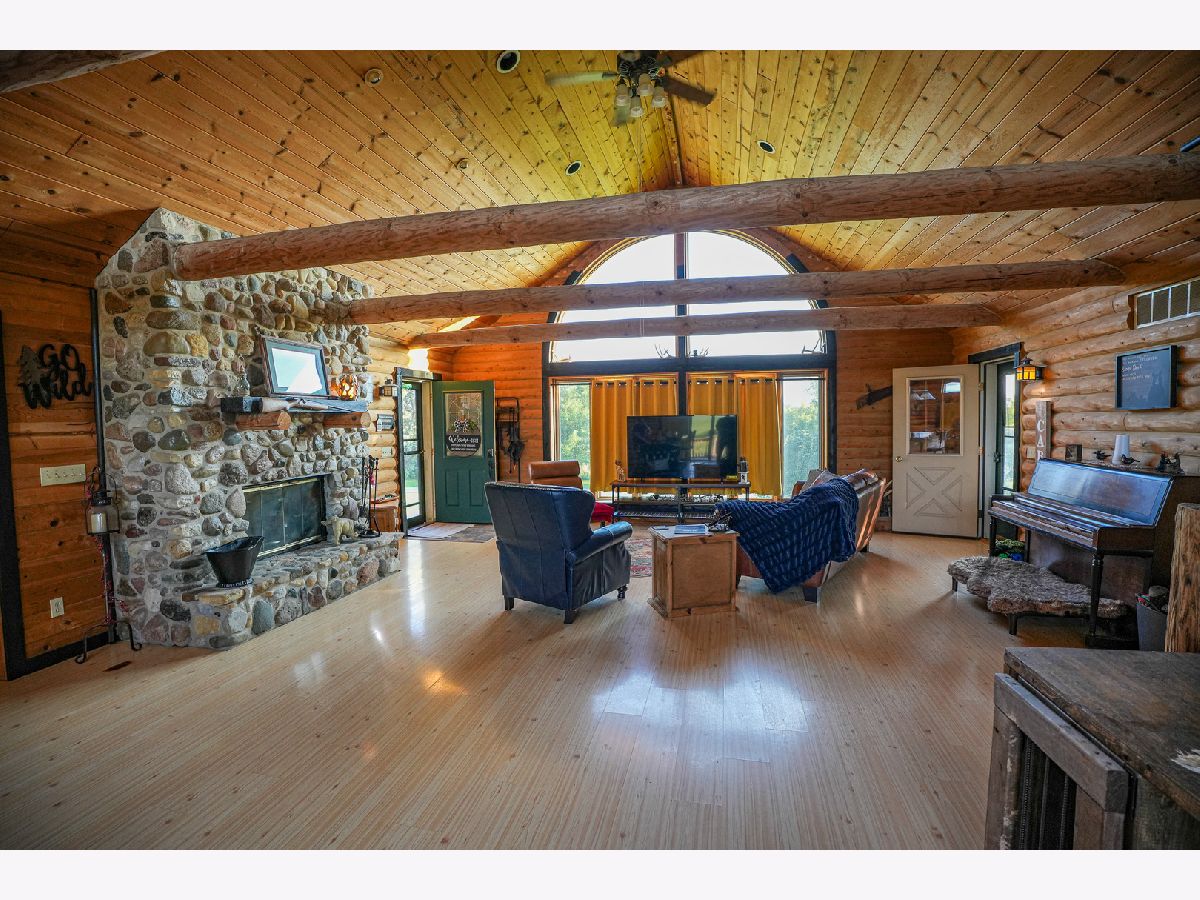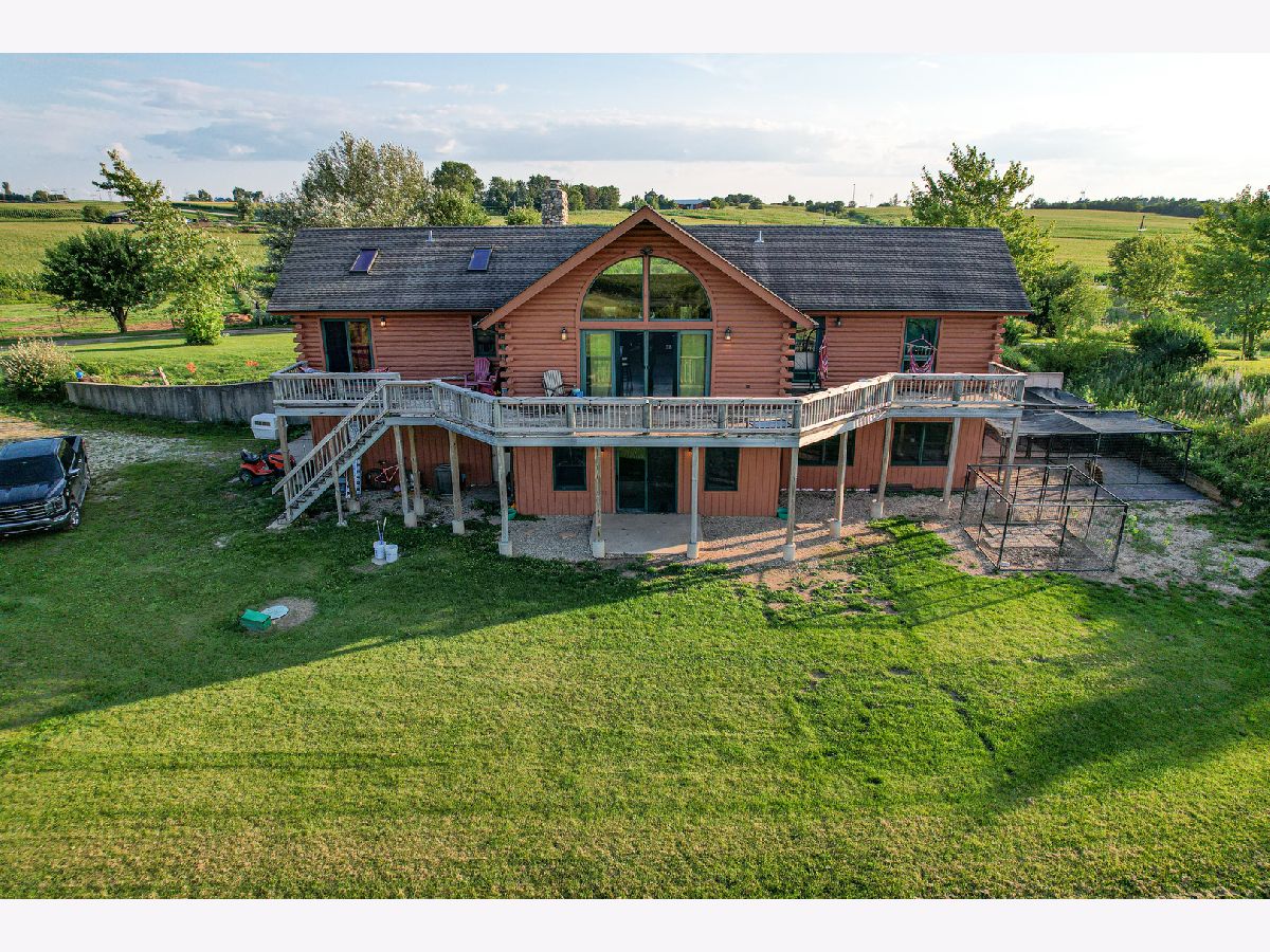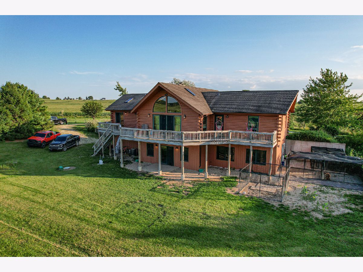 Situated amongst the rolling hills and timber sits this amazing log sided home. The house sits up on the hill providing beautiful views in every direction. Off the front of the home you have 2 decks as well as a large deck off the rear of the home. Entering the home you have a nice open flow from the family room into the kitchen and dining area. Vaulted ceilings with large windows let in a bunch of natural light. The rocks and stones in the fireplace came from this property when they were excavating the basement. The fireplace is double sided and shares the ambience with the family room as well as the master bedroom. The kitchen has an island with bar seating, lots of counter space, and cabinets. Brand new appliances in 2022. The kitchen is open to the main dining area. On one wing of the house you have a large master bedroom with its own full bathroom as well as a large closet. Slider off of the master bedroom takes you out to the rear deck. The other side of the house has 2 good sized bedrooms and a full bathroom for these rooms to share. 1st floor laundry. The lower level has a ton of potential with a walkout door, large windows, and tall ceilings. The main room has potential for another family room or game room. Shop area that could be converted into a gun safe. In floor heat that runs throughout the basement but continues to the exterior patio area that currently has kennels as well as the garage area. The garage has a floor drain and water so that you can wash your vehicles inside. Generator hook up that is located in the garage. The lower level has a full bathroom on this level as well. The hallway with the bathroom also gives you access to the second shop room that has a sink and leads to the outside patio area. The beauty and possibilities don't end when you leave the home. This property is its own oasis with fruit trees, open fields that could be converted into pasture or remain natural for the wildlife that visits. Area in the rear of the property that would be a perfect spot for a pond. Partially fenced perimeter with paddocks for livestock. 36x45 Morton with electric. Quick access to I-39.