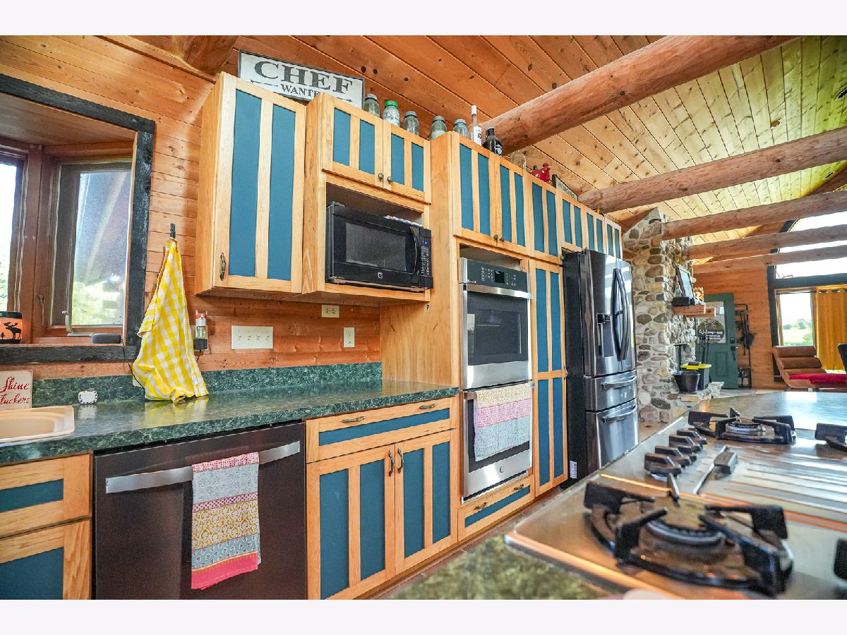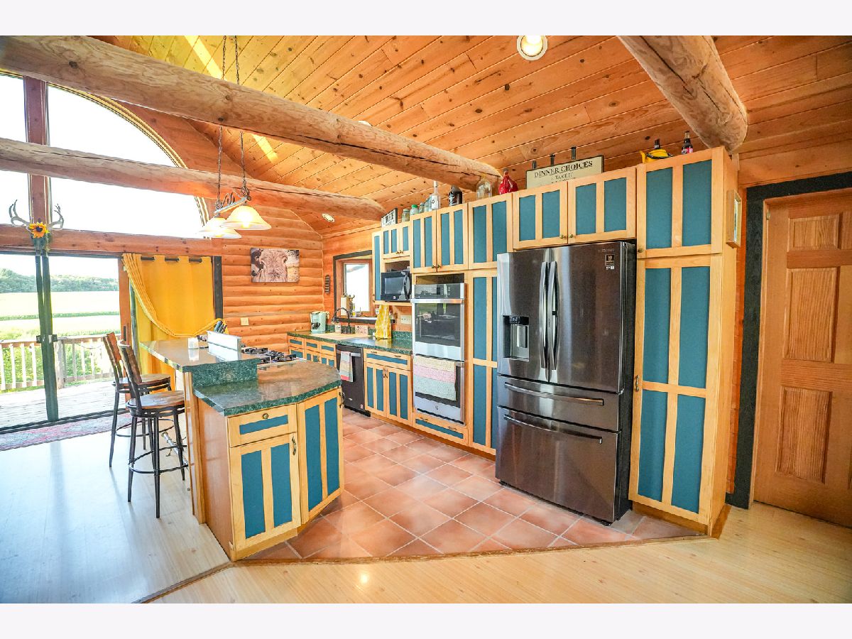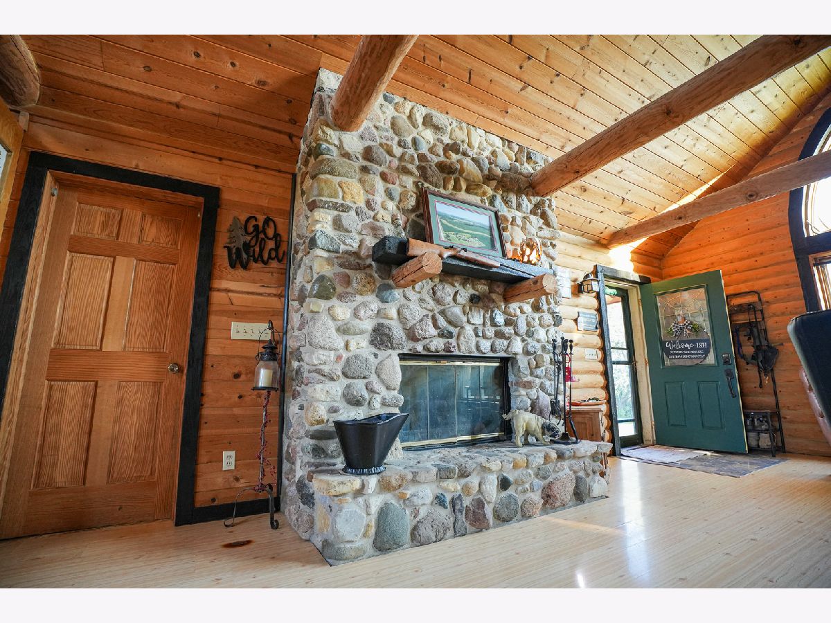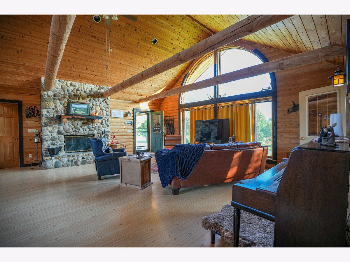 Situated amongst the rolling hills and timber sits this amazing log sided home. The house sits up on the hill providing beautiful views in every direction. Off the front of the home you have 2 decks as well as a large deck off the rear of the home. Entering the home you have a nice open flow from the family room into the kitchen and dining area. Vaulted ceilings with large windows let in a bunch of natural light. The rocks and stones in the fireplace came from this property when they were excavating the basement. The fireplace is double sided and shares the ambience with the family room as well as the master bedroom. The kitchen has an island with bar seating, lots of counter space, and cabinets. Brand new appliances in 2022. The kitchen is open to the main dining area. On one wing of the house you have a large master bedroom with its own full bathroom as well as a large closet. Slider off of the master bedroom takes you out to the rear deck. The other side of the house has 2 good sized bedrooms and a full bathroom for these rooms to share. 1st floor laundry. The lower level has a ton of potential with a walkout door, large windows, and tall ceilings. The main room has potential for another family room or game room. Shop area that could be converted into a gun safe. In floor heat that runs throughout the basement but continues to the exterior patio area that currently has kennels as well as the garage area. The garage has a floor drain and water so that you can wash your vehicles inside. Generator hook up that is located in the garage. The lower level has a full bathroom on this level as well. The hallway with the bathroom also gives you access to the second shop room that has a sink and leads to the outside patio area. The beauty and possibilities don't end when you leave the home. This property is its own oasis with fruit trees, open fields that could be converted into pasture or remain natural for the wildlife that visits. Area in the rear of the property that would be a perfect spot for a pond. Partially fenced perimeter with paddocks for livestock. 36x45 Morton with electric. Quick access to I-39.