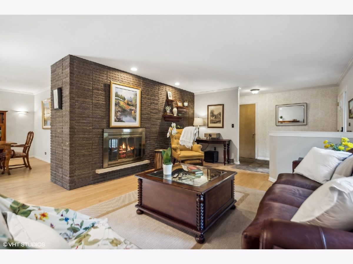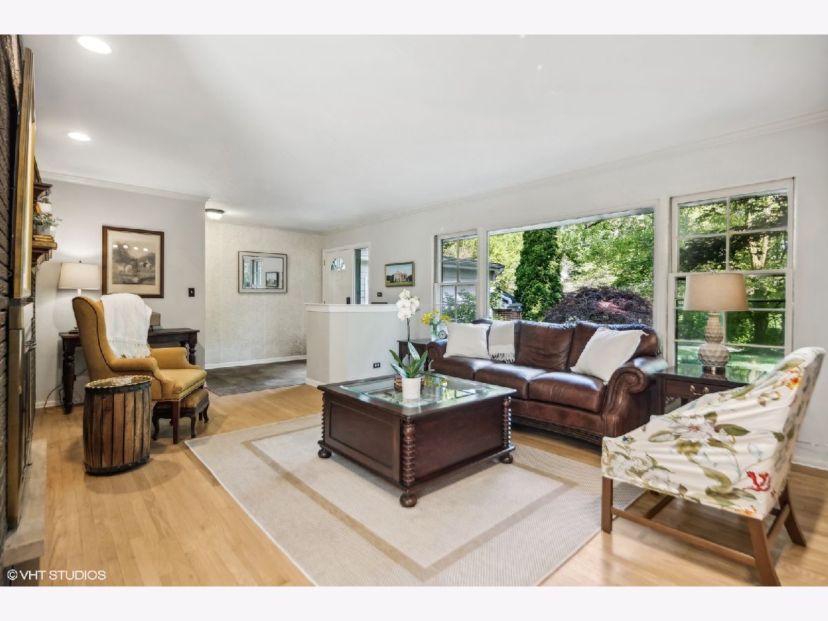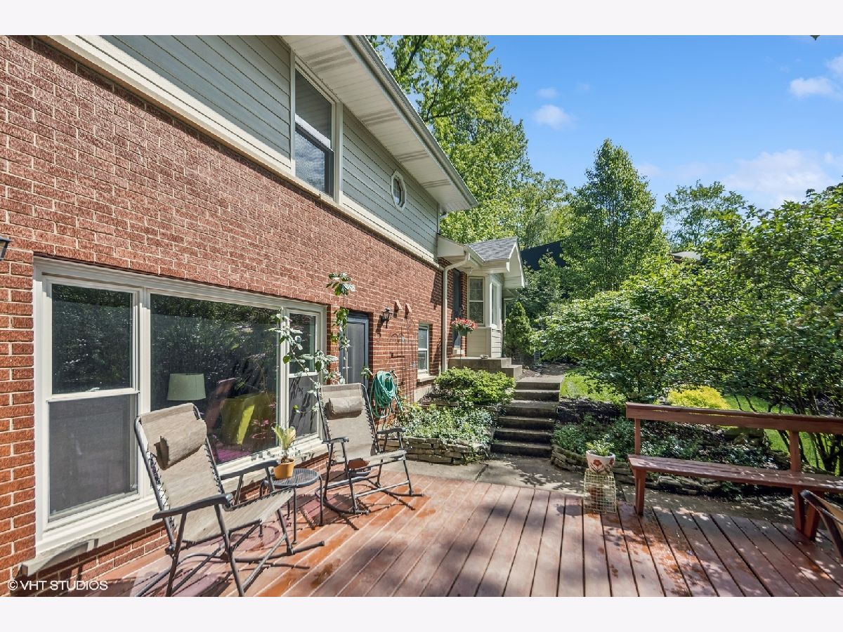 Discover serenity and convenience in this home nestled in this magical location within walking distance to downtown Glen Ellyn. On a sprawling close to a half-acre wooded lot. Inside you will find a bright and airy living space, where a pass-through fireplace seamlessly connects the spacious living room to the updated gourmet kitchen, perfect for casual gatherings plus an adjacent dining room with a bay window for larger gatherings. The lower level offers a cozy family room, complete with a fireplace flanked by bookcases and a secluded office area. Upstairs includes 3 bedrooms, the master suite with an updated bath, and two additional bedrooms. Plus the basement boasts an additional room that could be used as a bedroom, office or workout area, play areas, plus a rec room, and ample storage, ensuring there's room for every need or occasion. The deck off the family room overlooks the fenced in yard. This home offers the best of both worlds-a secluded location just moments away from the heart of Glen Ellyn.