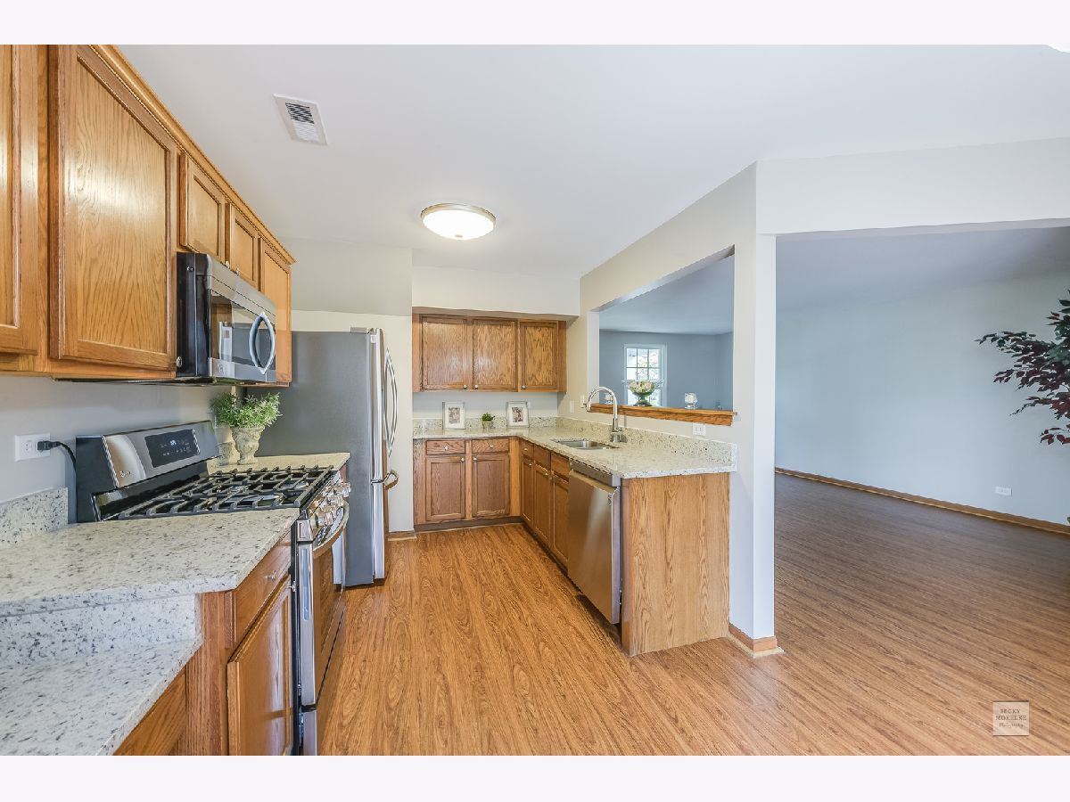 Welcome Home is written all over this one! Bright & beautiful 2 story home with inviting covered front porch, is ready for new owners. Featuring fresh paint & all new flooring. Spacious living room for all of your entertaining needs. Dining area opens to large kitchen with all brand new LG Stainless Steel appliances & granite counter tops, planning desk, large pantry as well as lots of cabinets & counter space for all of your cooking & baking needs. 3 generous sized bedrooms & full bath on the 2nd level. Master bedroom has vaulted ceiling, walk in closet & access to bath. Attached 2 car garage. Buyer has full peace of mind with newer AC, Furnace & Water Heater, brand new Windows, Roof & Siding! Prime location within walking distance to the Elementary school, Onsite parks & ponds. Just Minutes to I88, Metra Train Station, shopping & dining! Fully detached single family home. Low HOA fees $83 month. Owner is licensed Realtor in Illinois