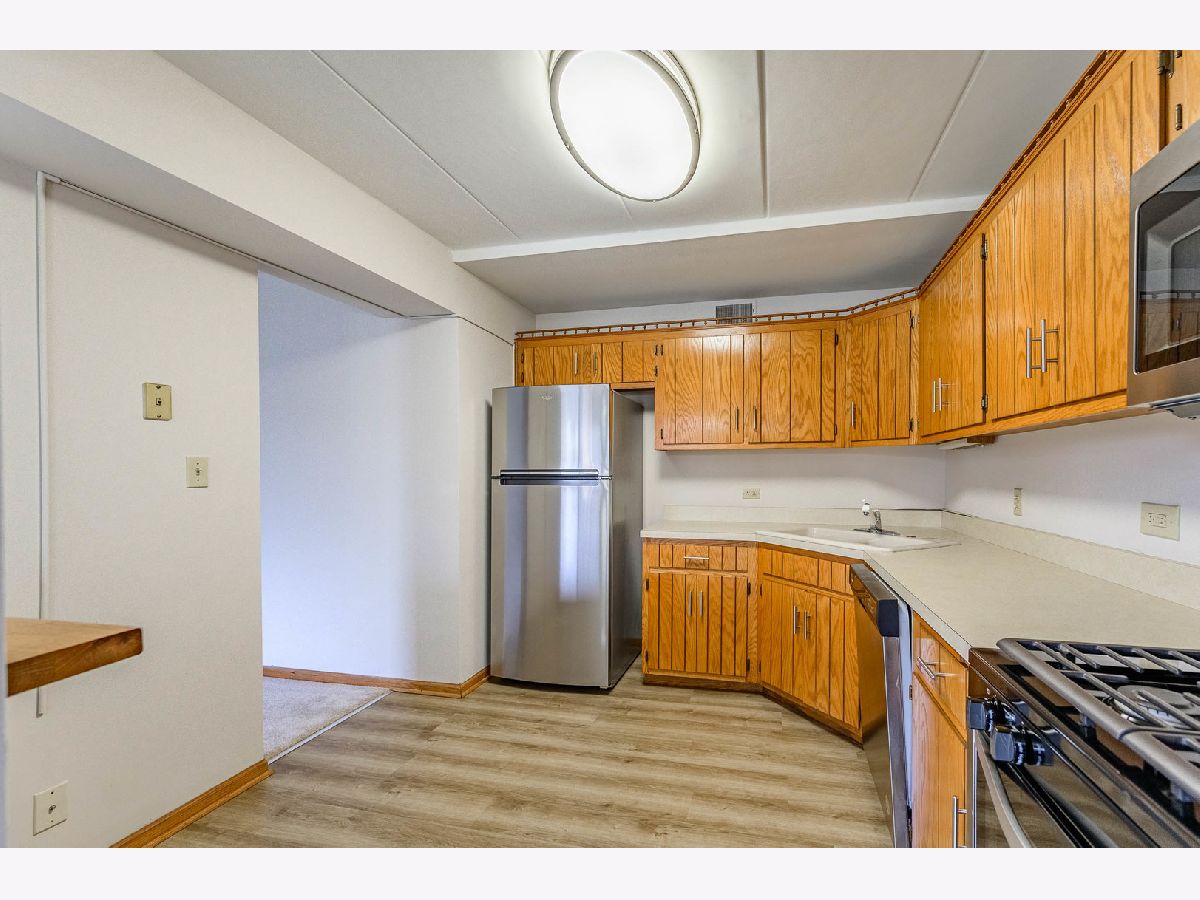 Updated Condo in Chicago Ridge! New LVT flooring installed, carpet and freshly painted throughout! Kitchen now with all stainless- steel appliances! Open and spacious layout with private balcony and Includes 1 car garage parking space! Convenient location- Close to all accommodations including schools, parks, shops, restaurants and more!