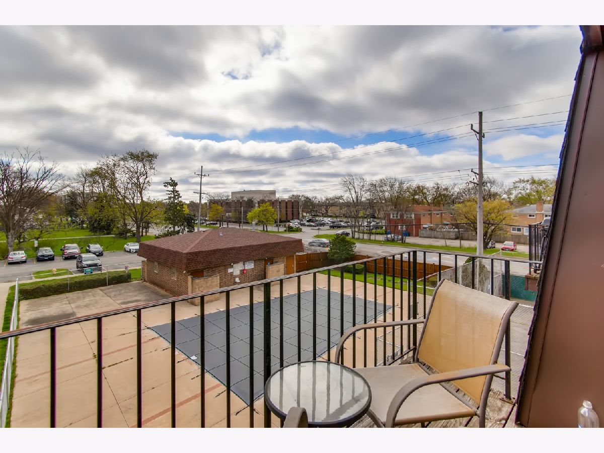 The most desirable location in La Casa Bianco by the swimming pool and playground. Beautiful top-floor condo nicely maintained with private balcony and courtyard view. Kitchen with oak cabinets and brand new refrigerator, brand new gorgeous bathroom, Walk-in closet, new high-quality Pergo flooring, freshly painted, New A/C, new balcony sliding doors leading to the balcony and windows. Plenty of closets and storage space in the unit. One assigned parking spot(156)and plenty of guest spots are available by the complex. Convenient location, close to I-294, Golf Mill Mall, stores. Noting to do but move in and enjoy.