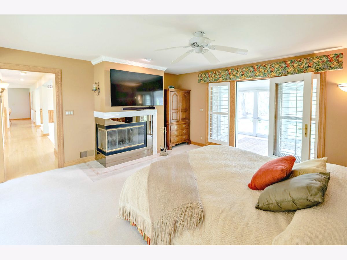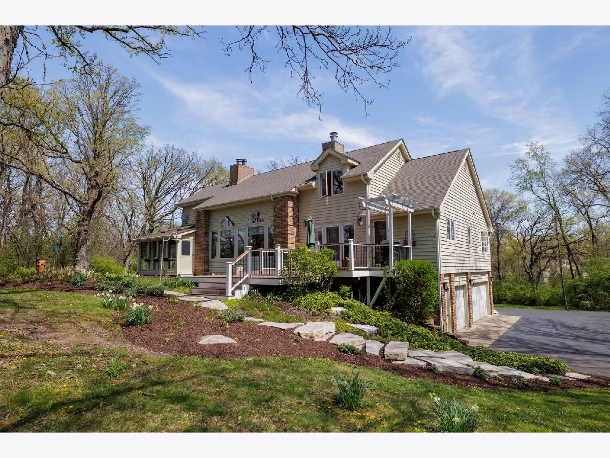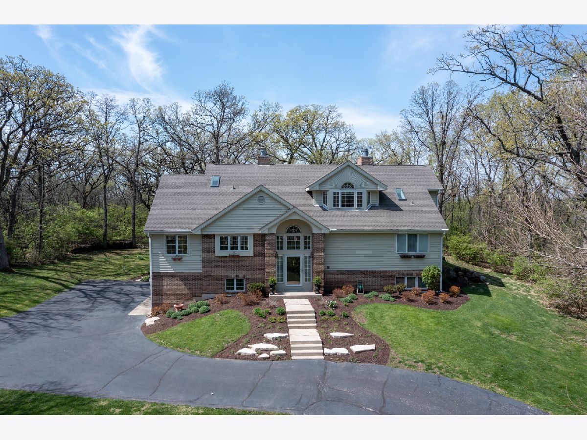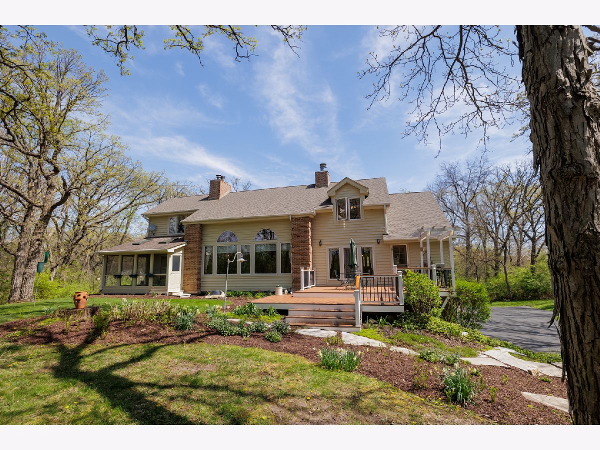 2.4 acres of wooded, secluded wonderland with the benefit of neighbors when you want them! This cul-de-sac beauty features a hillside setting and peaceful surroundings. The MAIN LEVEL primary SUITE features a fireplace, large bathroom with a jetted soaker tub and walk-in shower. It also boasts access to the SCREENED porch to enjoy the outdoors year-round. Phenomenal GREAT ROOM will not disappoint with CATHEDRAL ceilings, see-through Fireplace, uplighting and gorgeous views of the outdoors. Cook's Kitchen with Breakfast nook, Large island and breakfast bar, pantry and windows galore. Kitchen features Hickory cabinets, Corian counters, additional prep sink & cabinet lighting. Entertain all day & night in the Dining Room - generous in size and shares the fireplace with the Great Room. Whether you work from home or not, the thoughtful 2nd Floor DEN features a unique view from all angles & built-ins to organize your life. Lower level Family room has a cozy wood stove and is the perfect location for the projection & movie watching! Hi-efficiency Furnaces, Central Air & Roof are all 8 years old, adding peace of mind to the lucky Buyer. Trex decking is perfect for entertaining and so low maintenance. This home was CUSTOM Built with 2x6 construction and the entire home built with electrical conduit. Built and crafted to last, you can feel how solid this home is as you walk through. An IDEAL location, just outside of Woodstock, this home also sits on the Bull Valley Riding Trail, in case horses are your hobby! The neighborhood also features a pond and trail area for gathering & nature enthusiasm, as well as close proximity to Conservation sites!