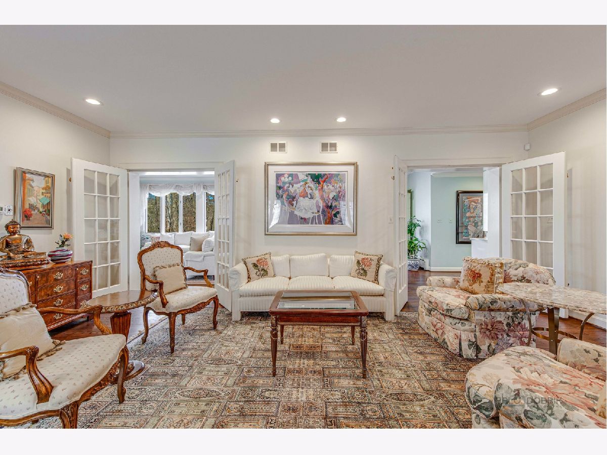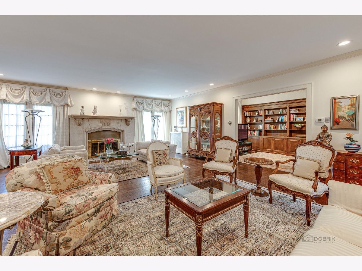 This fabulous home is located on a quiet cul-de-sac in the East Ravinia District on nearly 1/2 acre. Over $300,000 in updates were completed by the current owner over the last 2 years. It has been meticulously maintained and beautifully updated both inside and out. Featuring 6 bedrooms, 5 full and one-half baths, high ceilings, gleaming hardwood floors, generous room sizes, custom millwork and abundant natural light throughout, this recently painted stucco home offers both charm and sophistication. The formal living room features an intricately carved limestone wood burning fireplace, and French doors leading to the sun-drenched family room and a molded entry to the study with built-in bookcases. The Family Room offers tranquil views of the shallow Ravine and Koi Pond, a marble surround fireplace and a built-in wet bar. The beautifully updated kitchen boasts ample storage and a large breakfast room. An elegant staircase leads to the 2nd floor with a spacious second floor foyer/loft. The Primary Suite contains two walk-in closets, a dressing area and a luxurious updated bath. Four additional large bedrooms with spacious closets, three full baths (2 just updated), and an office or sitting room with a walkout roof deck, complete the second floor. The full, walkout basement features a bedroom, full bath, recreation room, plenty of storage space and its own kitchen. The beautifully landscaped yard features a stream feeding the koi pond, pergola, tiered bluestone patio, and lovely plantings. This home serves as both a place to entertain small or large groups and an oasis for peaceful relaxation.