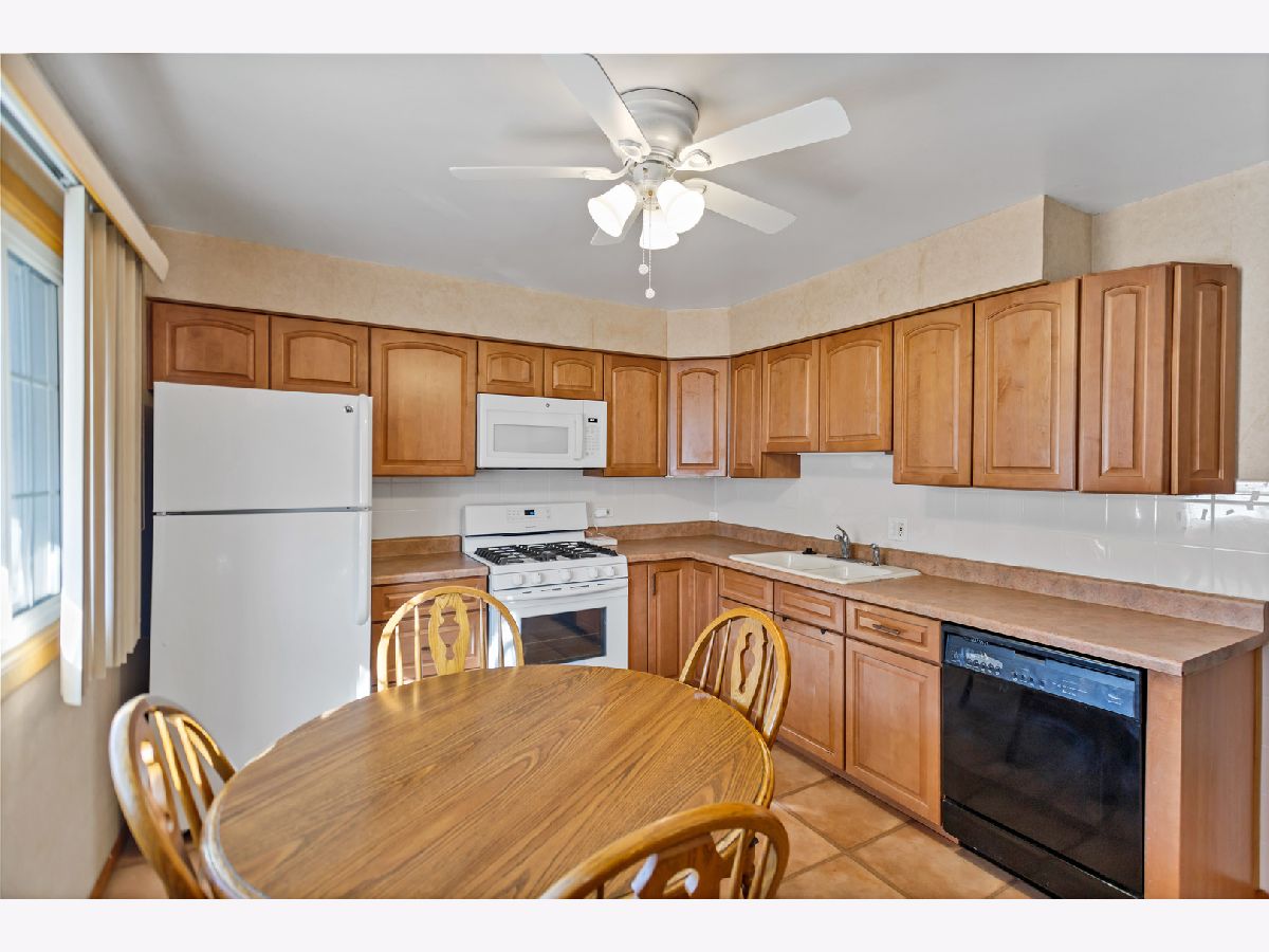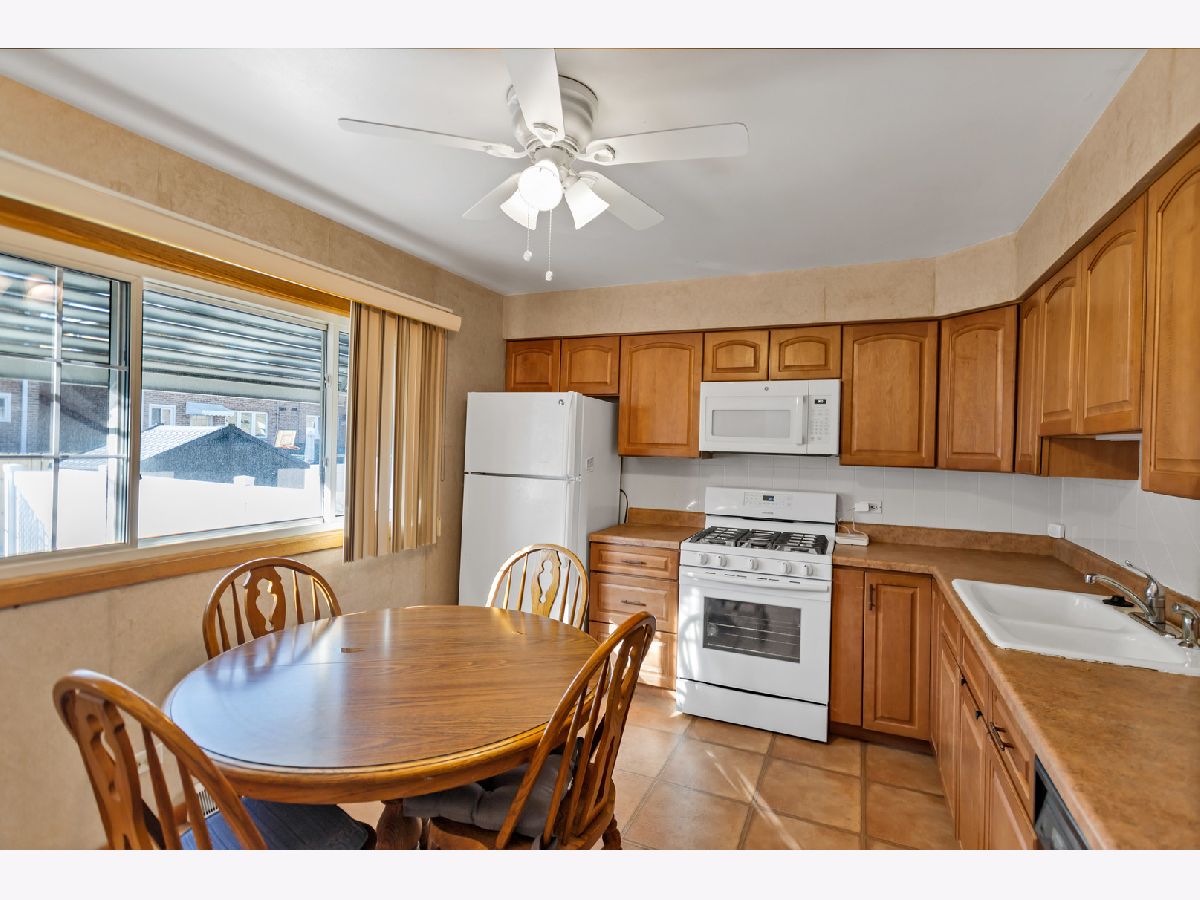 Welcome home to this charming two-story, three-bedroom, one-and-a-half-bathroom residence that perfectly blends comfort and convenience. Step into the bright and inviting family room, where a beautiful bay window fills the space with natural light. The adjacent kitchen offers plenty of table space, a ceiling fan, and a double-basin sink, making it the perfect spot for everyday meals and gatherings. A convenient half bathroom completes the first floor. Upstairs, you'll find three well-sized bedrooms, each with its own dedicated closet. The primary bedroom features a spacious walk-in closet, while the full hallway bathroom serves the second level. The basement provides even more living space with a cozy recreation room, a laundry room with a utility sink, and a separate mechanical room. Outside, enjoy the fenced-in yard with a concrete patio, perfect for outdoor entertaining. The backyard also includes a storage shed for added convenience. Plenty of street parking is available nearby. Conveniently located near O'Hare International Airport, parks, shopping, restaurants, and easy access to I-294, this home offers the perfect combination of charm and accessibility!
