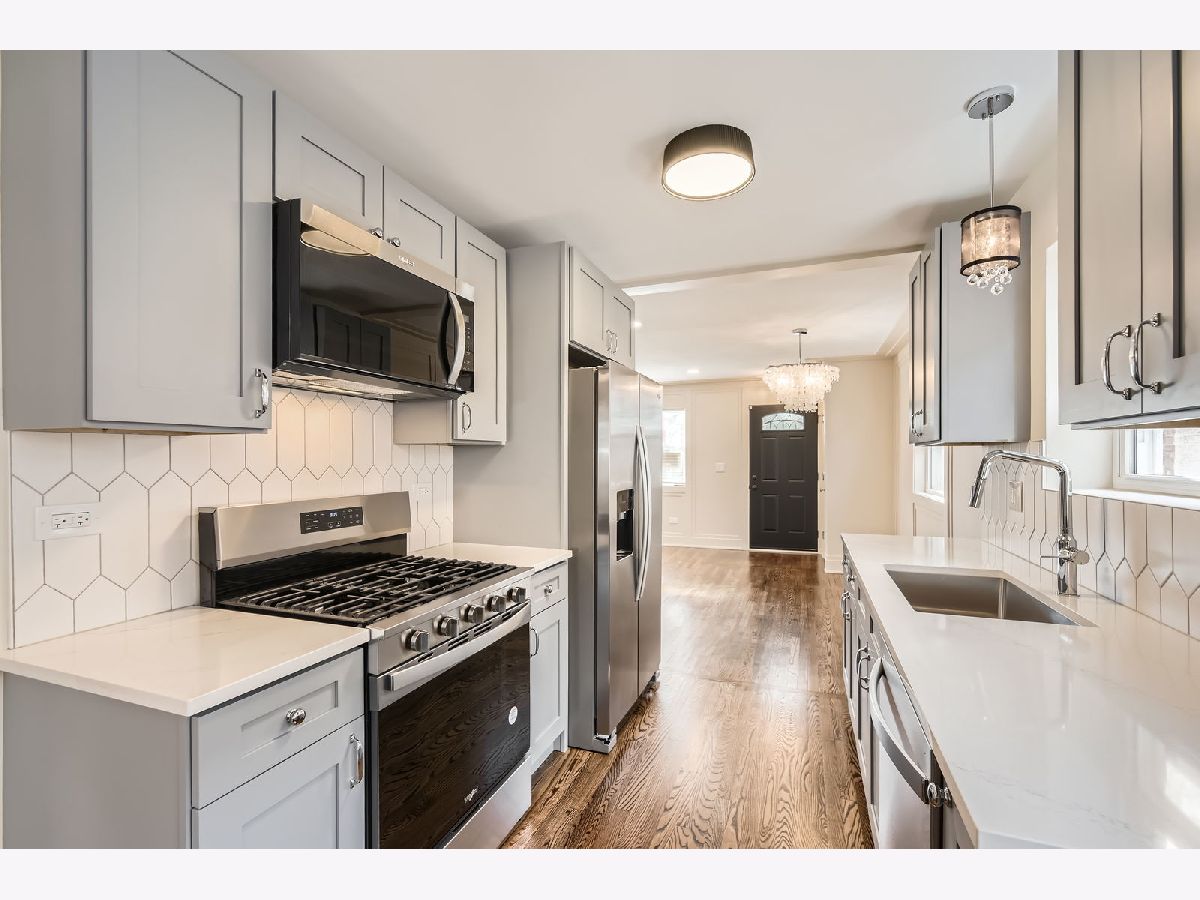 Beautifully Remodeled Ranch in the Heart of Chicago Welcome to this stunning, fully renovated ranch nestled on a quiet, tree-lined street in the heart of Chicago - right across from a local school. This move-in-ready gem features an open-concept layout with a bright, sun-filled living room that seamlessly flows into a modern kitchen, complete with quartz countertops, stainless steel appliances, and ample cabinet space. Enjoy the warmth and ambiance of two electric fireplaces, and appreciate the elegance of hardwood floors throughout the main level. Every detail has been thoughtfully upgraded, including brand-new windows, doors, fresh paint, updated electrical and plumbing systems, new HVAC, water heater, and sump pump. Step outside to your own private backyard oasis, featuring a covered patio area perfect for year-round entertaining, plus a 2-car garage for added convenience. Located near parks, shopping, and public transportation, this home combines comfort, style, and unbeatable location. Don't miss your opportunity to make this beautifully updated home yours-schedule your showing today!