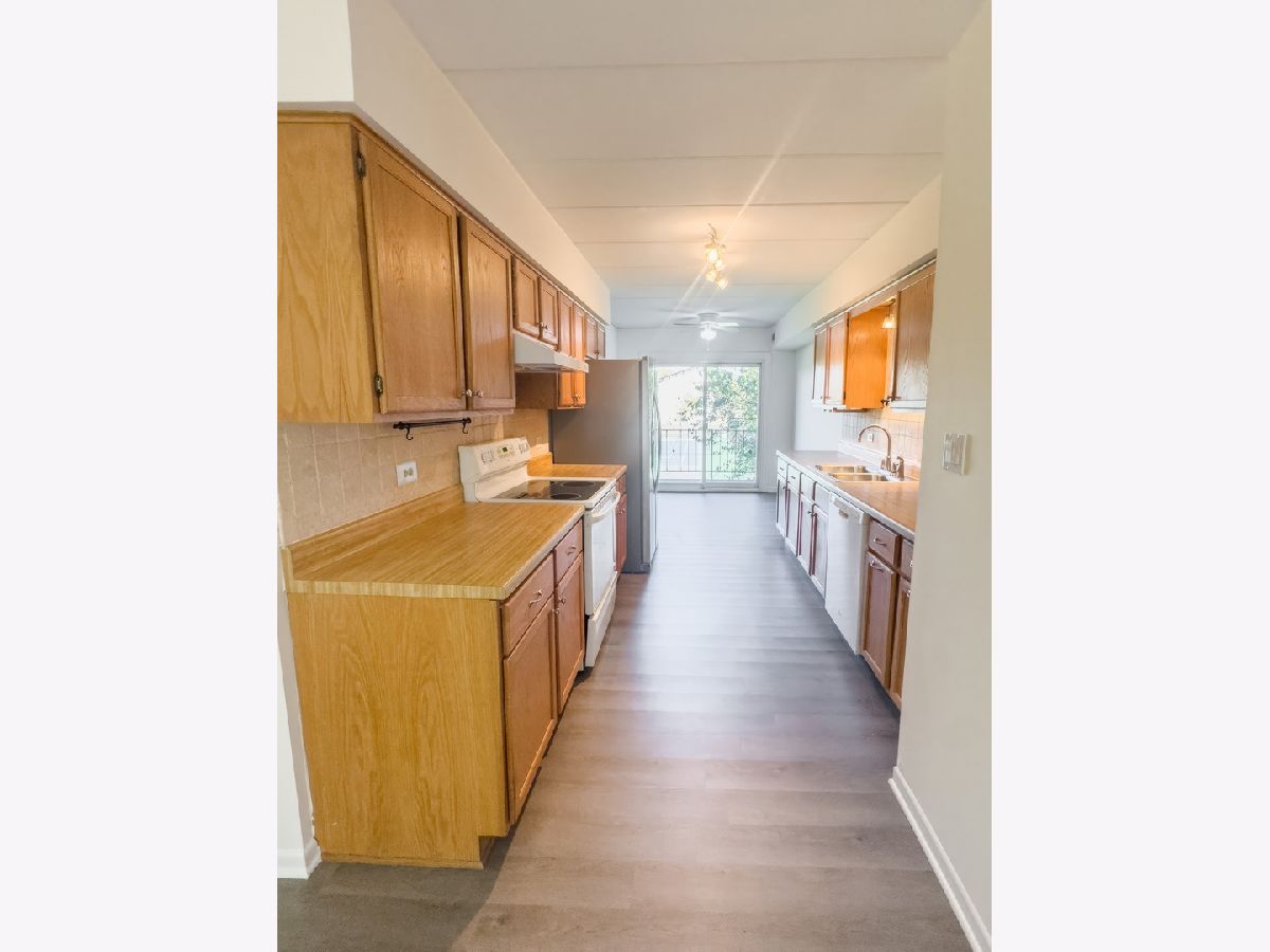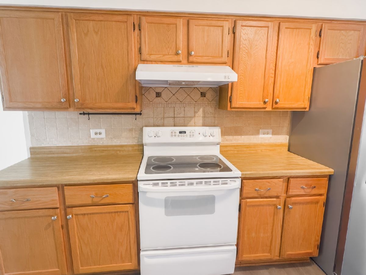 Step into your new spacious condo, near I-80 in Orland Park's school district. Spacious 2 bedroom and 2 bathroom space. Close to tennis & basketball courts, or relax with your fishing pole outside your door! Beautiful neutral gray laminate flooring throughout. The family room features sliding glass door that allows tons of natural sunlight to pour in and leads to private patio area. The huge galley style kitchen is complimented with beautiful title backsplash and newer appliances. Unit also conveniently has in-unit washer & dryer. Tons of storage, with basement storage unit! Within walking distance to Centennial Pool. Get ready to start packing after you see this beauty. Ready for a homeowner or investor.