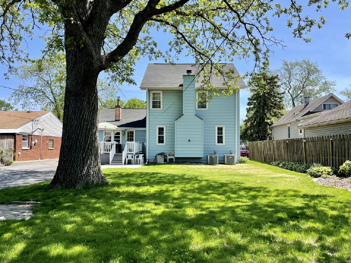 Wonderful Southwest Evergreen Park farmhouse on large 61 x 125 landscaped lot and beautiful tree-lined street with many beautiful homes as well as a new construction next door! The wonderful wraparound front porch welcomes you home. Much planning went into this home's addition and the design elements within the home. Inside you'll find a great floorplan: The main level includes a formal living, dining (which can be opened to the kitchen) and a large main level family room with wood-burning fireplace. Mudroom leads to the backyard deck. This is a great home for entertaining - your guests will enjoy the gathering in the outdoor spaces as much as visiting indoors! Up the front staircase is a bonus room which is perfect for work-from-home scenarios, a home-school space, or a great get away for your teenagers!!! Upstairs you will find a larger master suite with walk in closet, shared master bath along with another large bedroom with walk in closet. The basement is unfinished, DRY and perfect for storage. The laundry room is in the basement along with an additional storage room/workshop. Head to the huge backyard, it's fenced with a deck and a detached 2.5-car garage. Location-Location-Location....right down the street from Circle Park and walkable to so many activities. Maintained extremely well, dual forced air/central air units. Original building plans has potential to expand into the attic to create a loft space in the master bedroom.