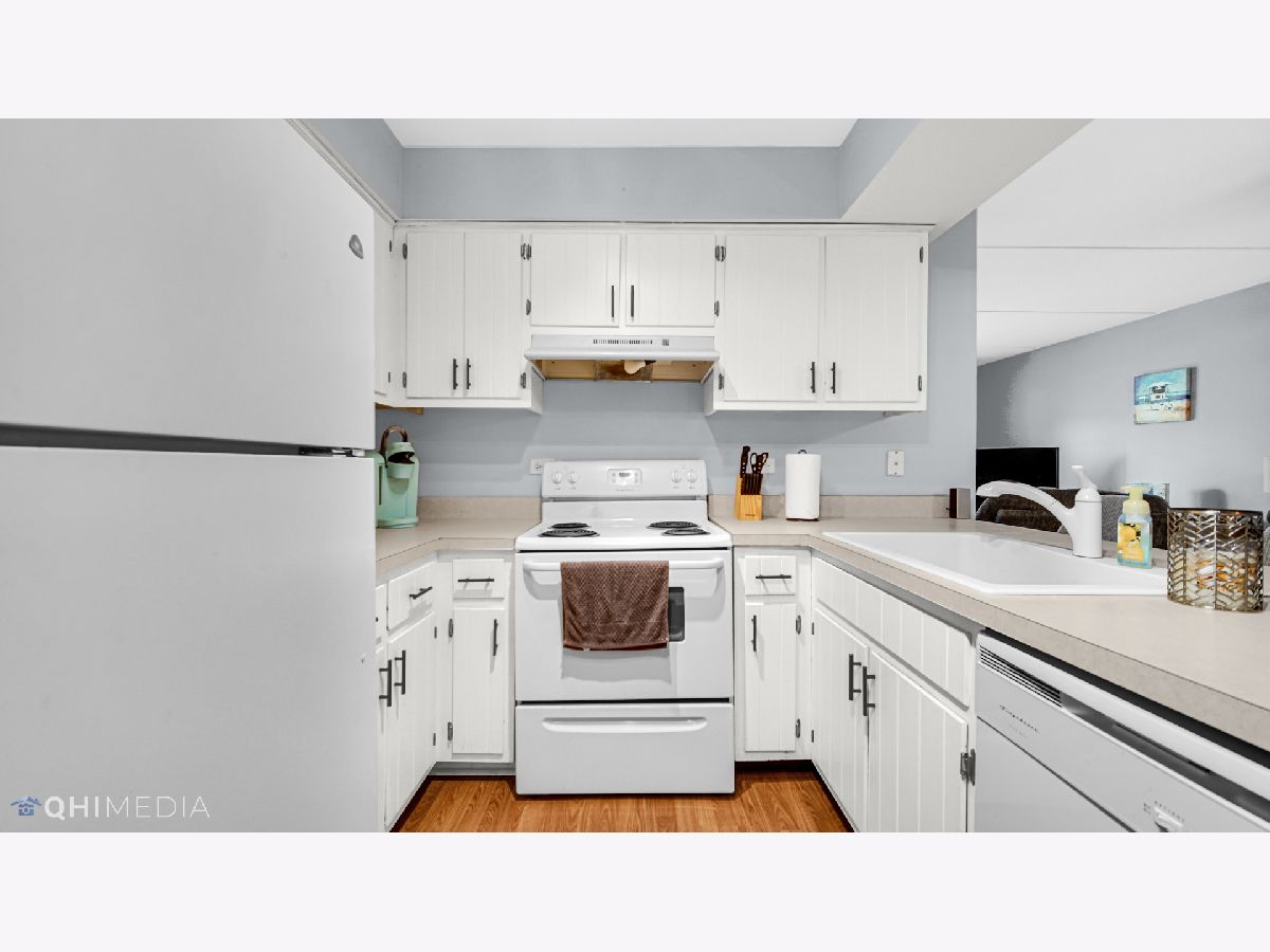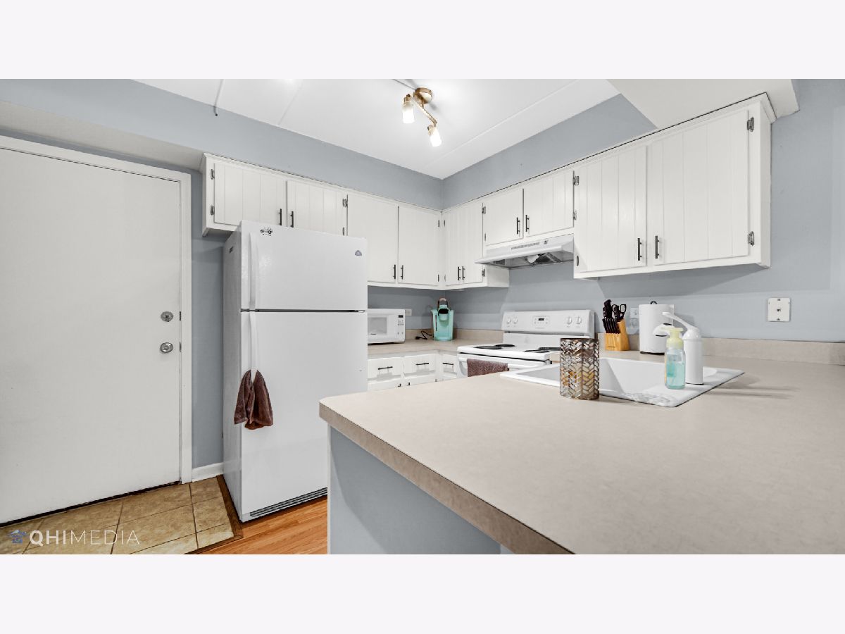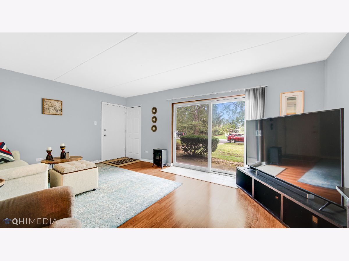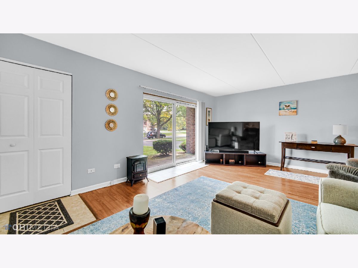 Much desired first floor condo is sparkling clean and in move in condition. Updated with beautiful Pergo flooring throughout living room and kitchen. The kitchen has lots of cabinetry for storage and a large island. The dining area has plenty of space for a large table. The updated bathroom includes newer vanity, cabinets, ceramic tile and paint. This condo also has in unit laundry and a one car garage. The location is absolutely perfect just 2 blocks from Centennial park and across the street from Treetop Park which has bike trails and tennis courts. Close to shopping, restaurants, entertainment, the Metra and easy access to expressways. All electric unit.