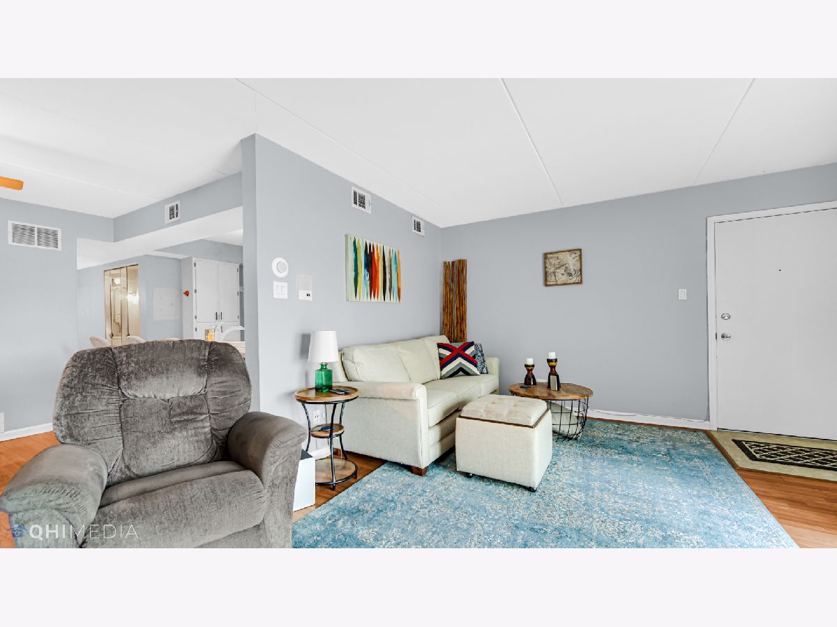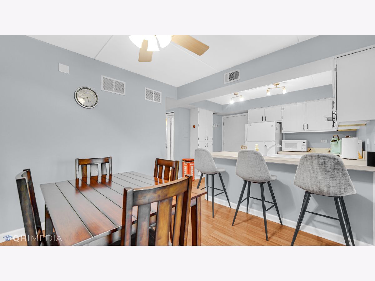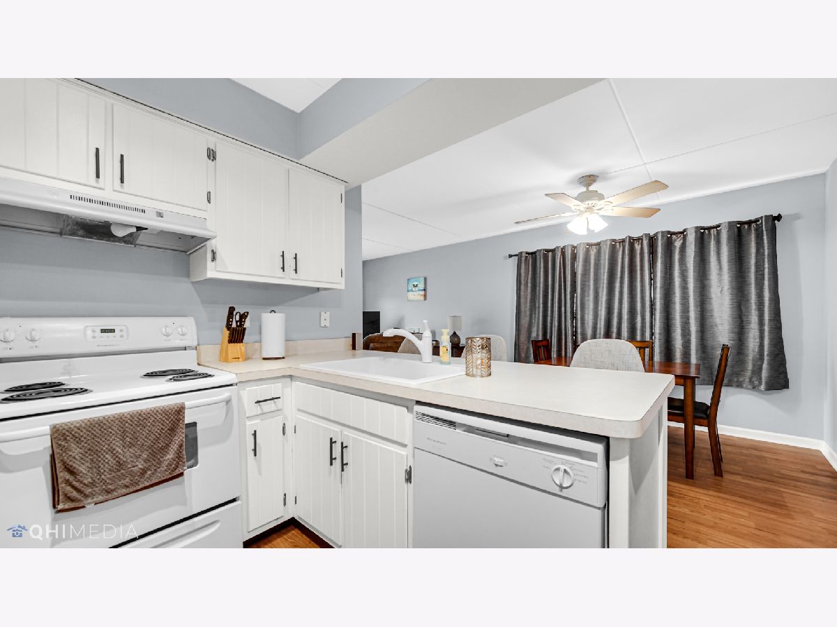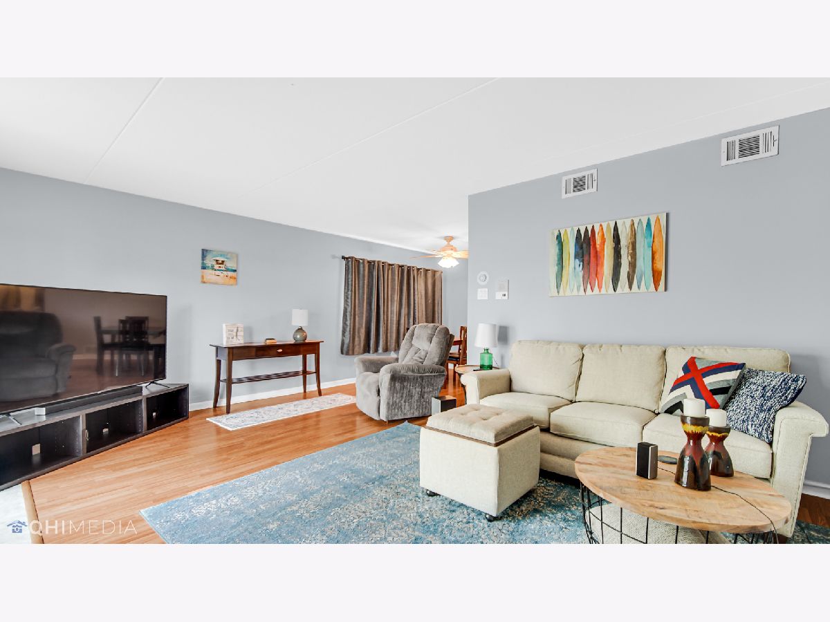 Much desired first floor condo is sparkling clean and in move in condition. Updated with beautiful Pergo flooring throughout living room and kitchen. The kitchen has lots of cabinetry for storage and a large island. The dining area has plenty of space for a large table. The updated bathroom includes newer vanity, cabinets, ceramic tile and paint. This condo also has in unit laundry and a one car garage. The location is absolutely perfect just 2 blocks from Centennial park and across the street from Treetop Park which has bike trails and tennis courts. Close to shopping, restaurants, entertainment, the Metra and easy access to expressways. All electric unit.