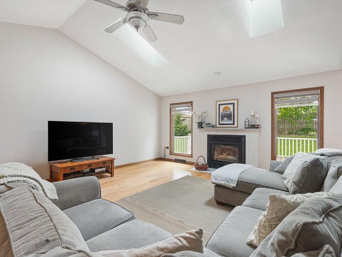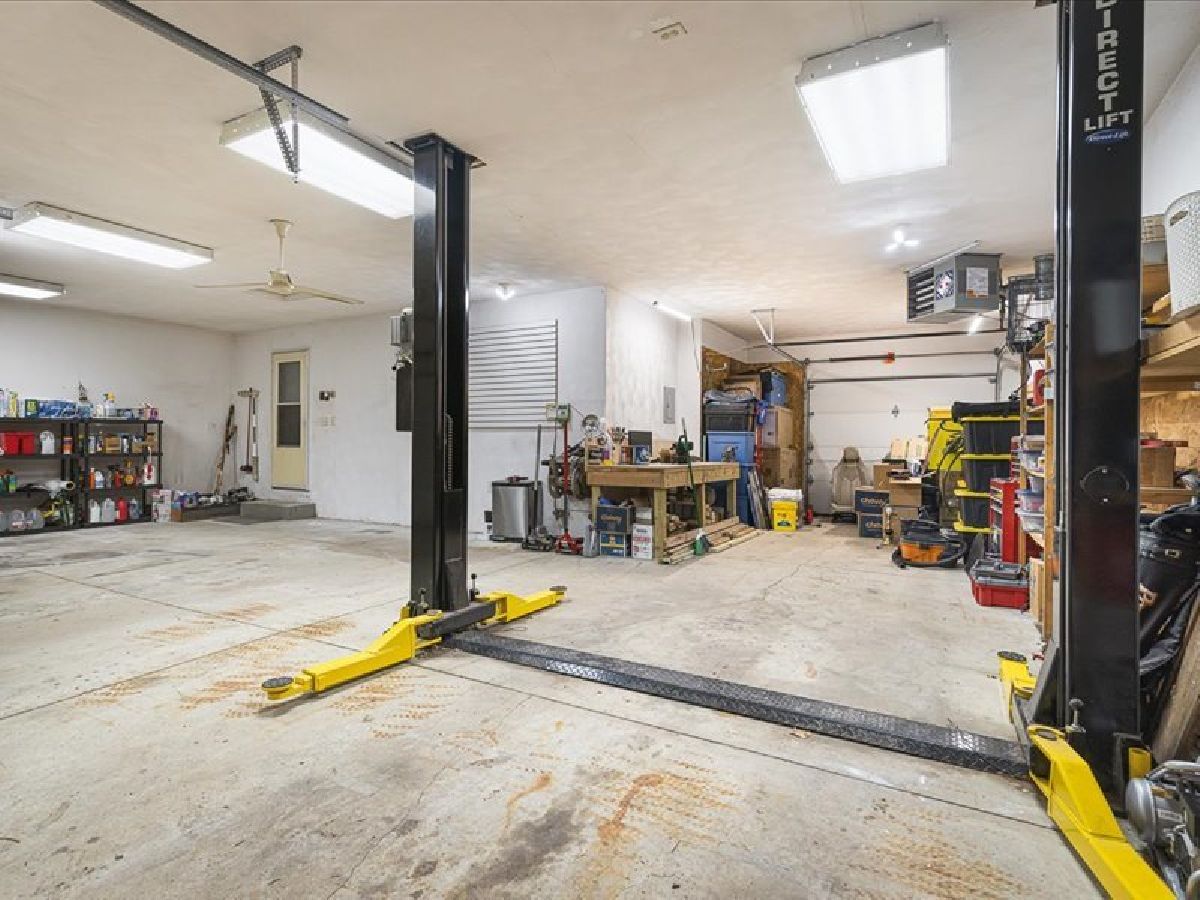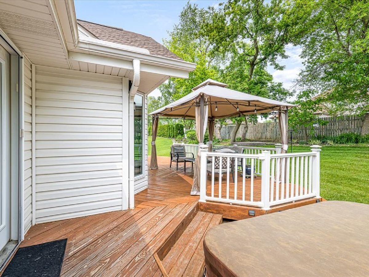 Stunning Roscoe Ranch! Located in a highly sought-after Roscoe neighborhood, this beautifully upgraded home offers over 2,000 sq ft of finished living space with a desirable split-bedroom layout. The flex room is perfect for a home office, craft room, or formal dining. Car enthusiasts will love the extra-deep 4.5-car garage equipped with a professional hydraulic car lift, wired for 220! The full basement is framed and plumbed for a third bath, offers fourth bedroom/office and ready to expand. The kitchen is a showstopper with marble countertops, custom soft-close cabinets, gas stove, beverage fridge, built-in Keurig in refrigerator, subway tile backsplash, and stylish custom lighting over the island and dining area. Red oak flooring (2021) and fresh paint throughout elevate the interior. The spacious primary suite features deck access to a private hot tub, a walk-in closet, and a spa-like bath with jetted tub and skylight. Enjoy cozy evenings by the gas fireplace in the great room. Step outside to a lushly landscaped yard with new hydrangeas, lavender, and butterfly bushes, a large deck with pergola, and a fire pit/flex space perfect for entertaining. Additional highlights include first-floor laundry, roof and skylights new in 2020. This one is anything but cookie cutter-schedule your showing today!