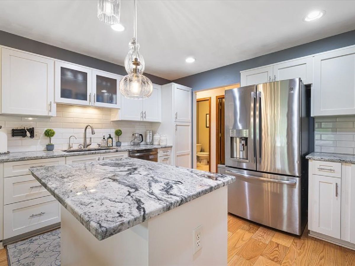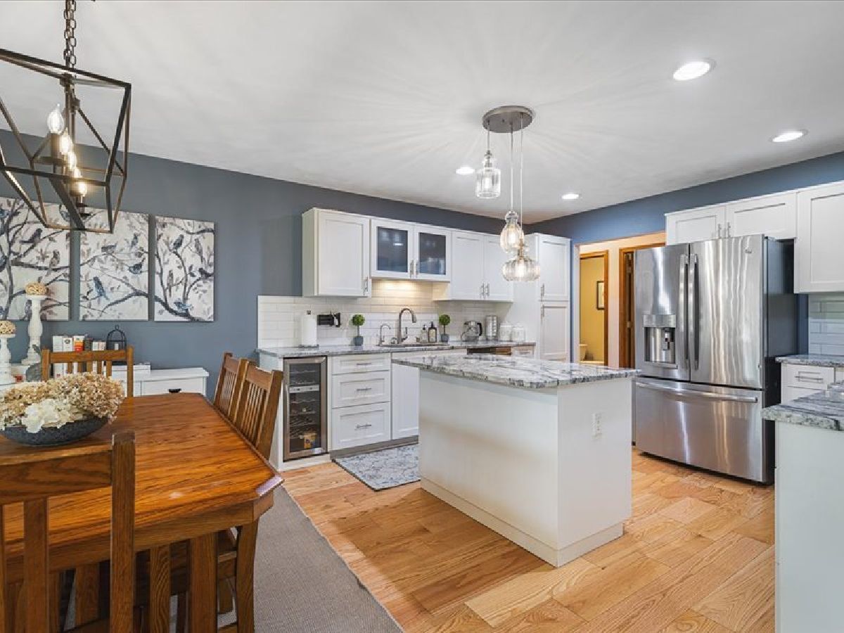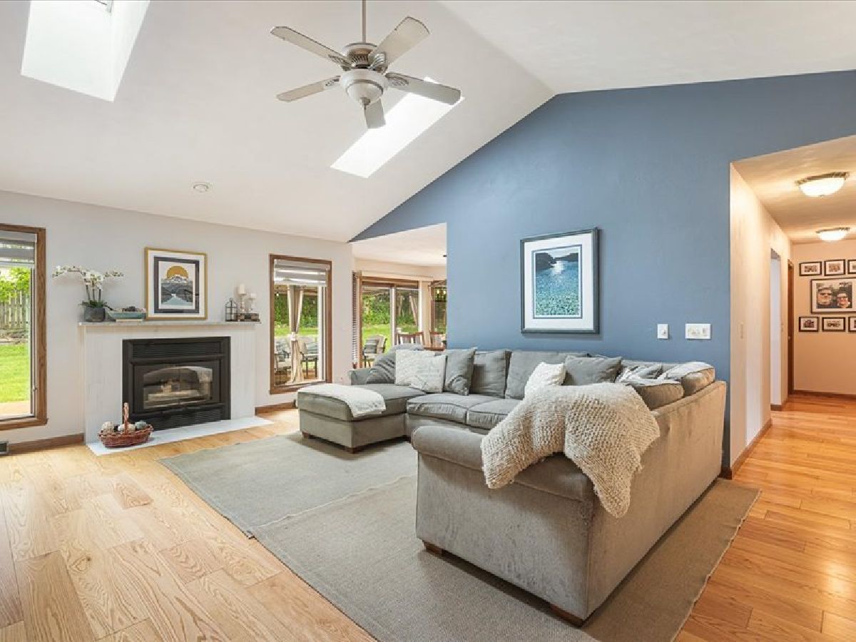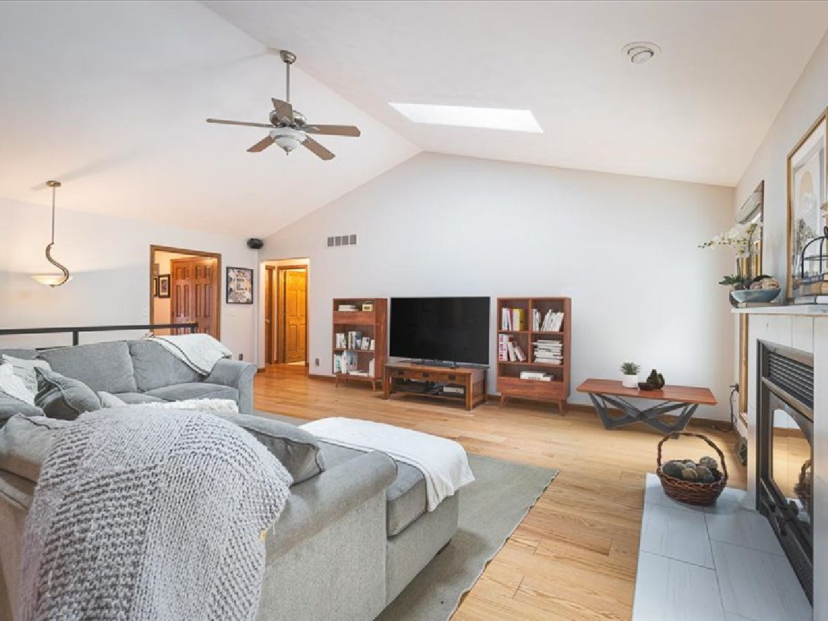Stunning Roscoe Ranch! Located in a highly sought-after Roscoe neighborhood, this beautifully upgraded home offers over 2,000 sq ft of finished living space with a desirable split-bedroom layout. The flex room is perfect for a home office, craft room, or formal dining. Car enthusiasts will love the extra-deep 4.5-car garage equipped with a professional hydraulic car lift, wired for 220! The full basement is framed and plumbed for a third bath, offers fourth bedroom/office and ready to expand. The kitchen is a showstopper with marble countertops, custom soft-close cabinets, gas stove, beverage fridge, built-in Keurig in refrigerator, subway tile backsplash, and stylish custom lighting over the island and dining area. Red oak flooring (2021) and fresh paint throughout elevate the interior. The spacious primary suite features deck access to a private hot tub, a walk-in closet, and a spa-like bath with jetted tub and skylight. Enjoy cozy evenings by the gas fireplace in the great room. Step outside to a lushly landscaped yard with new hydrangeas, lavender, and butterfly bushes, a large deck with pergola, and a fire pit/flex space perfect for entertaining. Additional highlights include first-floor laundry, roof and skylights new in 2020. This one is anything but cookie cutter-schedule your showing today!