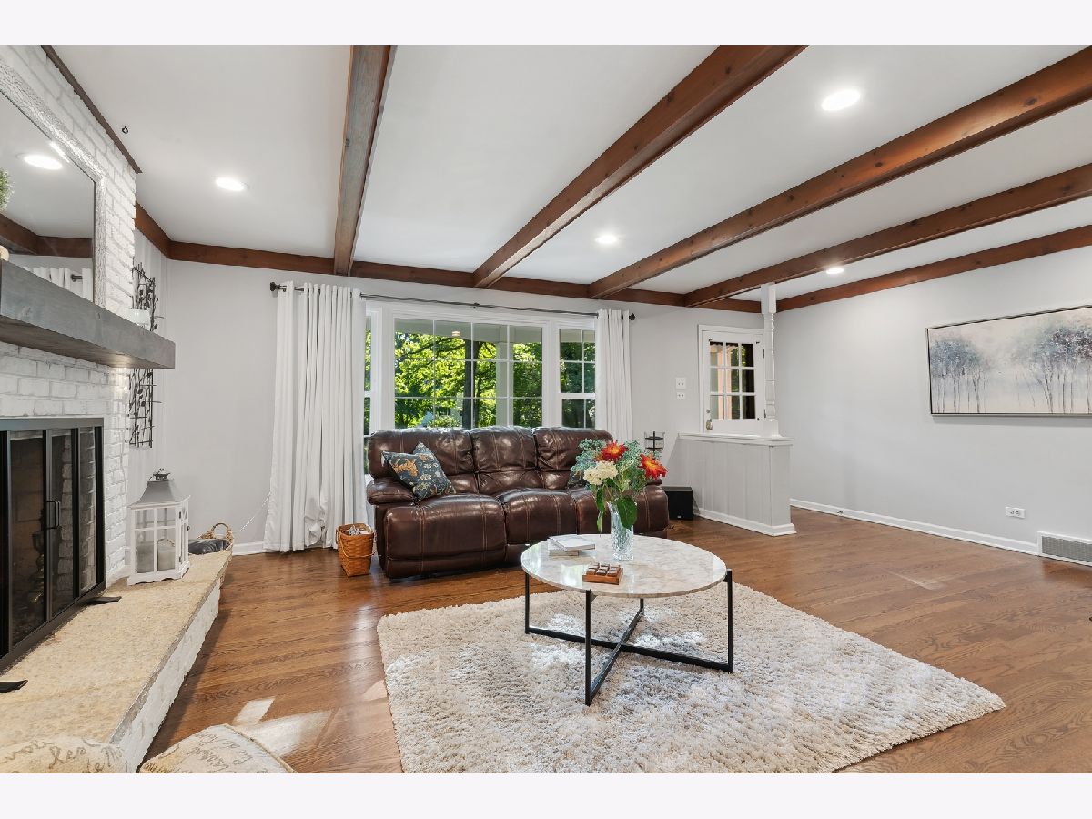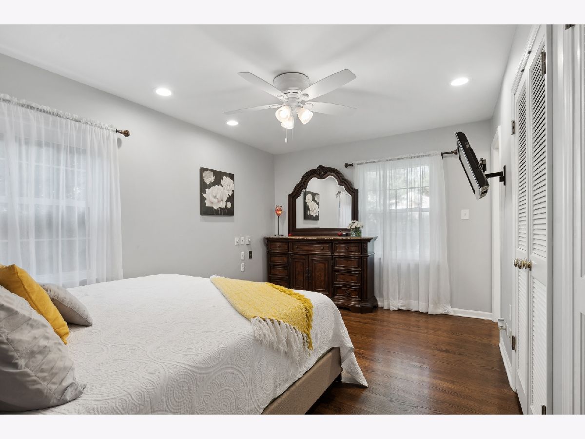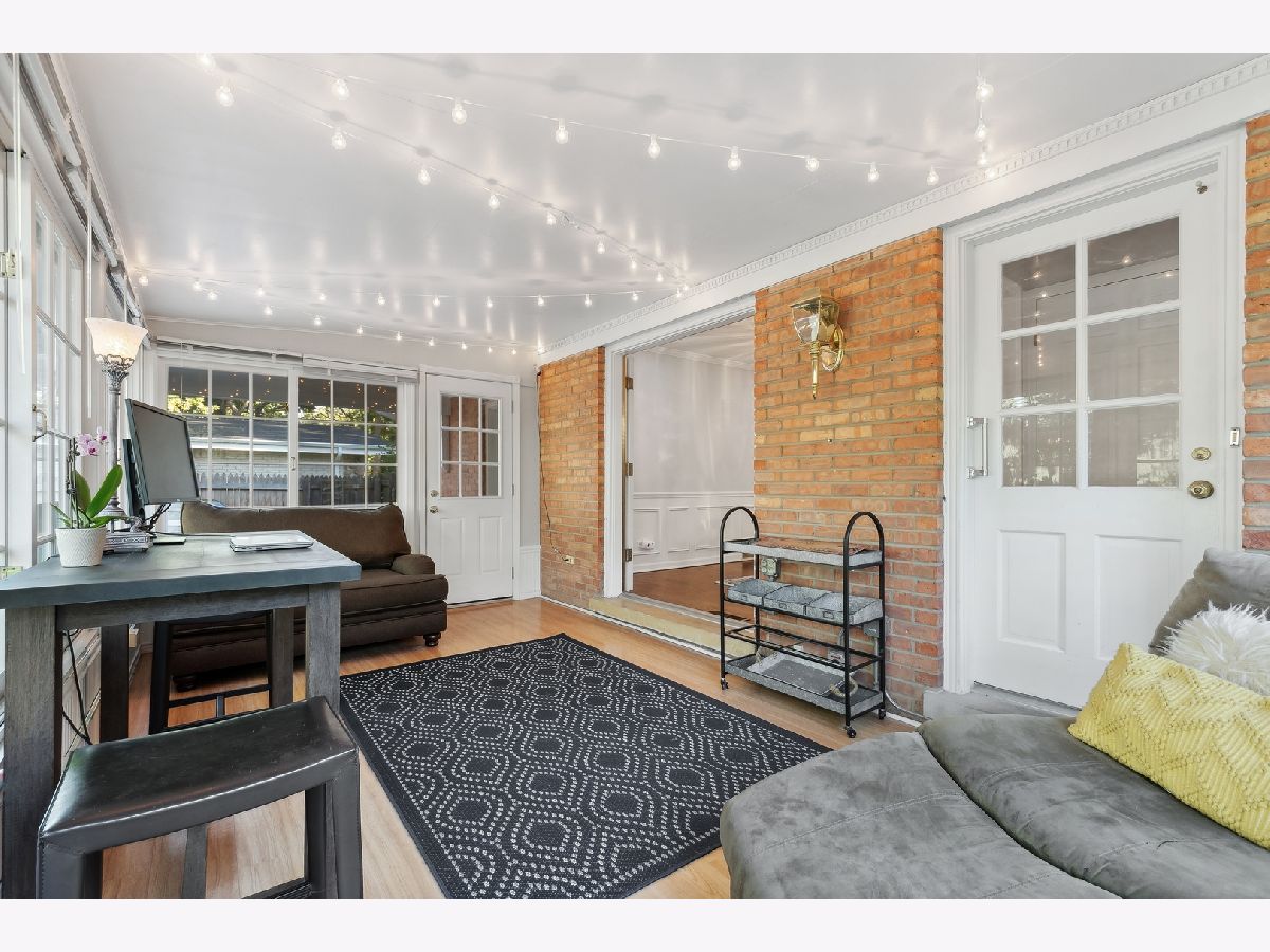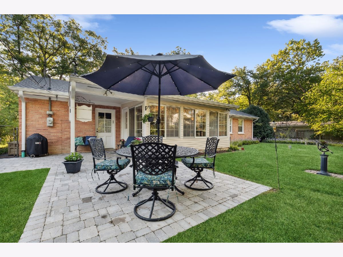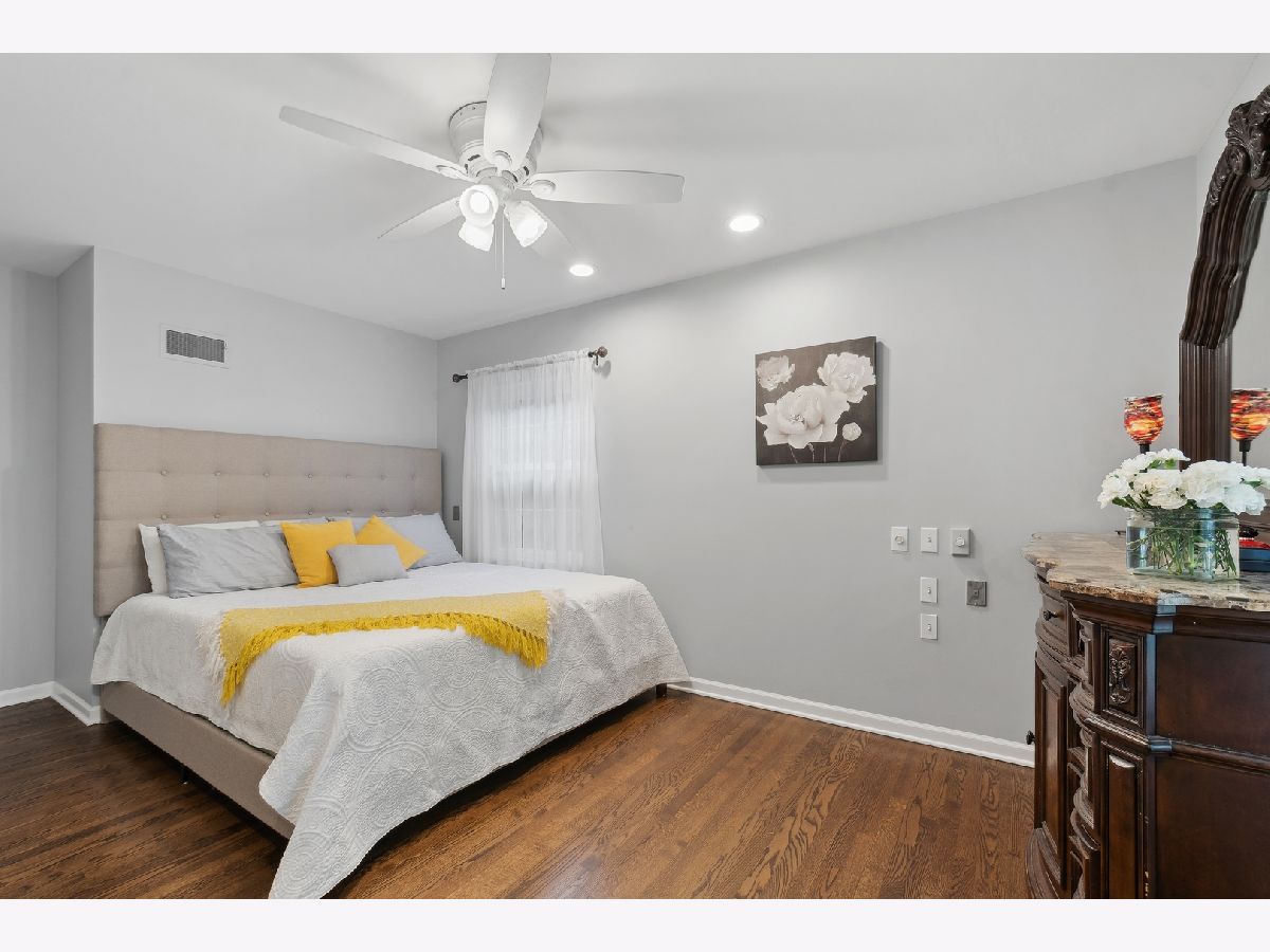 This warm and inviting, sun filled 3 bedroom, 2 bathroom brick and cedar ranch has it all; updated kitchen and baths, refinished hardwood floors, new windows, new roof and gutters, new furnace and sump pump, and full basement. Nestled high on a quiet tree-lined street it offers great location and a comfortable floor plan. It features a spacious family room with a cozy brick, gas fireplace and a large picture window, a large dining room and a sun room overlooking a beautifully landscaped, fenced backyard with a new paver patio that is partially covered and can be enjoyed even on a rainy day. A sunny, white eat-in kitchen with new wide plank hardwood floors, subway tile backsplash, new refrigerator, and dishwasher, offers great storage and prep space. A large window over the sink brings in natural light and backyard views. The primary bedroom at the end of the hallway offers privacy and a beautifully remodeled en-suite bathroom. A fully renovated hallway bath and two additional bedrooms, all with great light and gleaming hardwood floors complete the main level. A full basement offers a pool table, spacious laundry area and tremendous storage. Other highlights include a charming front porch, a paver front walk, new light fixtures, ceiling fans, new washer and dryer, and an oversized one car garage with plenty of storage. Close to Waveland Park, Cherokee Elementary and with easy access to Metra and highways. Move-in and enjoy!