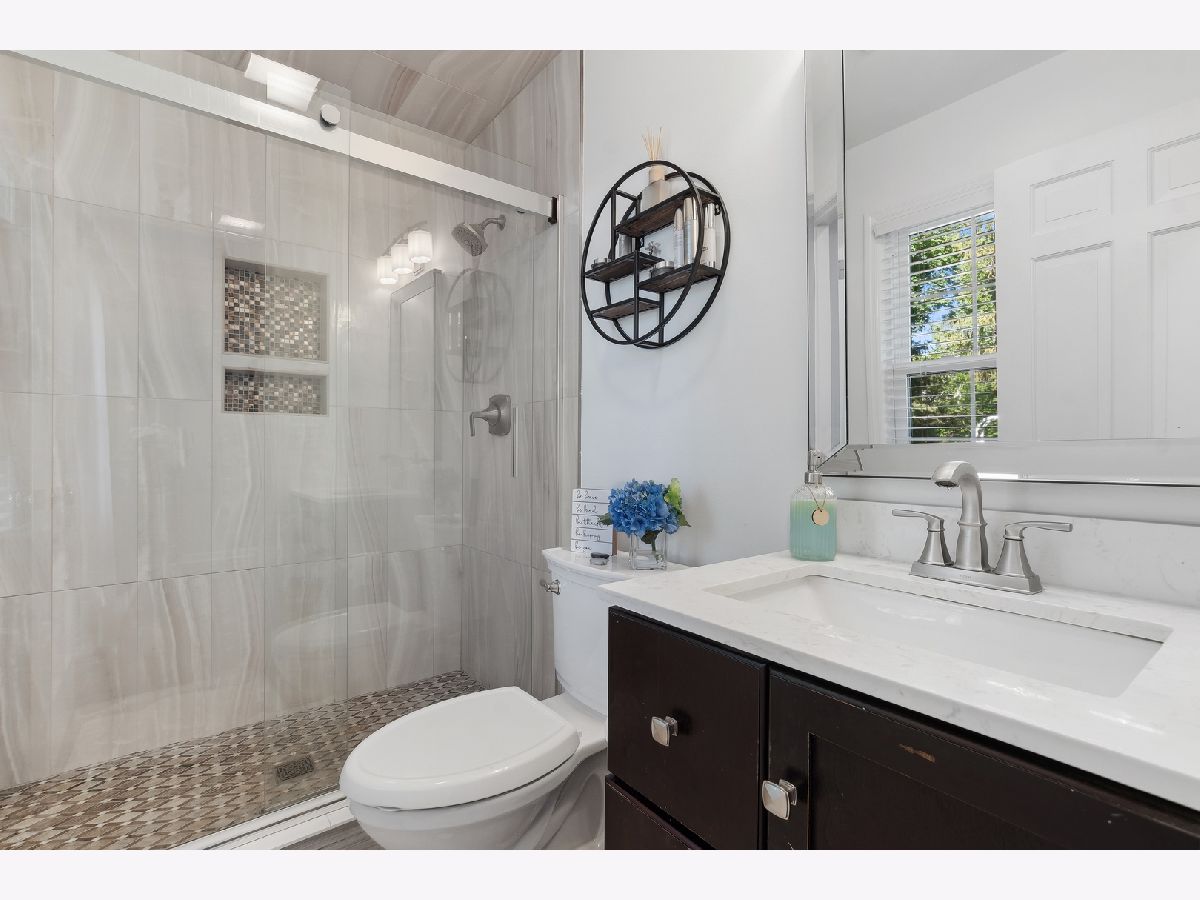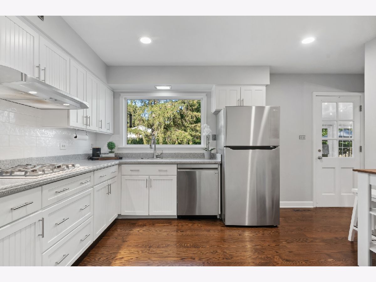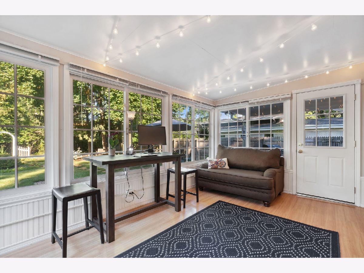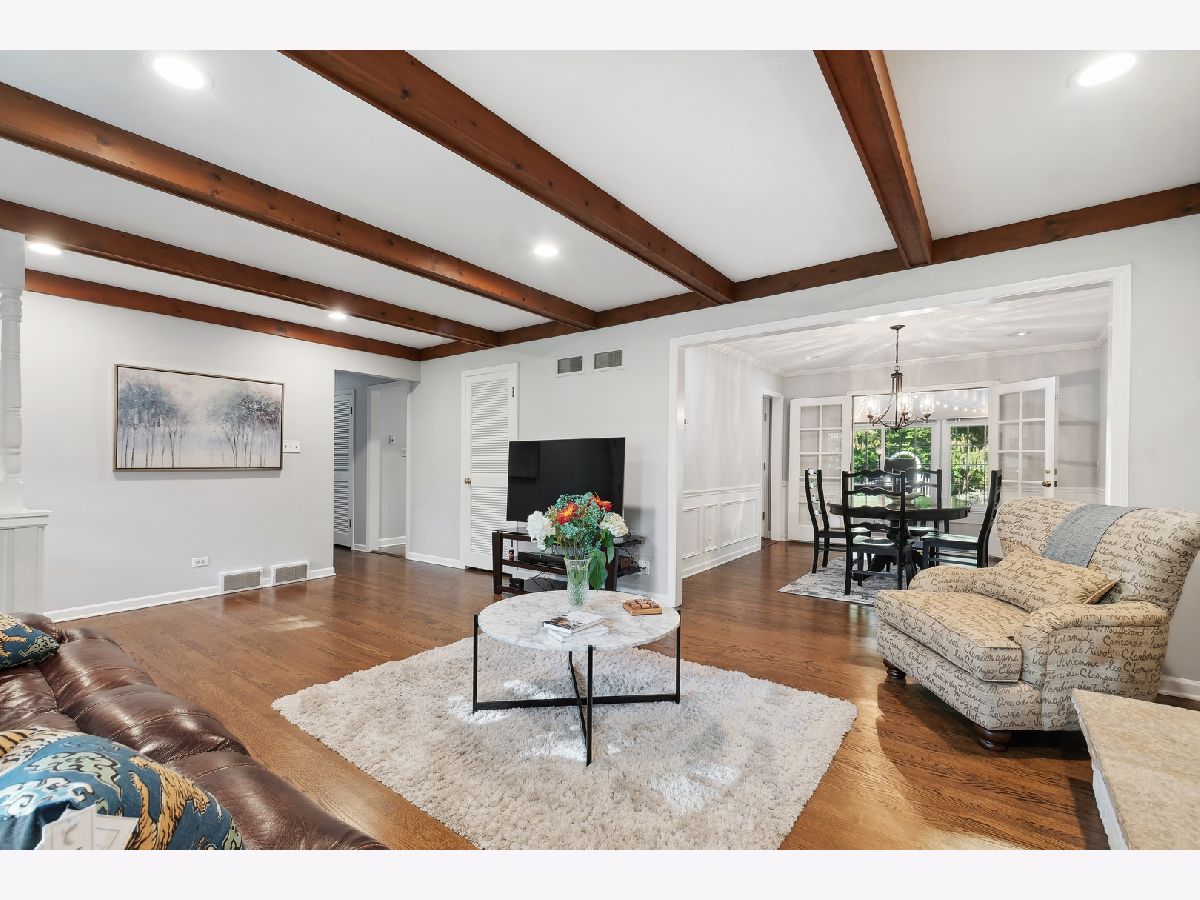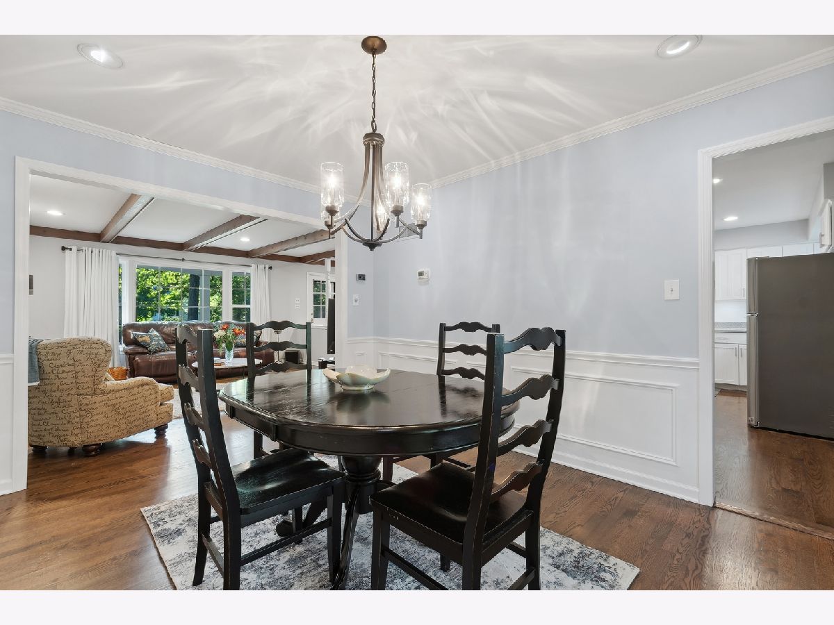 This warm and inviting, sun filled 3 bedroom, 2 bathroom brick and cedar ranch has it all; updated kitchen and baths, refinished hardwood floors, new windows, new roof and gutters, new furnace and sump pump, and full basement. Nestled high on a quiet tree-lined street it offers great location and a comfortable floor plan. It features a spacious family room with a cozy brick, gas fireplace and a large picture window, a large dining room and a sun room overlooking a beautifully landscaped, fenced backyard with a new paver patio that is partially covered and can be enjoyed even on a rainy day. A sunny, white eat-in kitchen with new wide plank hardwood floors, subway tile backsplash, new refrigerator, and dishwasher, offers great storage and prep space. A large window over the sink brings in natural light and backyard views. The primary bedroom at the end of the hallway offers privacy and a beautifully remodeled en-suite bathroom. A fully renovated hallway bath and two additional bedrooms, all with great light and gleaming hardwood floors complete the main level. A full basement offers a pool table, spacious laundry area and tremendous storage. Other highlights include a charming front porch, a paver front walk, new light fixtures, ceiling fans, new washer and dryer, and an oversized one car garage with plenty of storage. Close to Waveland Park, Cherokee Elementary and with easy access to Metra and highways. Move-in and enjoy!