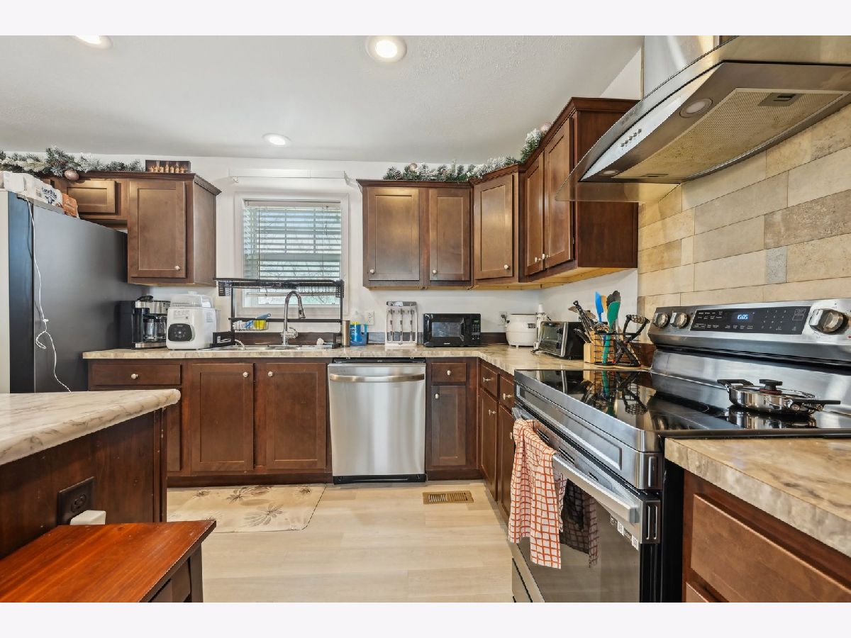 Beautiful 4 bedroom 2 bath mobile home, located within the Glenview school district! This beautifully maintained home welcomes you with a cozy family room & open-concept kitchen, stainless steel appliances, smart refrigerator, beautiful wood cabinetry & large island, perfect for hosting family and friends! The primary suite has a walk-in closet & refreshed full bath. Newer luxury vinyl tile flooring throughout this show stopper! Convenient mudroom/laundry room with side-by-side washer/dryer leads to outdoor entertainment and fun in the backyard, there is also a shed for all your storage needs. On the other end of the home, is another refreshed full bath, and three bedrooms, there is nothing left to do, just move on in! Sunset Village Community has a clubhouse, fitness center & park near walking path. Pets welcome: 2 pet limit, no weight limit but there is a breed restriction. No property taxes as this is a land lease $1,397.83/month which includes the lot lease, garbage service & lawn maintenance. Conveniently located close to grocery, shopping, restaurants, expressway, bus and train. Come make this spectacular home yours now!