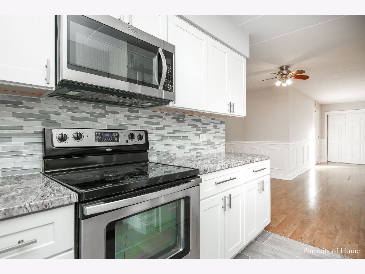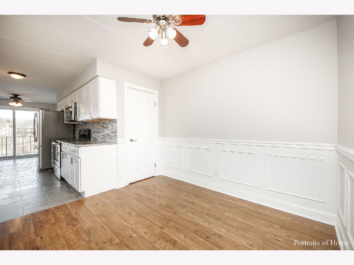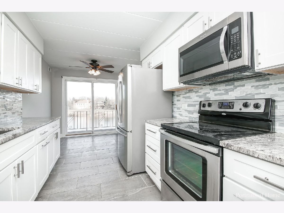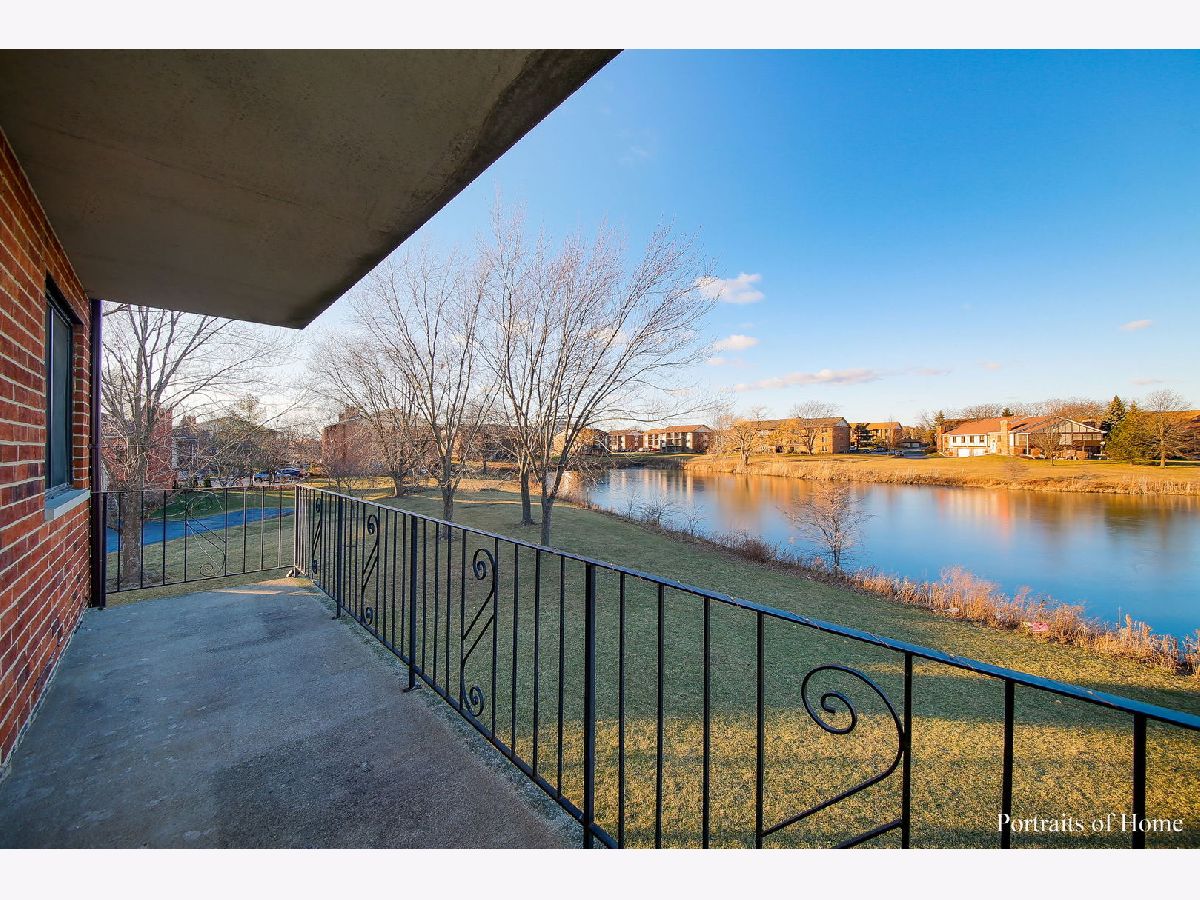 Beautifully updated 2 bedroom 2 bath condo that backs to the pond! White trim and 6 panel doors throughout. Wainscoting in the living room, dining room and 2nd bedroom make this unit so special! The eat-in kitchen is updated with gorgeous white cabinetry, wine rack, granite counters, SS appliances and a lovely water view! The very spacious living room offers a wood burning fireplace and a SGD that opens to the front balcony where you have a custom oak plant stand. Both bathrooms have been updated as well! Newer flooring throughout the condo. The stackable washer and dryer are only 2 years old! The back balcony is huge- 4 1/2' x 19". Great spot for outdoor eating and enjoying the peaceful view of the pond and playground. Perfect location within walking distance of Centennial Park, Orland Park Health and Fitness Center and MORE! This unit will NOT last long!!