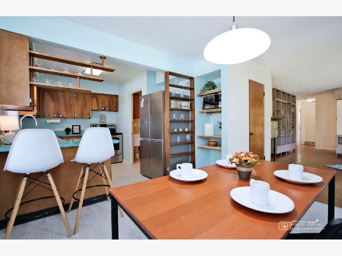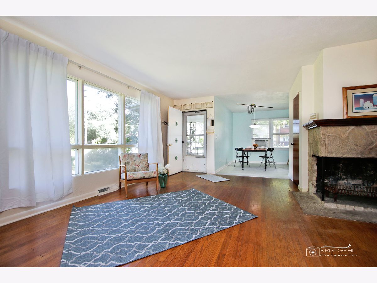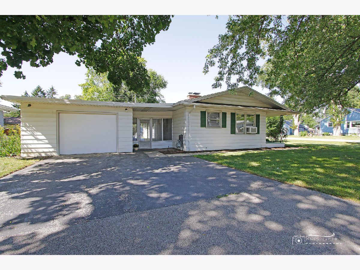 Check out this sharp one level ranch home, Mid-Century modern inspired - yes, built in the 1950s with plaster walls, hardwood floors, clean lines, open floor plan, unique built-in shelving and many updates for you! Ready to move in! Enter the charming covered front porch to the spacious 19 x 15 living room w/large picture window, hardwood flooring. Newer updated shelving units here make for excellent storage or display shelves or a nice set up for movie night (the TV stays). Check out that corner fireplace (wood-burning) and the cute office tucked away there for privacy. A double door from the office area leads to the enclosed porch/breezeway for more living space - a great spot for garden room, seasonal play room for the children - you decide! Wander back inside to see 3 good-sized bedrooms, all with hardwood floors, a clean recently updated bath. The dining room is spacious & opens to both the living room & kitchen. A convenient breakfast bar also here and see the unique shelving, built-in storage for the microwave. All stainless steel appliances, dishwasher just a few months new, stove and refrigerator 2 years new. Sharp brand new luxury vinyl flooring is here, in the dining room and winds into the main floor laundry with brand new washer, dryer and slop sink (6/23). The breezeway/enclosed porch leads to the 1+ car attached garage with built in shelving all around. Don't miss that brick patio (15 x 15), the raised garden bed and leading to very spacious near 1/4 acre corner lot - lots of space here for play, cook-outs, family fun! Other updates include new roof January 2023, electric panel new 2021, lots of fresh paint throughout, new blinds, freshly painted front porch - a real cutie - See it soon!!
