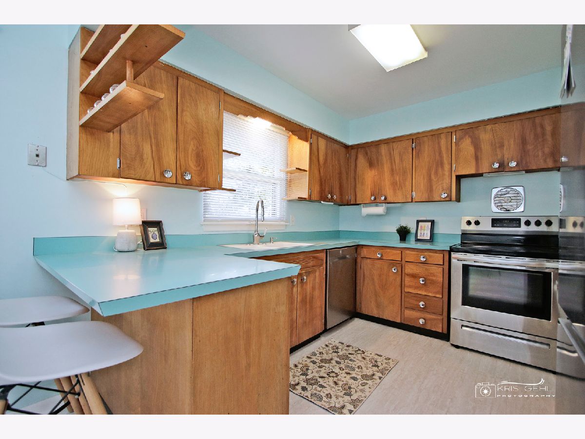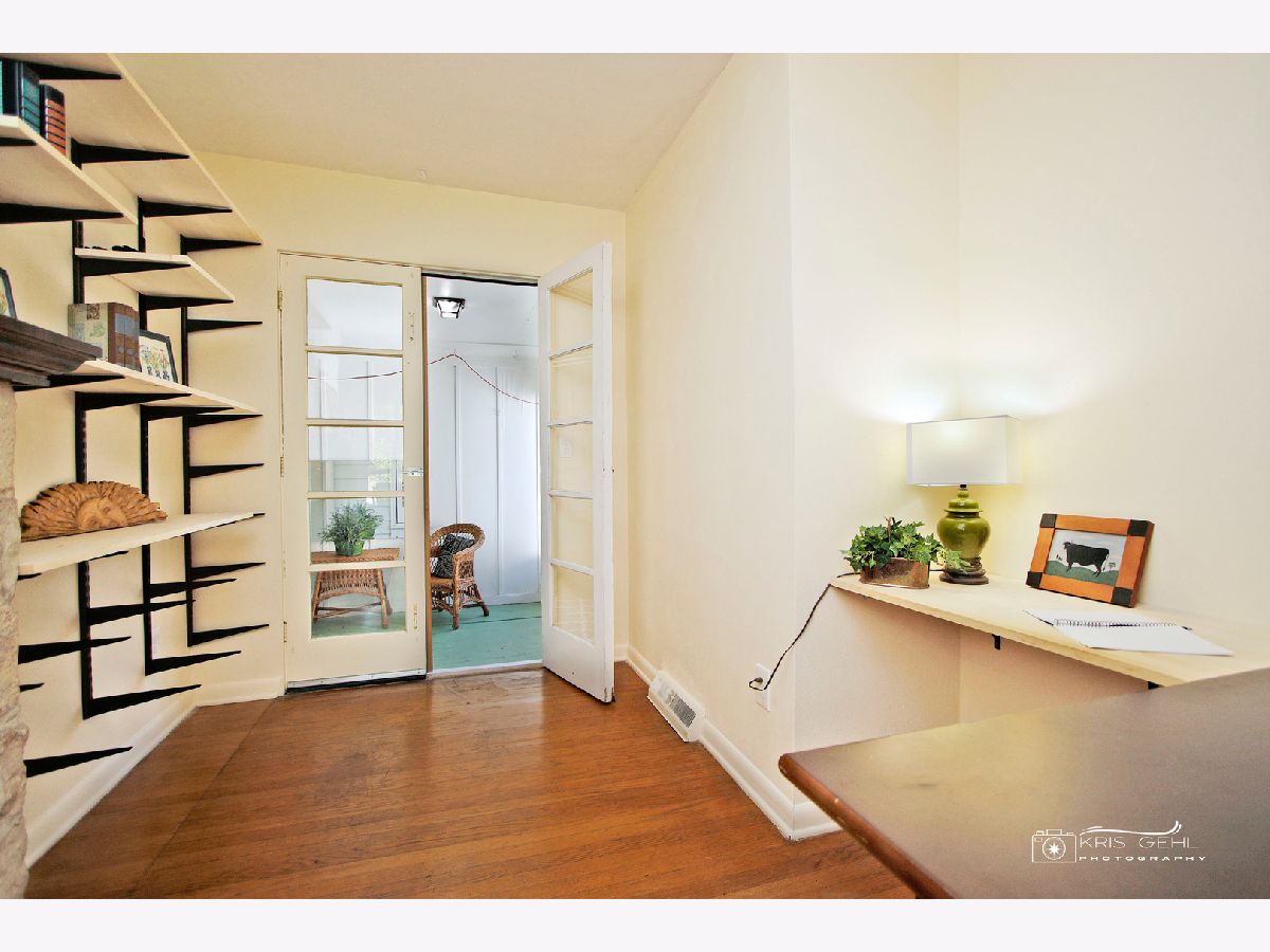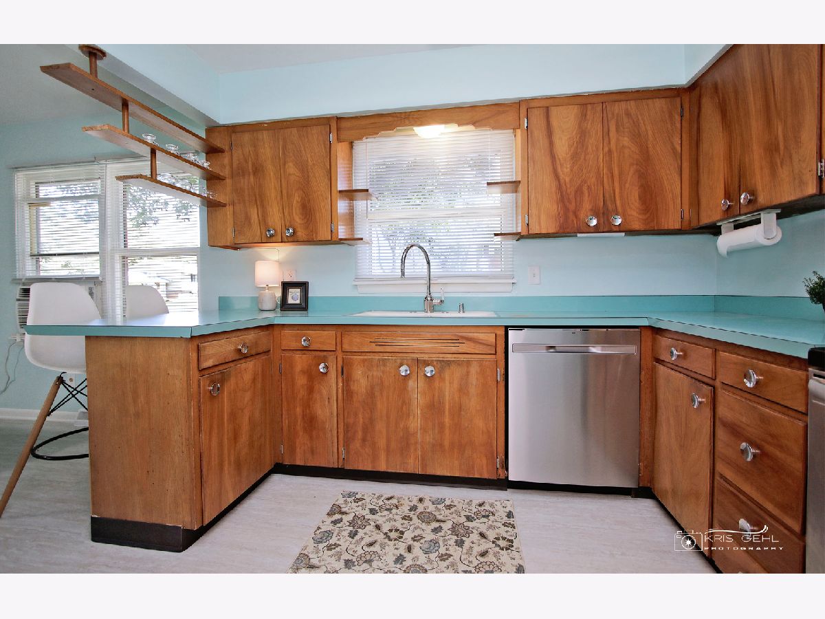 Check out this sharp one level ranch home, Mid-Century modern inspired - yes, built in the 1950s with plaster walls, hardwood floors, clean lines, open floor plan, unique built-in shelving and many updates for you! Ready to move in! Enter the charming covered front porch to the spacious 19 x 15 living room w/large picture window, hardwood flooring. Newer updated shelving units here make for excellent storage or display shelves or a nice set up for movie night (the TV stays). Check out that corner fireplace (wood-burning) and the cute office tucked away there for privacy. A double door from the office area leads to the enclosed porch/breezeway for more living space - a great spot for garden room, seasonal play room for the children - you decide! Wander back inside to see 3 good-sized bedrooms, all with hardwood floors, a clean recently updated bath. The dining room is spacious & opens to both the living room & kitchen. A convenient breakfast bar also here and see the unique shelving, built-in storage for the microwave. All stainless steel appliances, dishwasher just a few months new, stove and refrigerator 2 years new. Sharp brand new luxury vinyl flooring is here, in the dining room and winds into the main floor laundry with brand new washer, dryer and slop sink (6/23). The breezeway/enclosed porch leads to the 1+ car attached garage with built in shelving all around. Don't miss that brick patio (15 x 15), the raised garden bed and leading to very spacious near 1/4 acre corner lot - lots of space here for play, cook-outs, family fun! Other updates include new roof January 2023, electric panel new 2021, lots of fresh paint throughout, new blinds, freshly painted front porch - a real cutie - See it soon!!