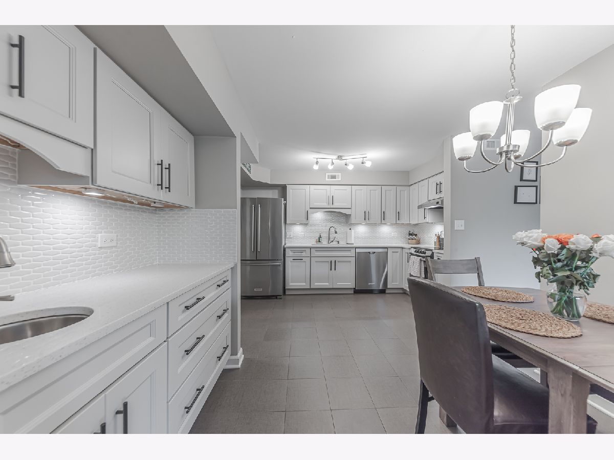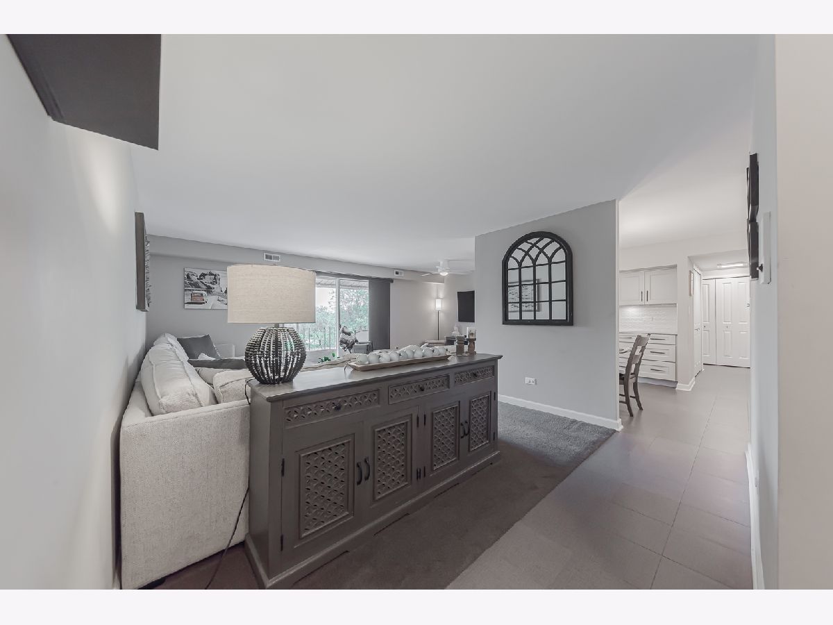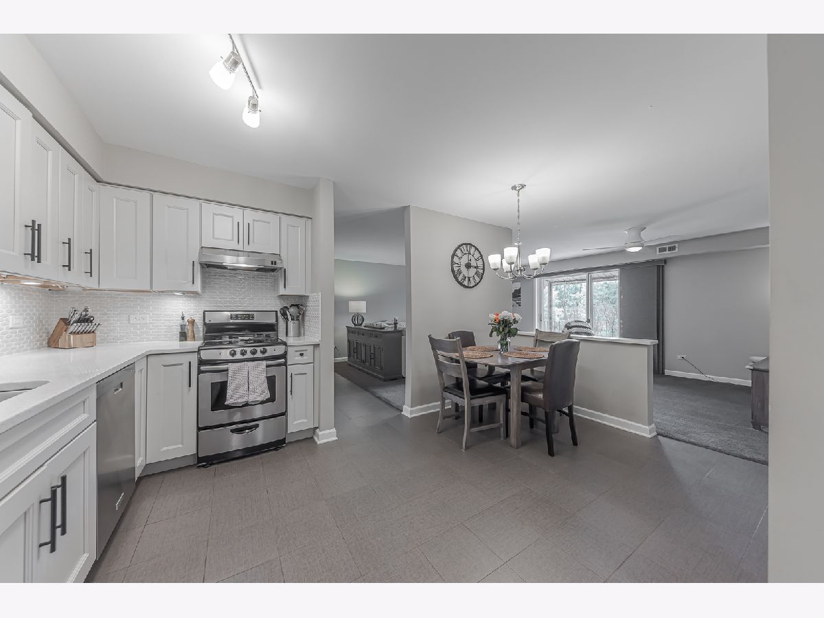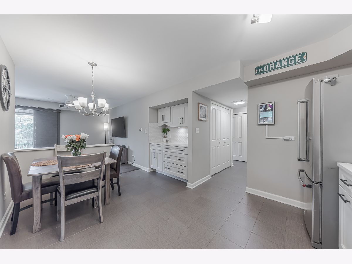 Absolute must-see condo, now available in the highly sought-after Treetop Condominiums of Orland Park! Discover the epitome of modern living in this beautifully updated condo that combines popular features with the warmth and comfort of your dream home. Featuring an open floor plan, this top-floor unit boasts an eat-in kitchen with high-end cabinetry, quartz countertops, stainless steel appliances, under-cabinet lighting, and a convenient coffee/wet bar area. The spacious living and dining room opens to a screened-in private balcony with unobstructed south-facing views, perfect for relaxation. With two upgraded bathrooms and two bedrooms, the primary bedroom suite includes double closets and a private bathroom. Recent updates to this home include the HVAC, hot water heater, Pella windows, solid-core doors, white trim, porcelain tile flooring, and fresh neutral paint. Move-in ready, the unit comes with a one-car garage and an additional outside parking space. You'll love the short walk to Treetop Park and the Centennial Park multi-use recreation area, featuring a water park, pool, and sports fields. Additionally, it's perfectly situated just minutes from the Metra station, Whole Foods, Orland Park Public Library, and plenty of shopping options. This home offers the best of convenience and contemporary living!