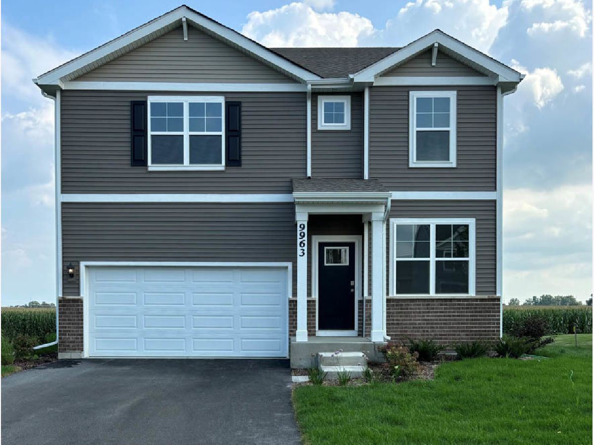 Discover yourself at 9963 Jonamac Avenue in Huntley, Illinois, a beautiful new home in our Cider Grove community. This home is ready for an immediate move-in! This scenic homesite includes an open area behind it, a rear deck, and a fully sodded yard. The Holcombe plan offers 2,356 square feet of living space with a flex room, 4 bedrooms, 2.5 baths, 9-foot ceilings on the first floor and a full look-out basement with roughed in plumbing. Entertaining will be easy in this open-concept kitchen and family room layout with a large island with an overhang for stools, 42-inch designer white cabinetry with crown molding and soft close drawers. Additionally, the kitchen features a walk-in pantry, modern stainless-steel appliances, quartz countertops and easy-to-maintain luxury vinyl plank flooring. More flexible space is waiting upstairs! Enjoy your private getaway with your large primary bedroom and en suite bathroom with raised height dual sink, quartz top vanity, and walk-in shower with ceramic tiled walls and clear glass shower doors. Convenient walk-in laundry room, 3 additional bedrooms with a full second bath and linen closet complete the second floor. Tucked in a highly desirable area just off Dundee Rd., Cider Grove in Huntley, is conveniently located to I-90, Route 47,and the Metra train. With loads of shopping and dining options, Algonquin Commons is just minutes away. All homes at Cider Grove include a garage door opener on double doors, an ERV furnace system, and a tankless hot water heater. All Chicago homes include our America's Smart Home Technology, featuring a smart video doorbell, small Honeywell thermostat, Amazon Echo Pop, smart door lock, Deako smart light switches and more. Exterior photo of actual home. Interior photos are of similar home and model home. Actual home built may vary.