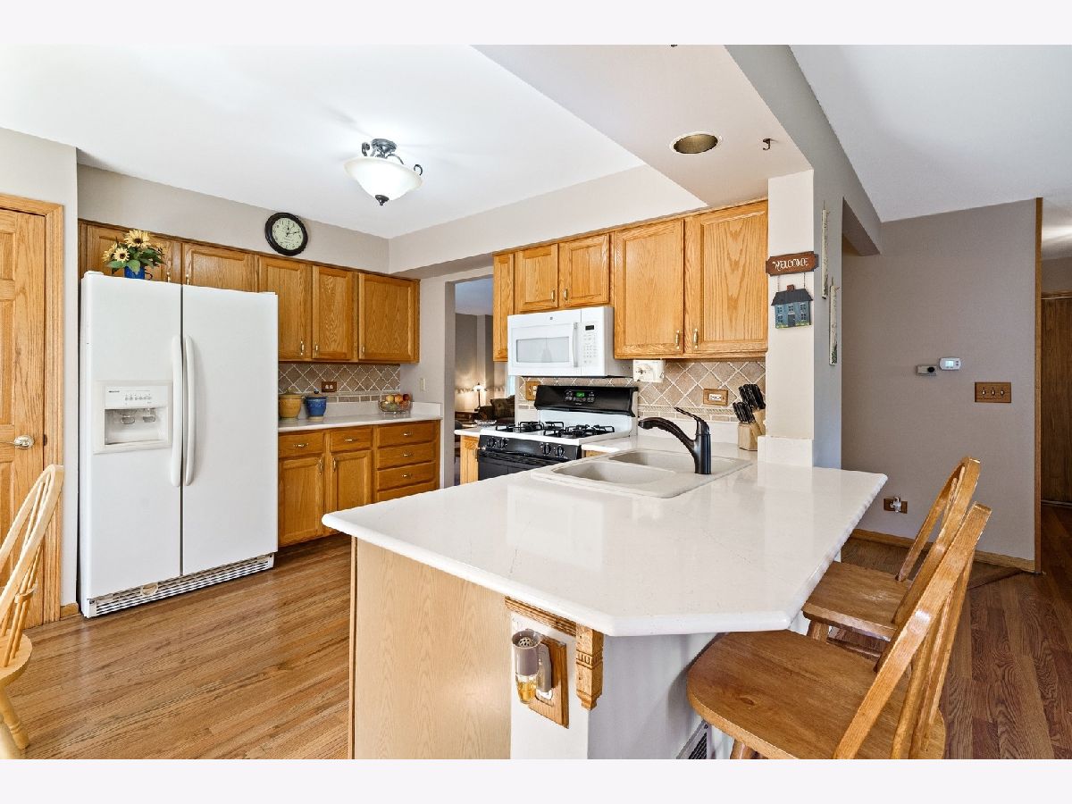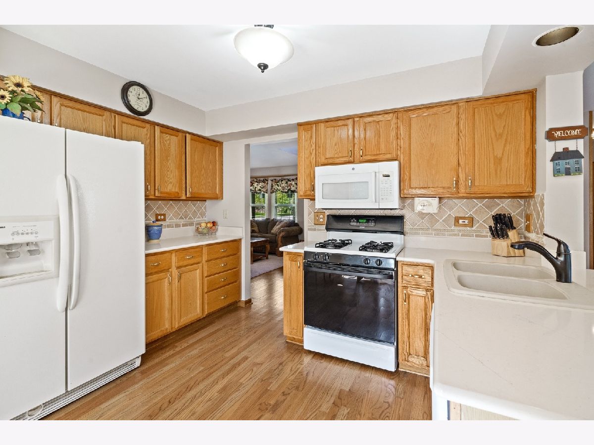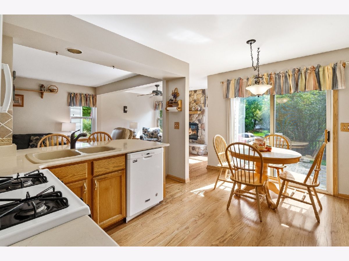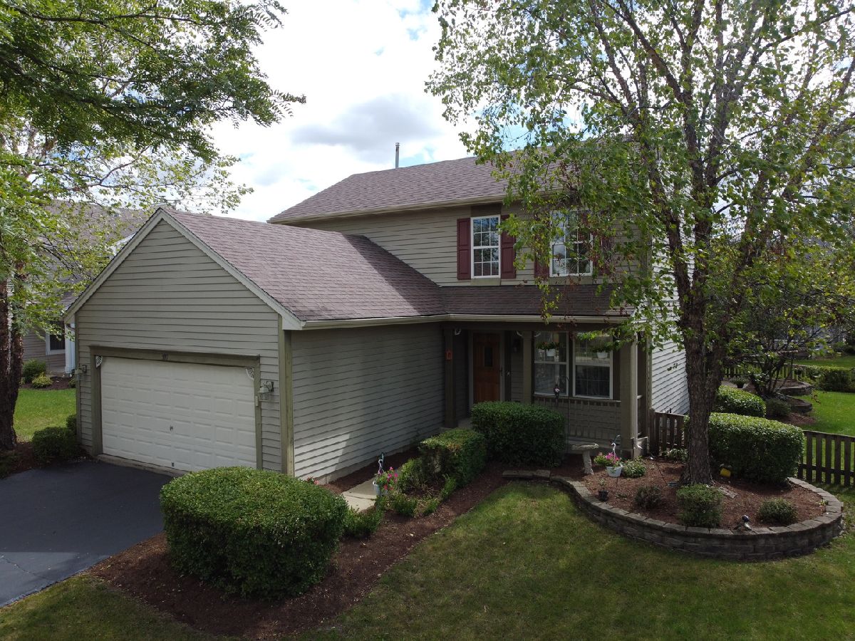 Check out this popular Sugar Ridge "Austin" model with fabulous two-story addition offering you almost 2100 sq ft of living space! Located in top rated St. Charles School district 303, this upgraded home on a professionally landscaped, fenced corner lot is just across from the neighborhood park. Enjoy gorgeous hardwood floors, updated kitchen and laundry room with QUARTZ counter tops, and beautiful stone mason fireplace in the spacious yet cozy family room. Full FINISHED BASEMENT with a desirable (2020 inspired must have) office space featuring custom built-in desk and newer carpet. Upstairs you will find 3 bedrooms and full hall bath. The owners suite features a private full bathroom and the addition off the owners suite is a great flex space that can be used as a home office, workout area, or sitting room, giving you the additional living space you need and desire in this day and age. Additional highlights include NEW FURNACE and NEW AC installed in 2018, NEW ROOF installed in 2011, Solid 6 panel doors, and custom built-in grill on the paver patio. You'll enjoy being close to Randall Road shopping and dining, the Fox River, and lovely downtown St. Charles.