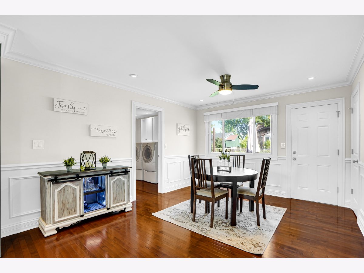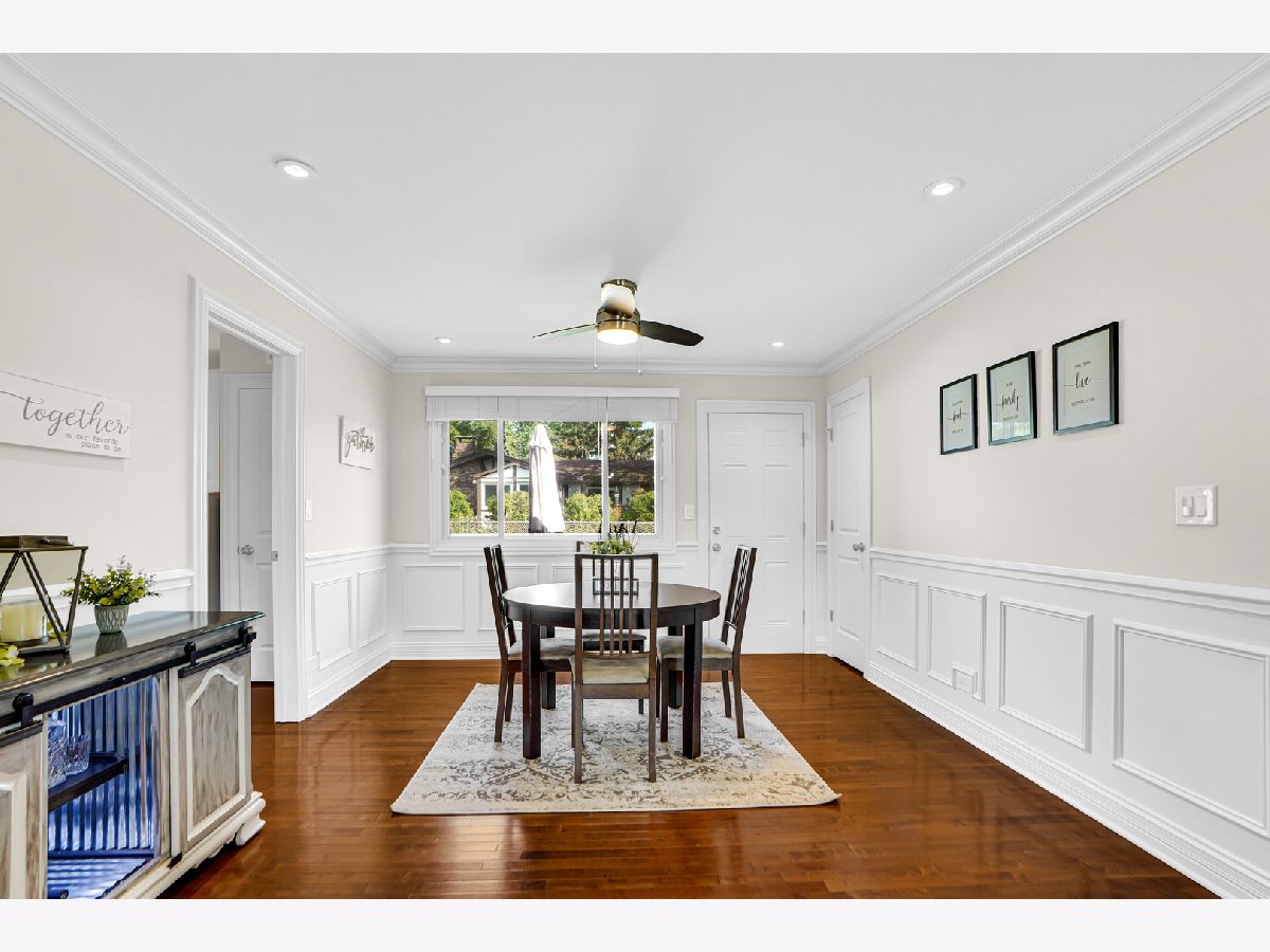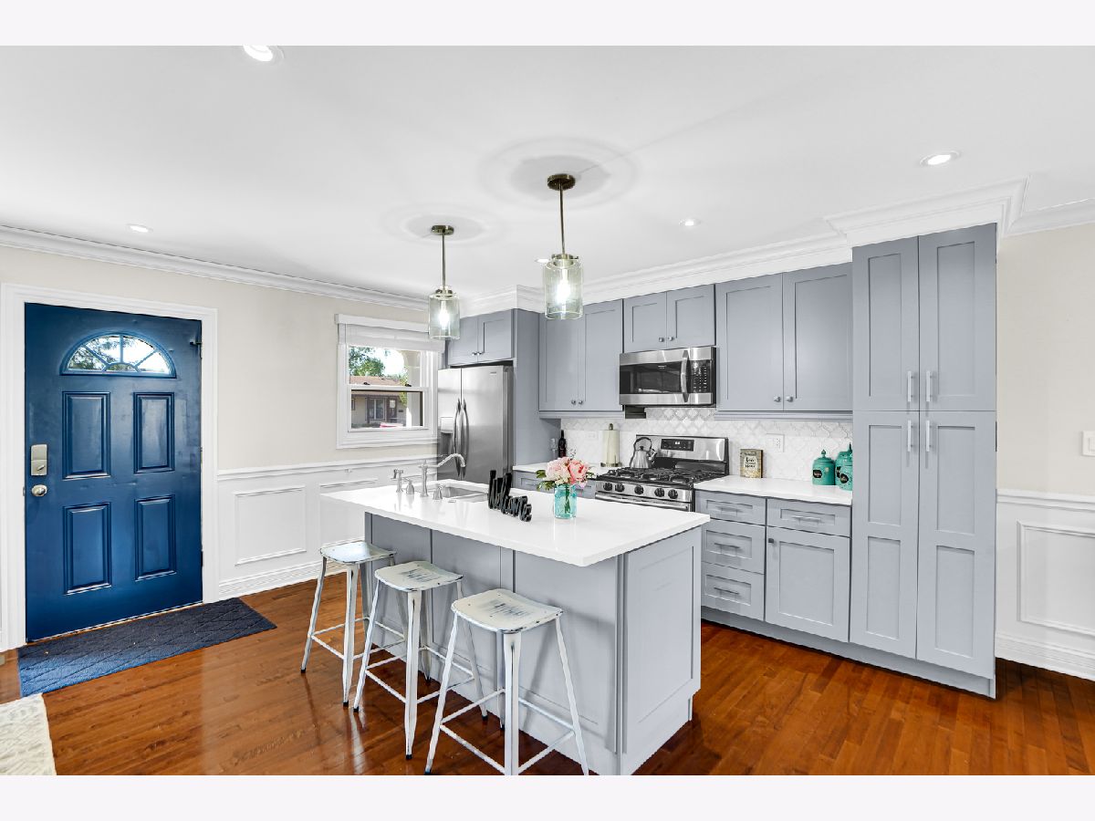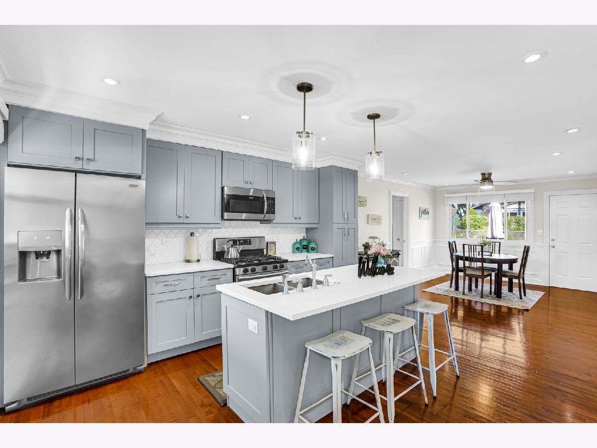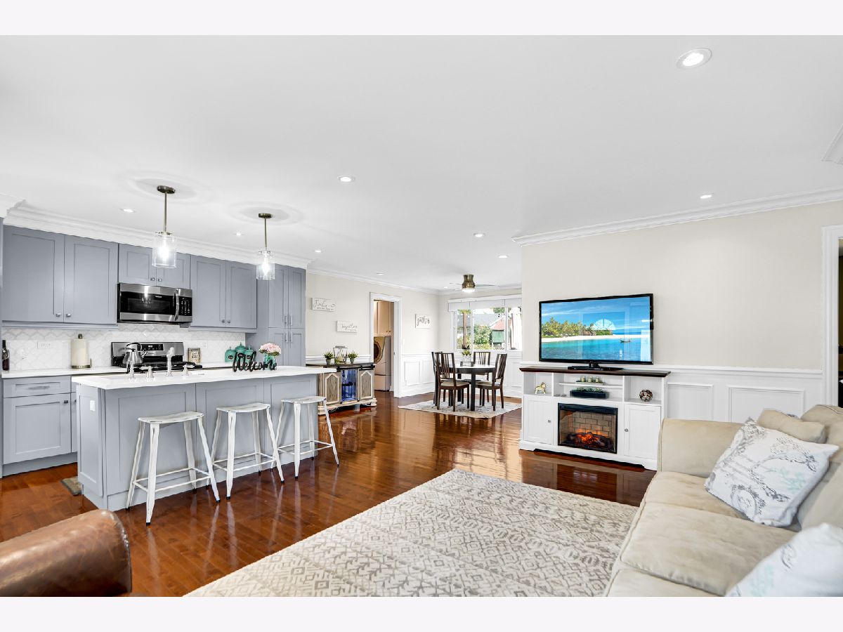Stunning ranch home in Elk Grove Village features a great open concept, perfect for entertaining. Enjoy the completely updated kitchen with gray custom shaker cabinets, lots of storage, oversized island with sink, quartz countertops, all stainless-steel appliances and custom tile backsplash. You'll love the sophisticated look of the crown molding, wainscoting and beautiful hardwood floor throughout the kitchen, living room and dining room. Down the hallway you'll find the updated guest bath and three good size bedrooms. The primary bedroom features a walk-in closet with closet organizers and a fully updated bath. The large laundry/mud room has built-in cabinets for extra storage and locker bench which leads to the oversized attached garage with plenty of room for two cars, and additional storage. From the dining room walkout to a fully fenced in backyard with patio area an inviting firepit area perfect for the cold fall nights. Other recent updates are new roof, siding, windows, new drain tiles system and sump pump. This home is located in the highly rated Conant High School area and School district. Fantastic location with easy access to major highways, parks, shopping and dining. Achosa Home Warranty included for one year! The one you have been waiting for! This gem won't last long, come and see it before it's gone.