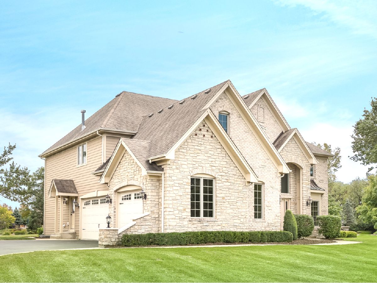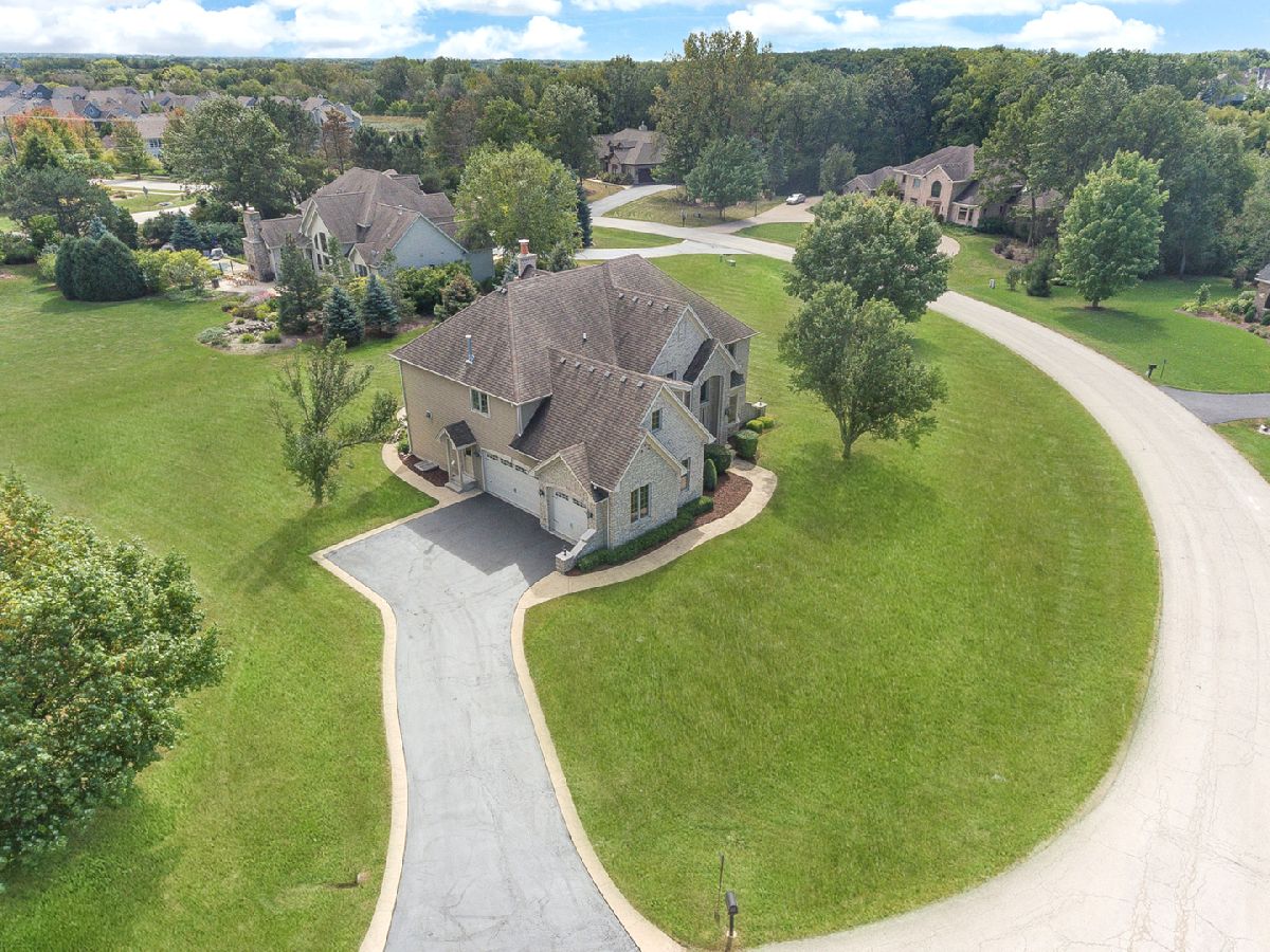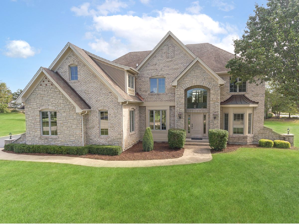 Stately European designed stone and brick Estate situated on a quiet, cul-de-sac 1.03 acre lot. In close proximity to walking & bike trails and serene neighborhood pond with walking track, as well as close to Bowes Creek Golf Club and Randall Road shopping. District 301 schools!! $250K in upgrades in past 2 years. Soaring 9 ft. ceilings, bright and airy throughout, ideal open floorplan, 10" crown molding, large Windsor casement crank out windows with integrated grilles, 3 car side load garage. Long winding stamped concrete paths lead to front entry and to rear of home. Fully remodeled with entire home finished in Sherwin Williams Emerald matte paint in Pure White color, Restoration Hardware fixtures. New European sawn wide plank solid white oak hardwood floors with matte wax finish span the entire main floor and second level catwalk. Brand new carpeting in all bedrooms. Fully refinished double staircase system with modern black balusters. Separate living room area off front entry. Spacious office offers French doors, coffered ceiling, and wainscoting detail. New powder room off main living area includes Carrara marble floors, custom designed white oak black finished vanity with quartz countertop and Restoration Hardware fixtures. Brand new $100K custom kitchen with floor to ceiling cabinets, 10 ft black stain finished white oak island and butler bar provide area for entertaining. Brand new $25K commercial Thermador appliances with flush mount 7' built-in refrigerator with SS interior and theater lighting, built-in island microwave, 6 burner commercial range, dishwasher, and powerful range ventilation. Under mount black Silgranite sink with Brizo faucet, Emtek gold finished cabinet hardware, slide out drawers in double pantry cabinets, and quartz countertops. Eat-in area opens to the two-story family room w/ 18 ft stone fireplace which has never been used. Dining room features step detail ceiling with white oak wood accent detail. Escape to your second level master retreat offering double door entry, tray ceiling, double sided stone fireplace, sitting area, HUGE walk-in closet with custom organizing system, jetted whirlpool fireside tub, two separate vanities and massive two-person shower has two shower heads. Three additional bedrooms, each with walk-in closets and vaulted ceiling, two sharing a Jack&Jill bath and one with ensuite adorn the second level. New front load washer and dryer included in fully remodeled laundry room. Custom built-in cubby off laundry and garage area helps keep everything organized. Deep pour basement is ready to be finished by its next buyer with new American Standard water heater and New professionally installed water filtration system. Great backyard with concrete patio and fire pit. This home is gorgeous and offers everything a custom built home should.