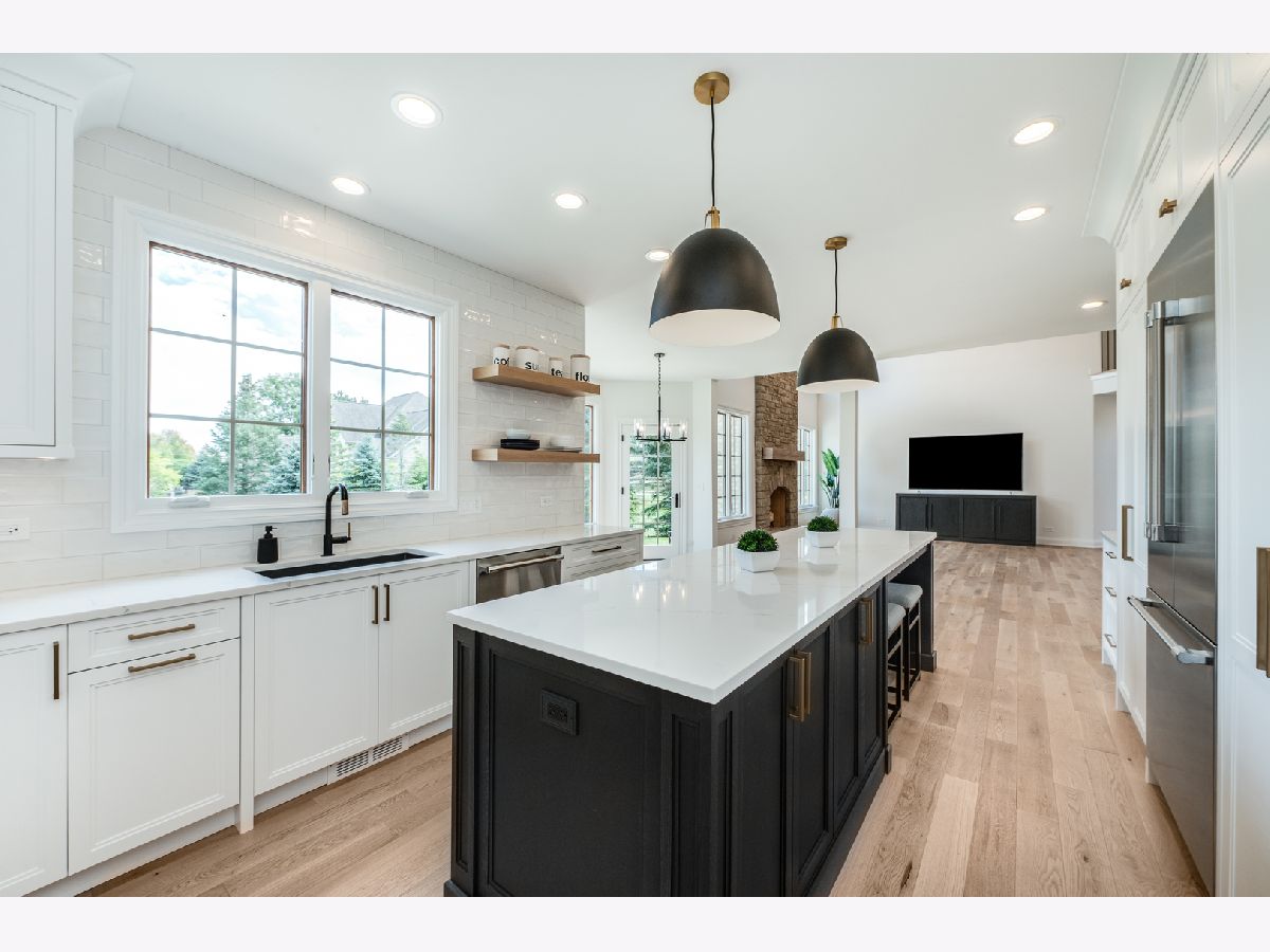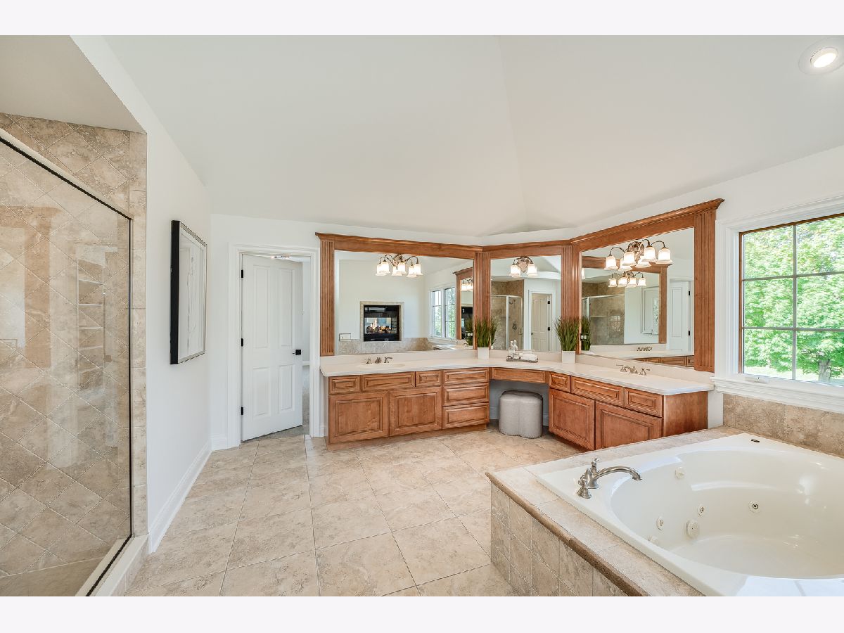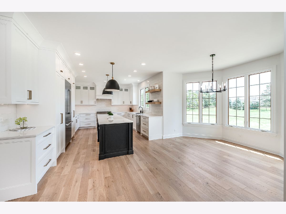 Stately European designed stone and brick Estate situated on a quiet, cul-de-sac 1.03 acre lot. In close proximity to walking & bike trails and serene neighborhood pond with walking track, as well as close to Bowes Creek Golf Club and Randall Road shopping. District 301 schools!! $250K in upgrades in past 2 years. Soaring 9 ft. ceilings, bright and airy throughout, ideal open floorplan, 10" crown molding, large Windsor casement crank out windows with integrated grilles, 3 car side load garage. Long winding stamped concrete paths lead to front entry and to rear of home. Fully remodeled with entire home finished in Sherwin Williams Emerald matte paint in Pure White color, Restoration Hardware fixtures. New European sawn wide plank solid white oak hardwood floors with matte wax finish span the entire main floor and second level catwalk. Brand new carpeting in all bedrooms. Fully refinished double staircase system with modern black balusters. Separate living room area off front entry. Spacious office offers French doors, coffered ceiling, and wainscoting detail. New powder room off main living area includes Carrara marble floors, custom designed white oak black finished vanity with quartz countertop and Restoration Hardware fixtures. Brand new $100K custom kitchen with floor to ceiling cabinets, 10 ft black stain finished white oak island and butler bar provide area for entertaining. Brand new $25K commercial Thermador appliances with flush mount 7' built-in refrigerator with SS interior and theater lighting, built-in island microwave, 6 burner commercial range, dishwasher, and powerful range ventilation. Under mount black Silgranite sink with Brizo faucet, Emtek gold finished cabinet hardware, slide out drawers in double pantry cabinets, and quartz countertops. Eat-in area opens to the two-story family room w/ 18 ft stone fireplace which has never been used. Dining room features step detail ceiling with white oak wood accent detail. Escape to your second level master retreat offering double door entry, tray ceiling, double sided stone fireplace, sitting area, HUGE walk-in closet with custom organizing system, jetted whirlpool fireside tub, two separate vanities and massive two-person shower has two shower heads. Three additional bedrooms, each with walk-in closets and vaulted ceiling, two sharing a Jack&Jill bath and one with ensuite adorn the second level. New front load washer and dryer included in fully remodeled laundry room. Custom built-in cubby off laundry and garage area helps keep everything organized. Deep pour basement is ready to be finished by its next buyer with new American Standard water heater and New professionally installed water filtration system. Great backyard with concrete patio and fire pit. This home is gorgeous and offers everything a custom built home should.