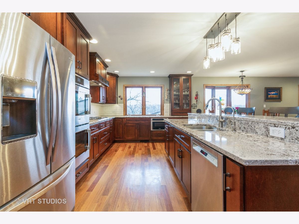 Gorgeous Brick Ranch situated on a lovely acre lot. Owners have introduced wonderful updates to this property! The sprawling floor plan greets you in the traditional living room then flows into a fully remodeled kitchen and family room area for a functional great room effect! Gleaming Brazilian hardwood floors, solid wood doors, custom cabinetry, granite countertops and Bosch stainless steel appliances (5 burner stovetop, full size double oven, microwave drawer, dishwasher) and a custom fireplace mantle are just some of the highlights! A generously sized primary bedroom and two secondary rooms are located on the main floor along with a newly remodeled main bath and powder room. Bring the outdoors in as you enjoy the four season sunroom year round! The basement offers additional living space options with a rec room, game room and 4th bedroom as well as boasting its own updates that include new vinyl plank flooring and a French-door walkout. Roomy driveway and 3-car attached garage. The tranquil lot offers an acre of space! Entertain on the Trex deck or patio/fire pit area. Peaceful koi pond. Storage bonus for the yard toys & tools in the 12x16 shed. Even more upgrades include: invisible fencing, 2 new garage doors, 2 new air conditioners/whole house humidifiers and 1 new furnace (2019), additional 60 amp subpanel and gas furnace in garage, new roof (2020). Great subdivision with a country-like setting yet centrally located near transportation corridors of Randall Rd and Rt 20. Come and check out your new home!