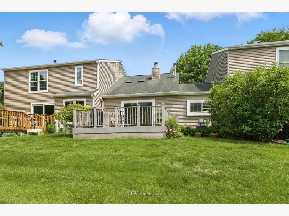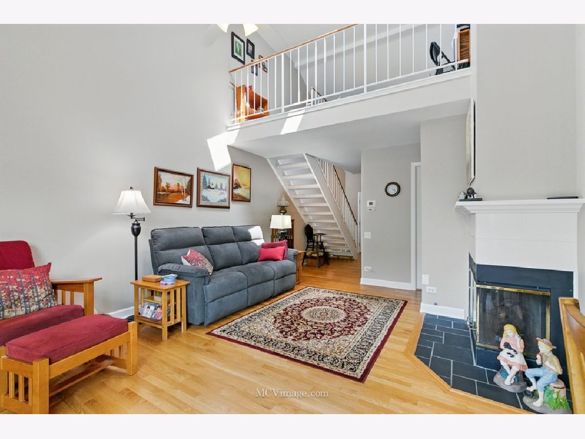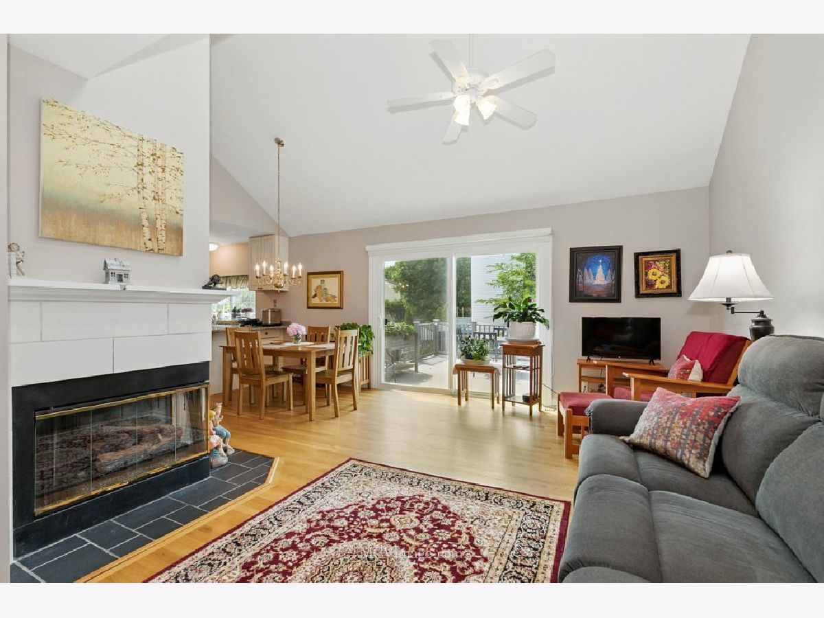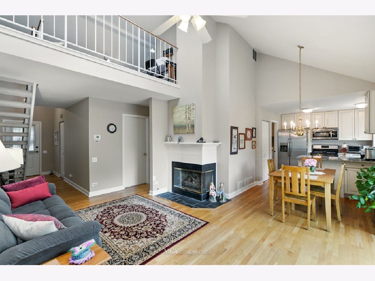 Beautiful 2 bedroom ( 2nd bedroom is a loft), one bath townhome in desirable Copper Oaks east of Fox River. First floor features living/dining room open floor plan, master bedroom , full bathroom ,hardwood floors, cathedral ceiling, two skylights, gas fireplace, updated windows, sliding door leading to a large deck and backyard. Gorgeous updated kitchen with lots of storage, pantry, granite countertops and stainless steel appliances (fridge 2024). First floor laundry room leading to one car attached garage. Carpeted second floor features spacious loft bedroom and a walk in closet .New furnace , A/C, hot water heater, toilet were installed in 2023. Low HOA fees $235 per month include common insurance, exterior maintenance, lawn care. Home is located in a peaceful, walkable community with easy access to shopping, dining and parks. Move-in-ready